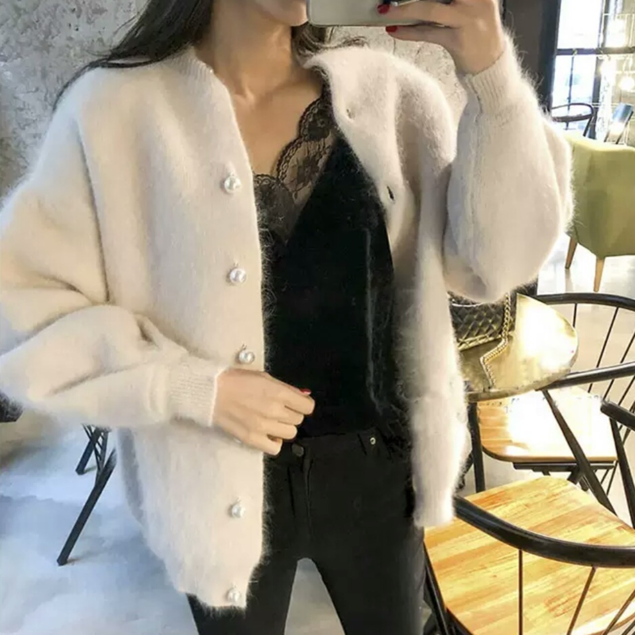 全2色 ウール ランタンスリーブ ニット カーディガン トップス パールボタン 大人 カジュアル キレイめ 上品 可愛い お出かけ お買い物 デート 女子会 秋冬 春 通学 学生 通勤 韓国ファッション
