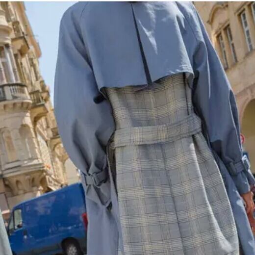 チェック柄と無地を合わせたデザインがお洒落なトレンチコートです♪