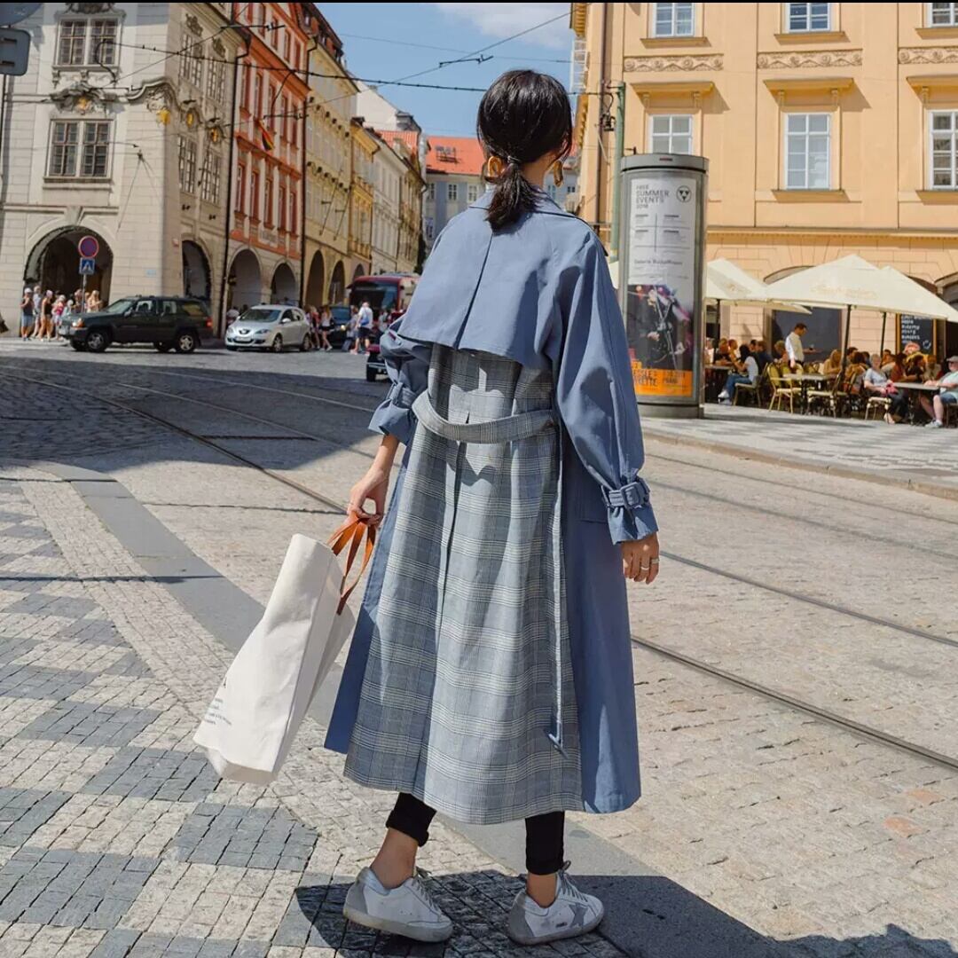 チェック柄 トレンチコート アウター 羽織 大人 カジュアル キレイめ 可愛い お出かけ お買い物 デート 女子会 秋冬 春 通学 学生 通勤 韓国ファッション