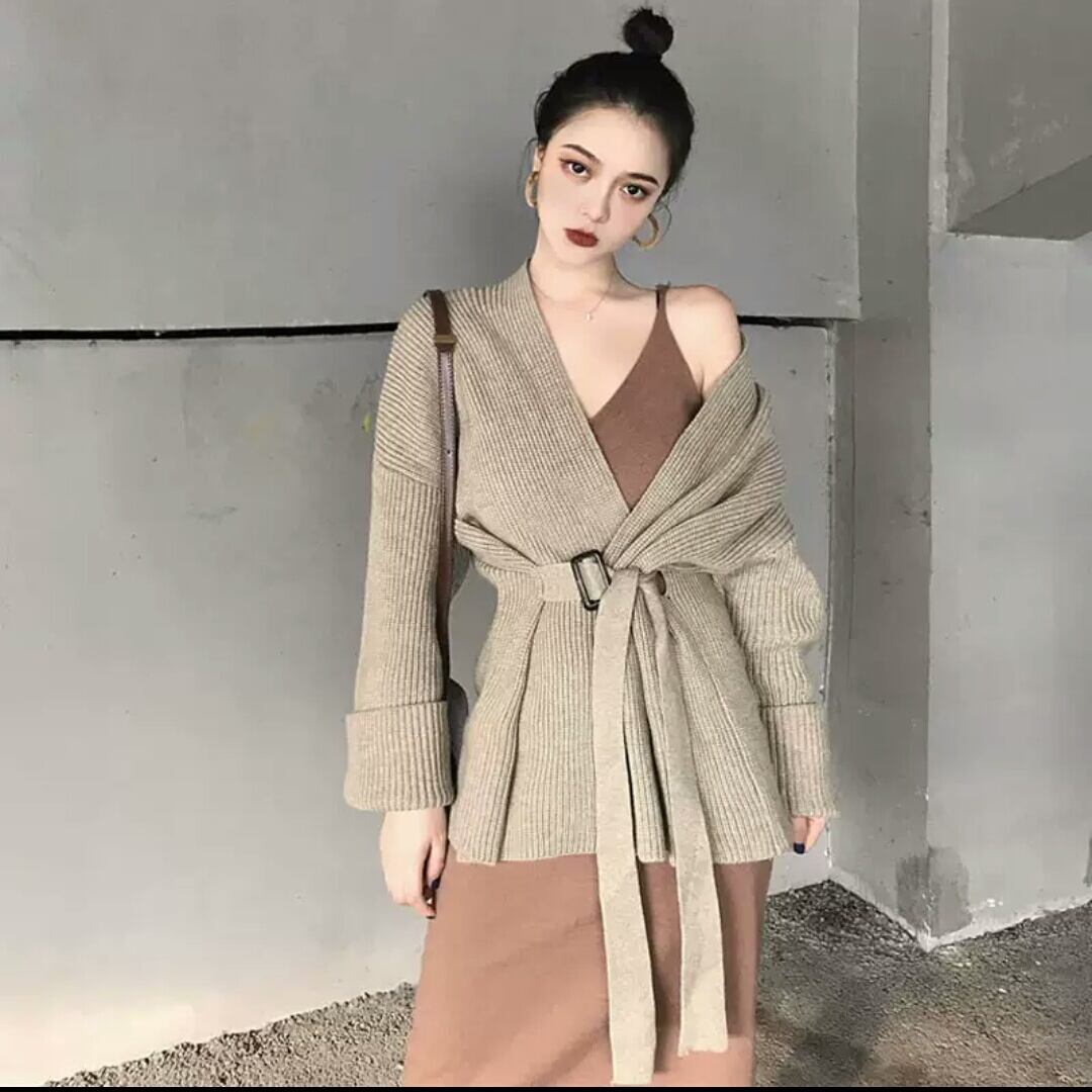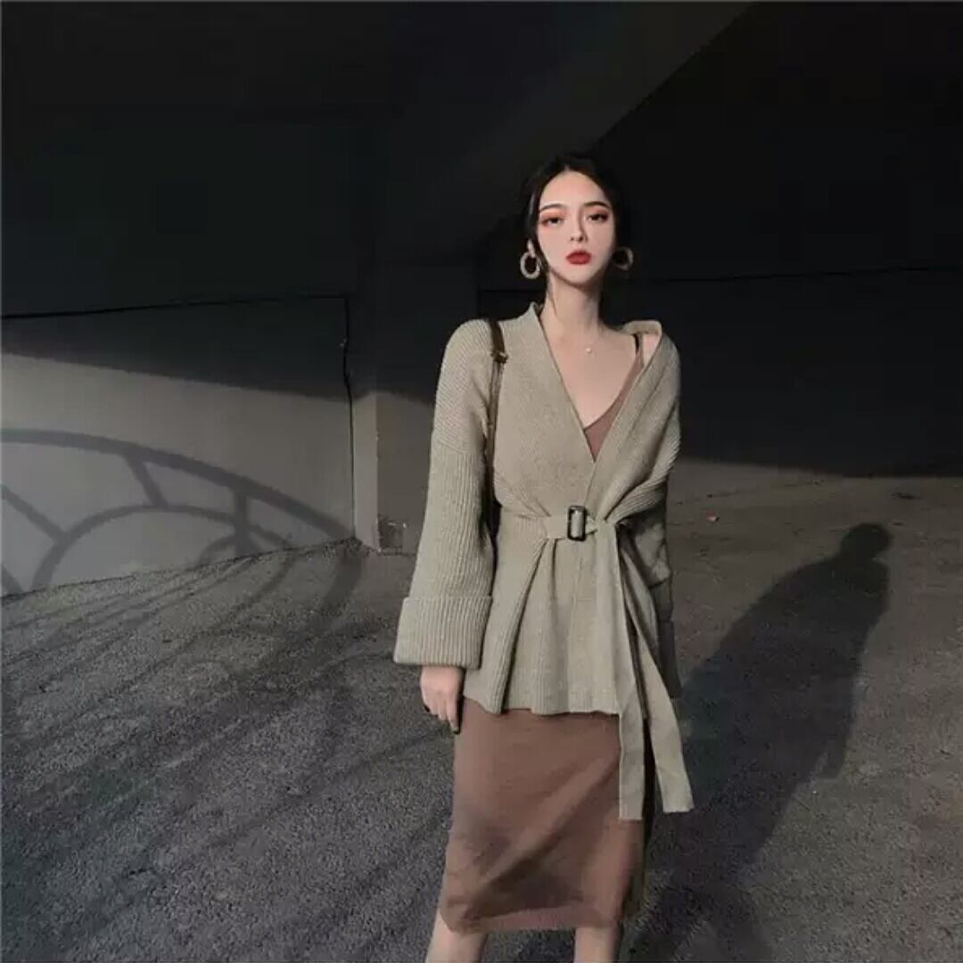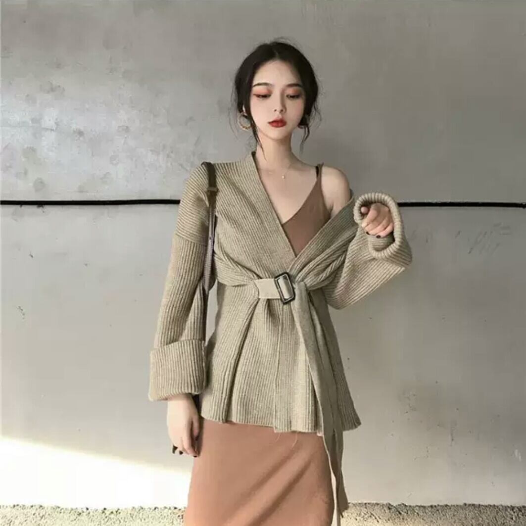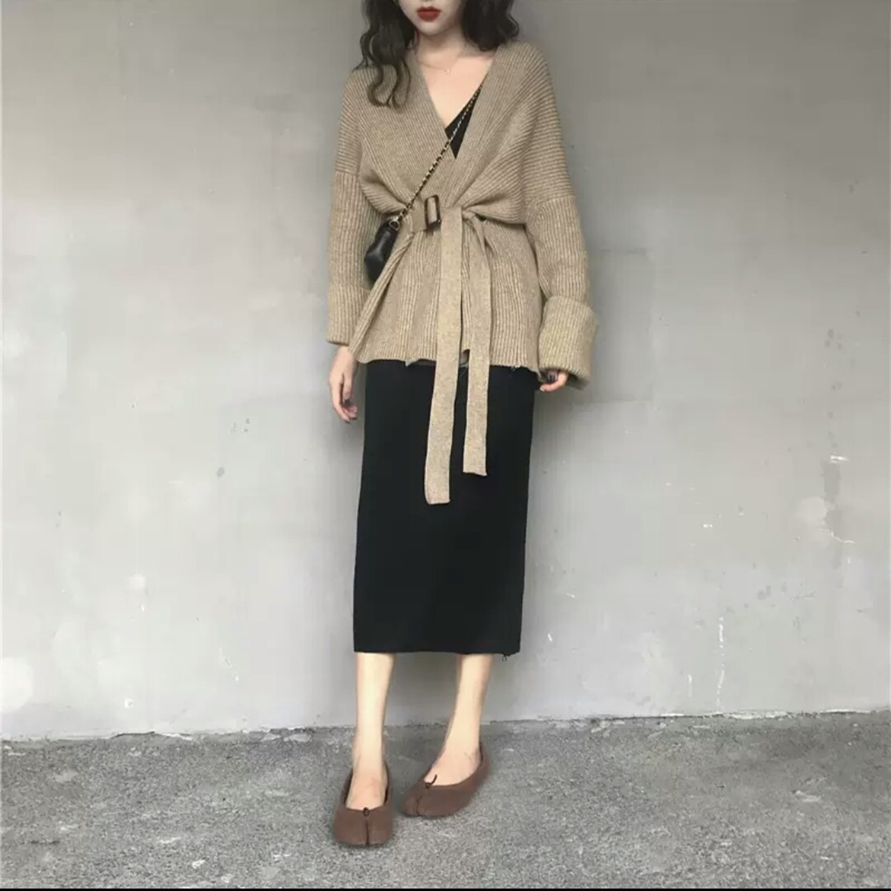ベルトつき セーター コート ニット アウター トップス 大人 カジュアル シンプル キレイめ 上品 モード系 お出かけ お買い物 デート 女子会 秋冬 春 通学 学生 通勤 韓国ファッション