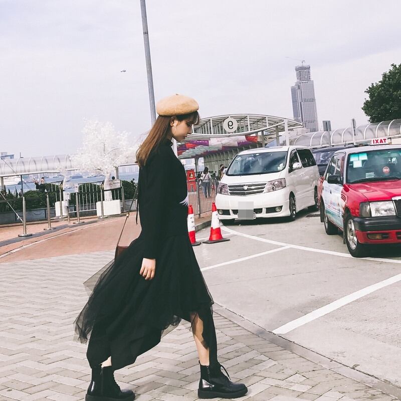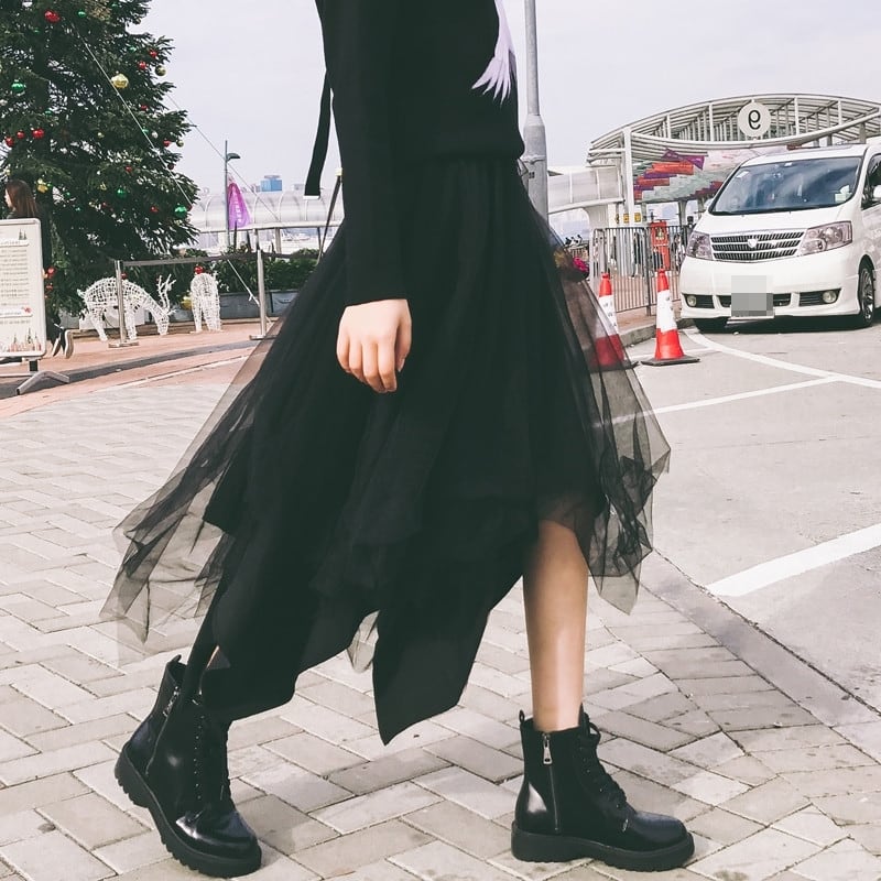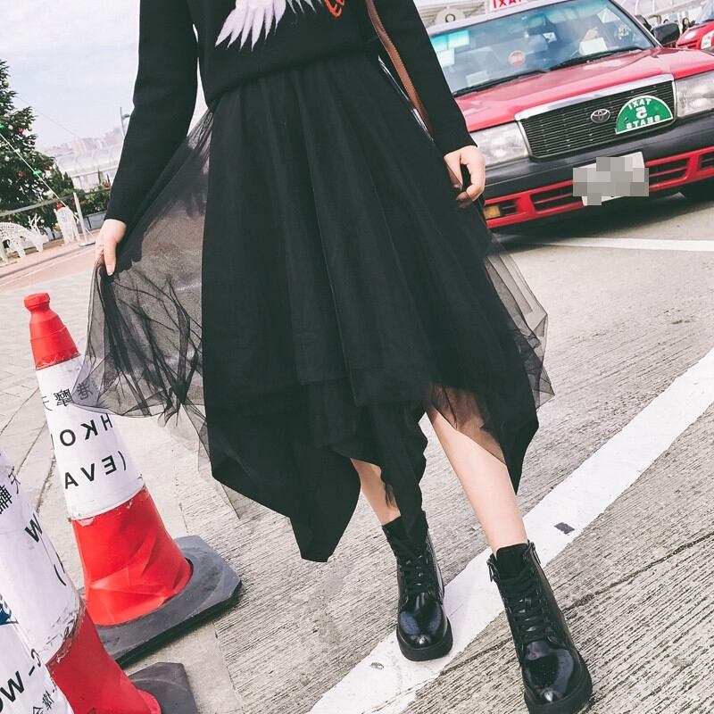 ボトムス スカート ミモレ丈 アシンメトリー フレア ゴアード Aライン 無地 シースルー ハイウエスト ふんわり ロック クール カジュアル きれいめ 秋 冬 春