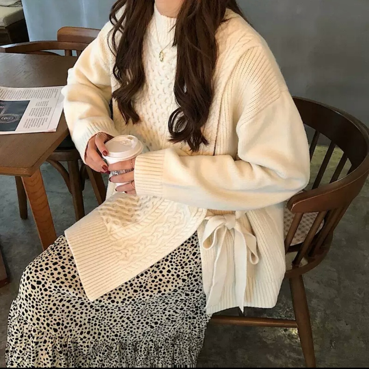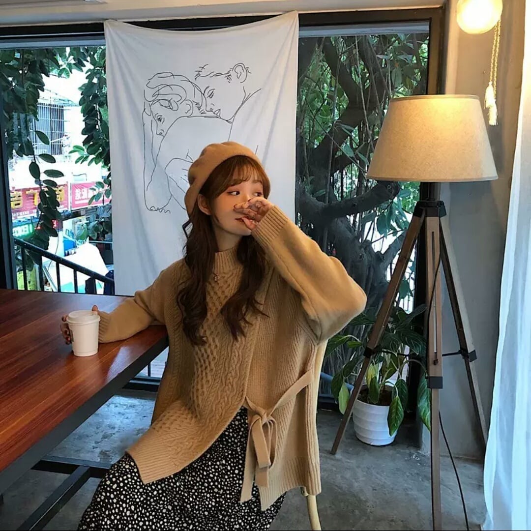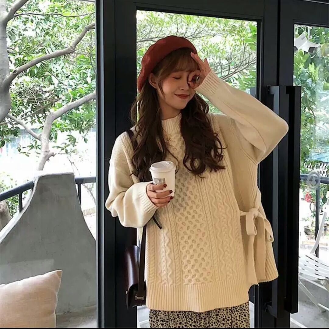 全2色 サイドレースアップ ニット トップス セーター 無地 シンプル 大人 カジュアル ラフ お出かけ お買い物 デート 女子会 秋冬 春 通学 学生 通勤 韓国ファッション