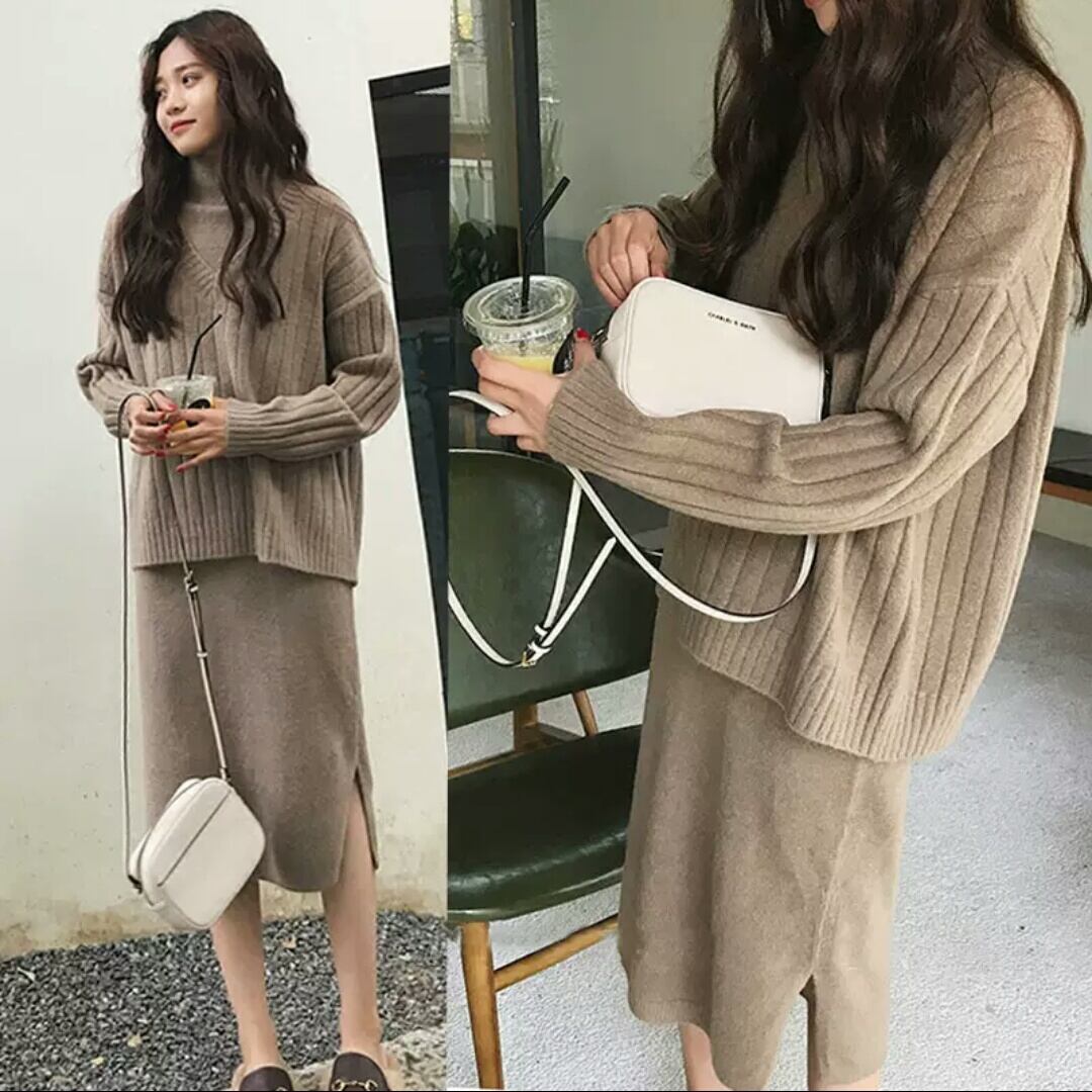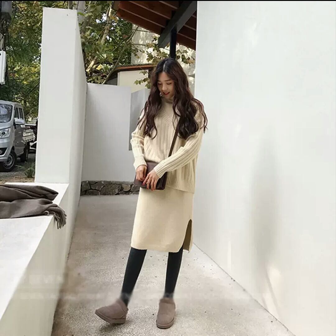 全4色 ミドル丈 ワンピース ツーピース セットアップ ニット セーター トップス 長袖 タートルネック 大人 カジュアル キレイめ シンプル 大きいサイズ お出かけ お買い物 デート 女子会 秋冬 春 通学 学生 通勤 韓国ファッション