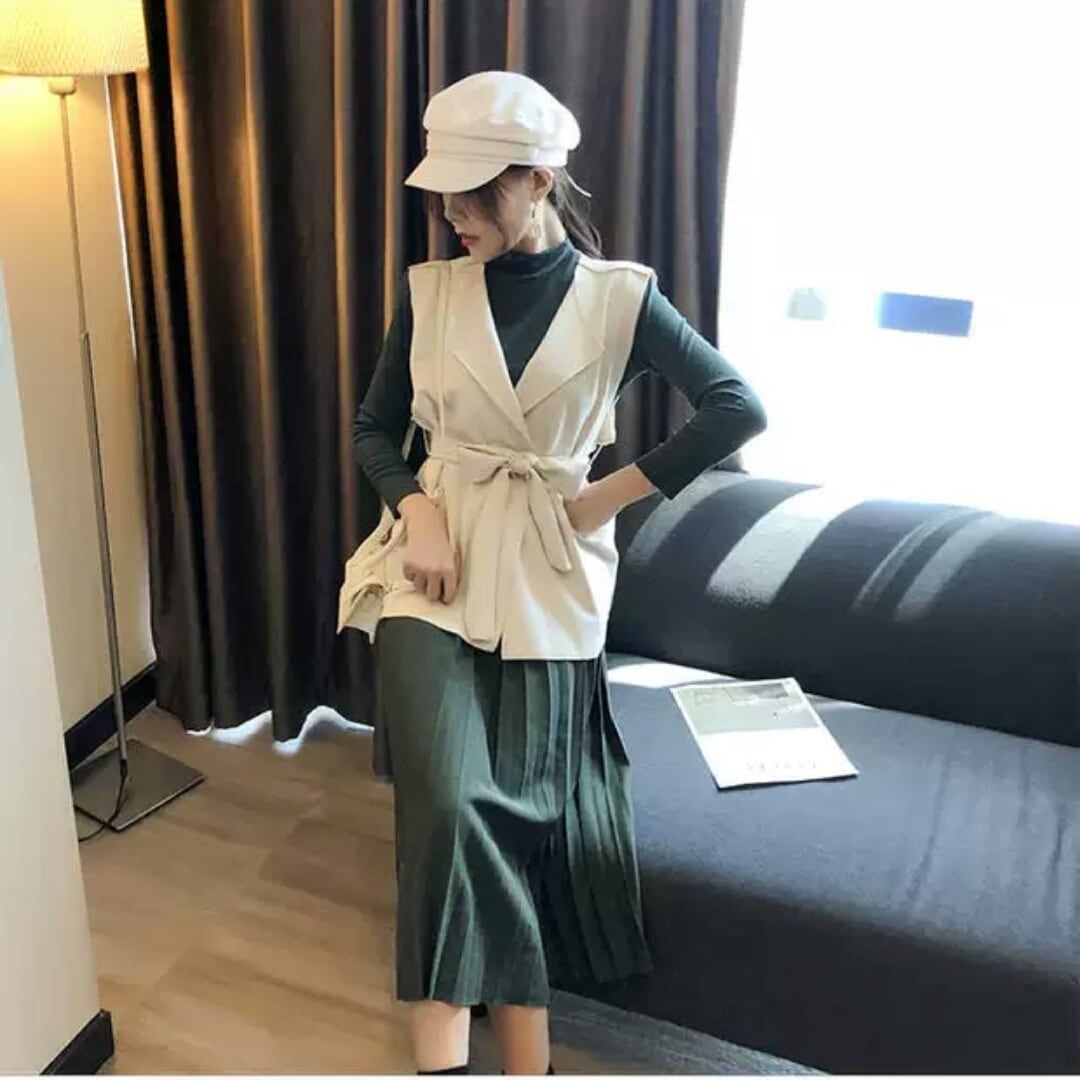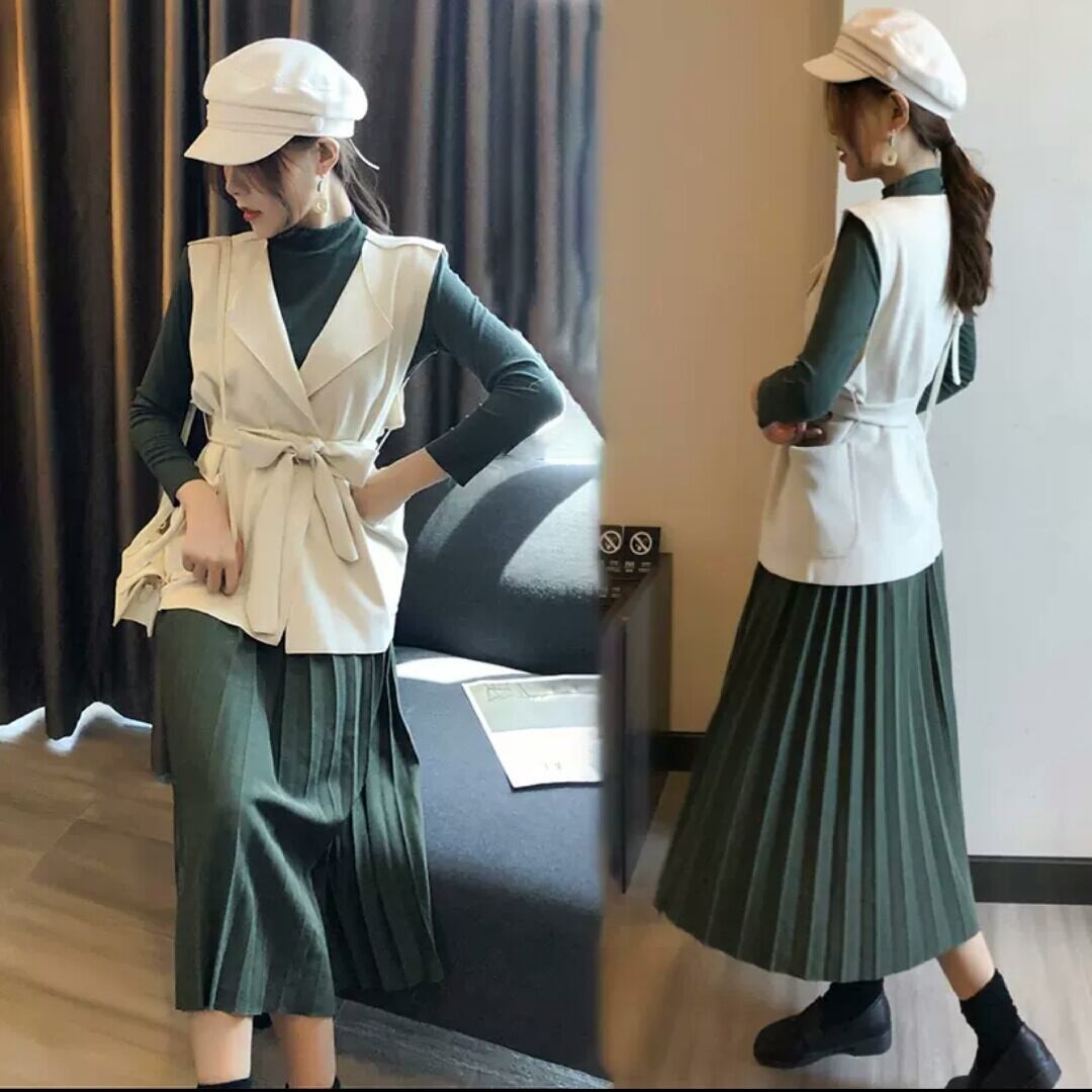 ロング丈スカートと長袖トップス、ベストまでついています。