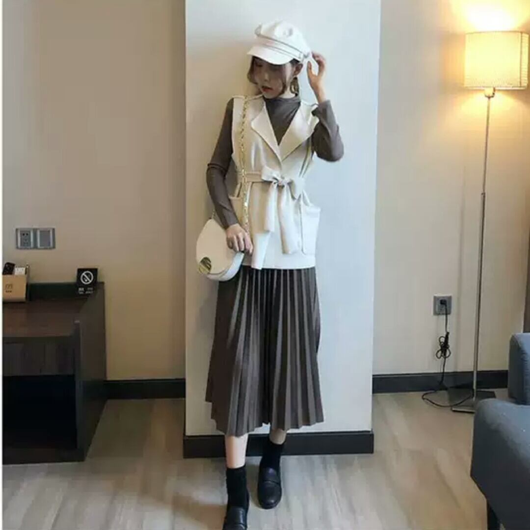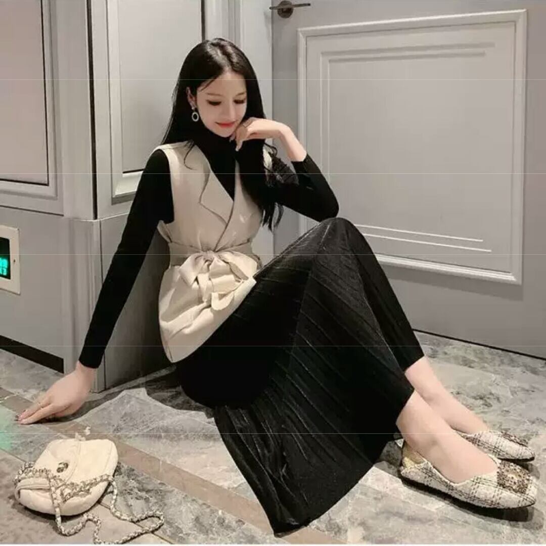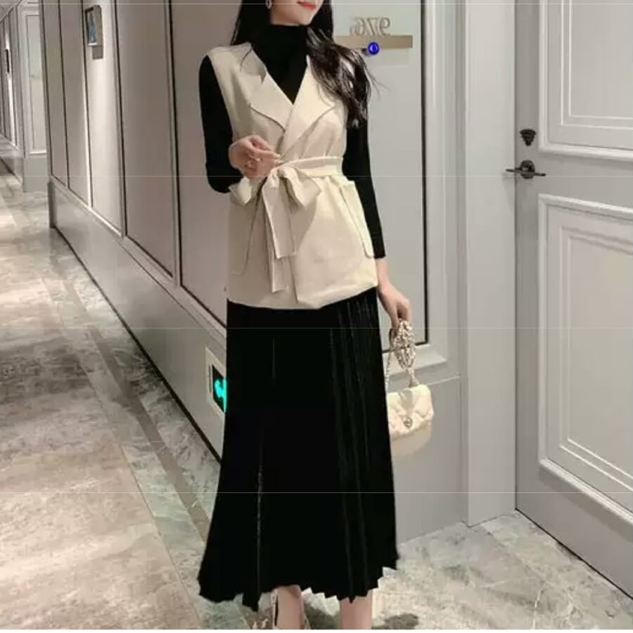 全3色 スリーピース 3点 セットアップ スカート ロング丈 長袖 ニット トップス ベスト 大きいサイズ お出かけ お買い物 デート 女子会 秋冬 春 通学 学生 通勤 韓国ファッション