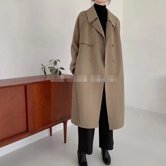 全5色 アウター トレンチコート カシミヤ ロングコート ウール ボタン ウエストリボン ゆったりめ 上品 エレガント きれいめ カジュアル 大人 秋 冬 春