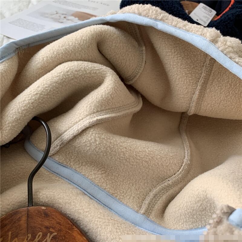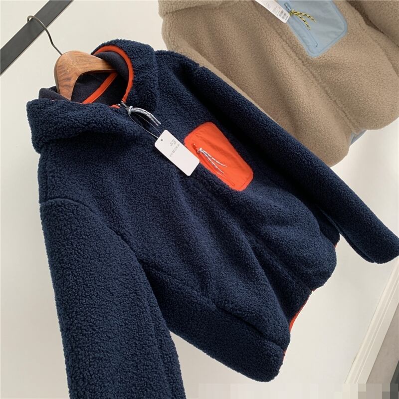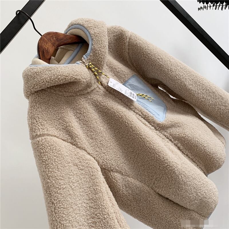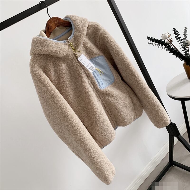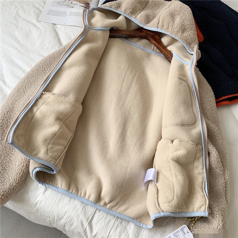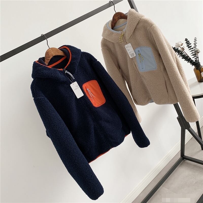 全2色 アウター ボアジャケット ファージャケット もこもこ フード付き バイカラー 可愛い カジュアル デイリー あったか ファスナー 秋 春 冬