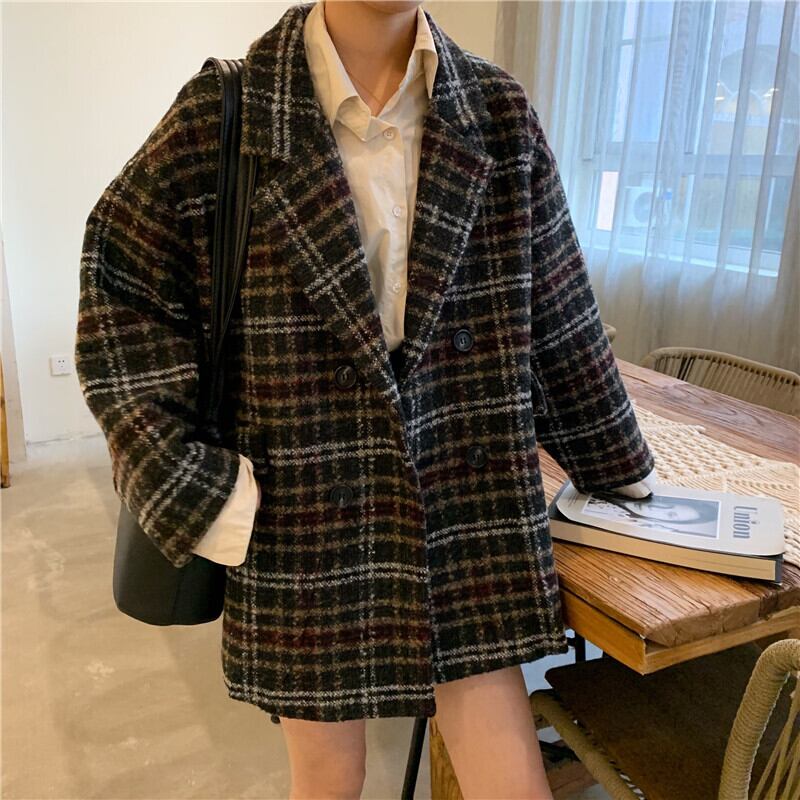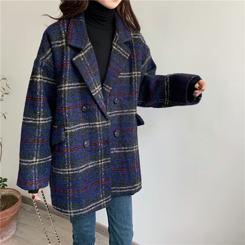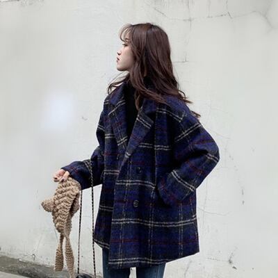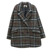 全2色 ウールコート キルティング ダブルチェスト ミドル丈 ブラウン ネイビー 襟あり ポケット 長袖 秋冬