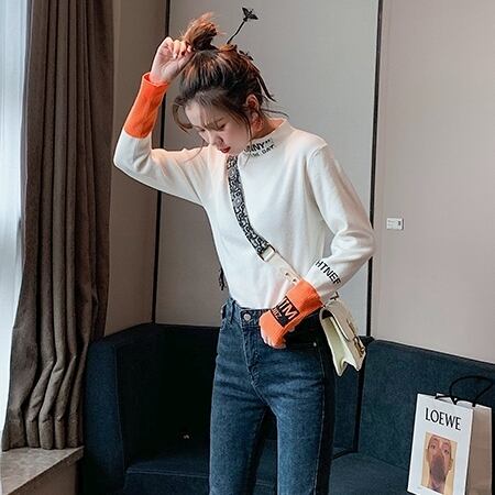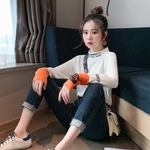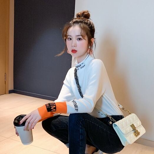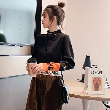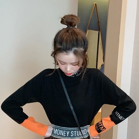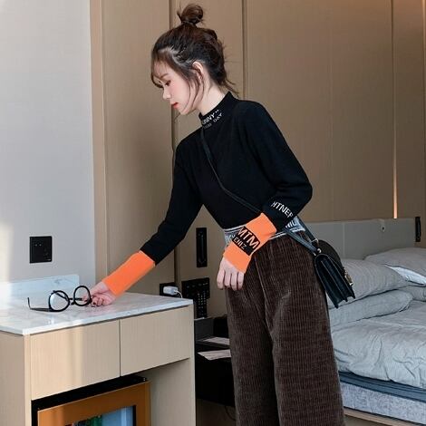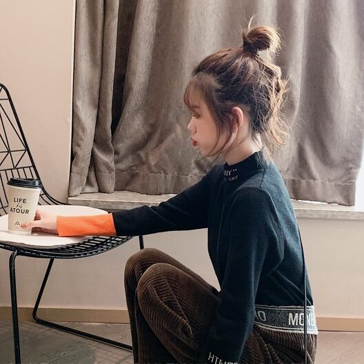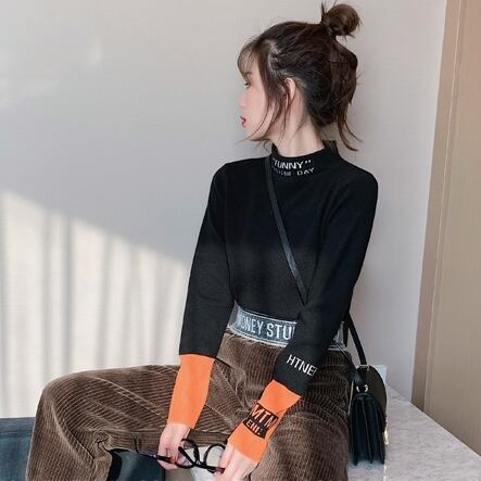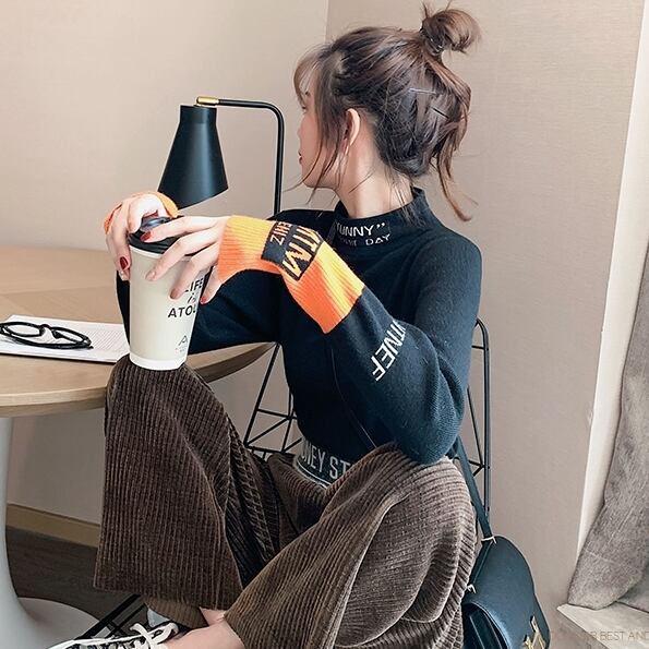 全2色 ハーフタートル ニット セーター バイカラー カジュアル スリム フィット 長袖 秋冬 デイリー