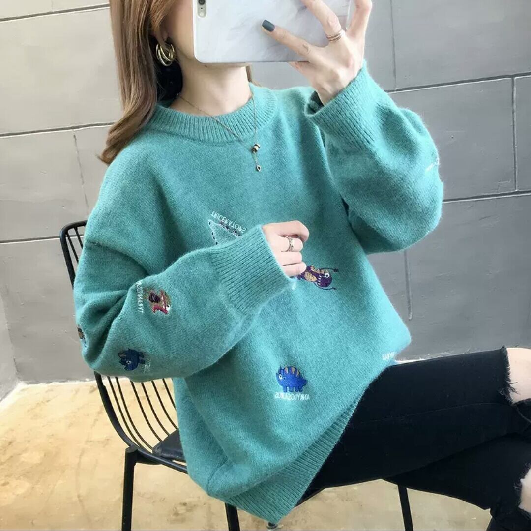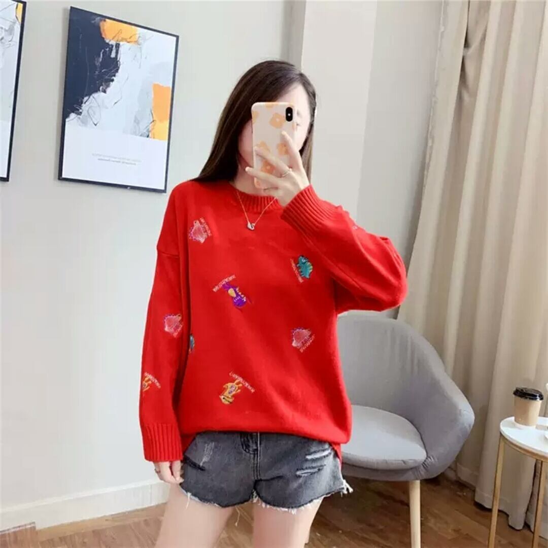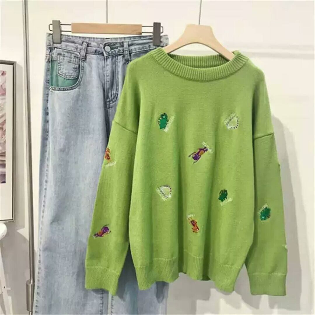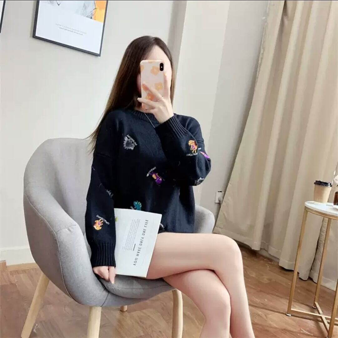 全7色 刺繍 セーター ニット 柄 デザイン 大人 カジュアル 可愛い お出かけ お買い物 デート 女子会 秋冬 春 通学 学生 通勤 韓国ファッション