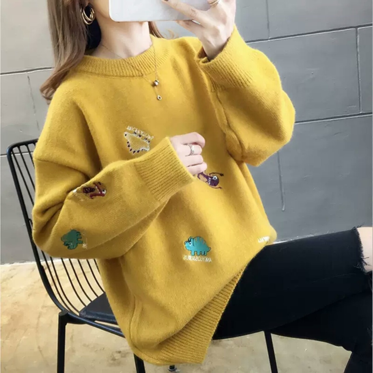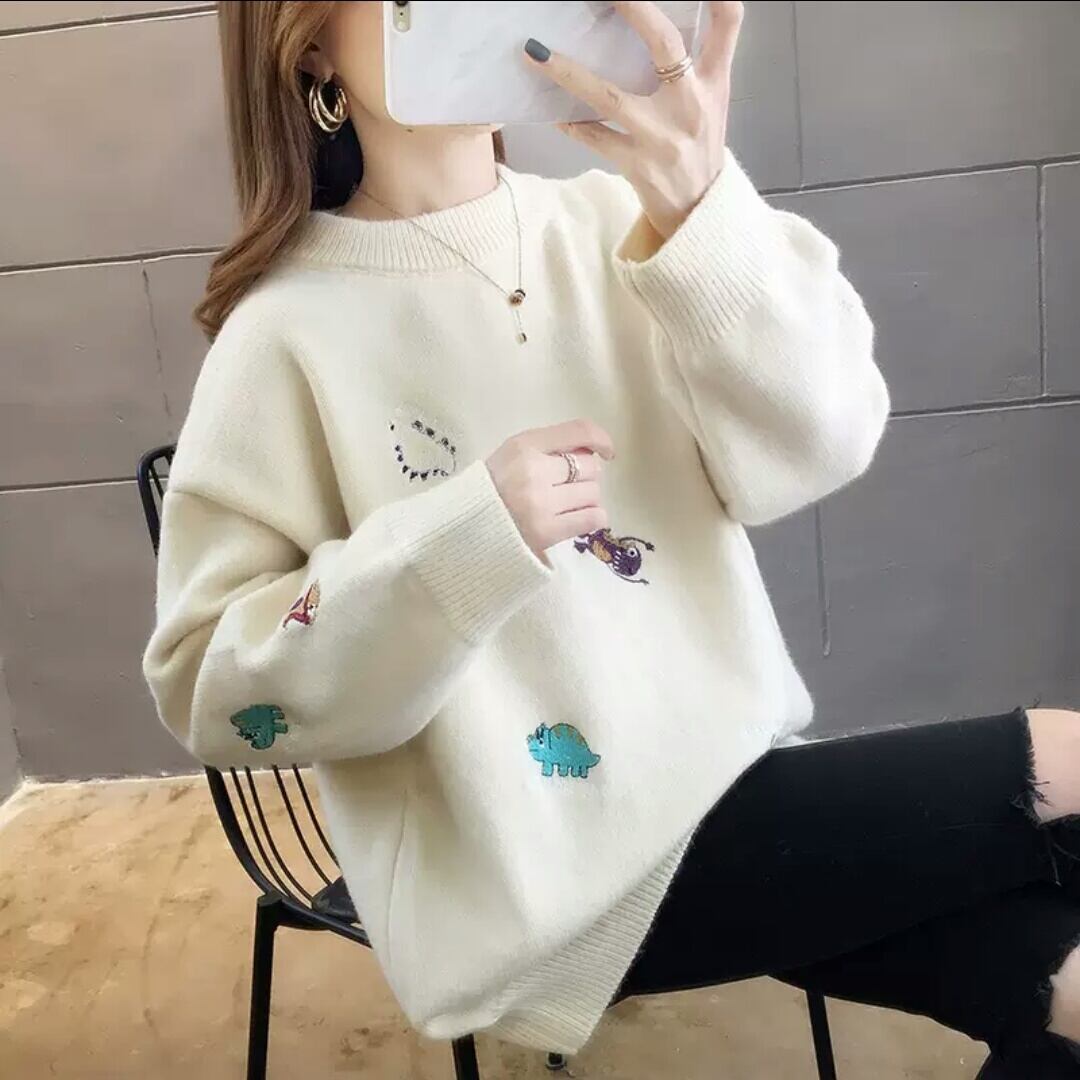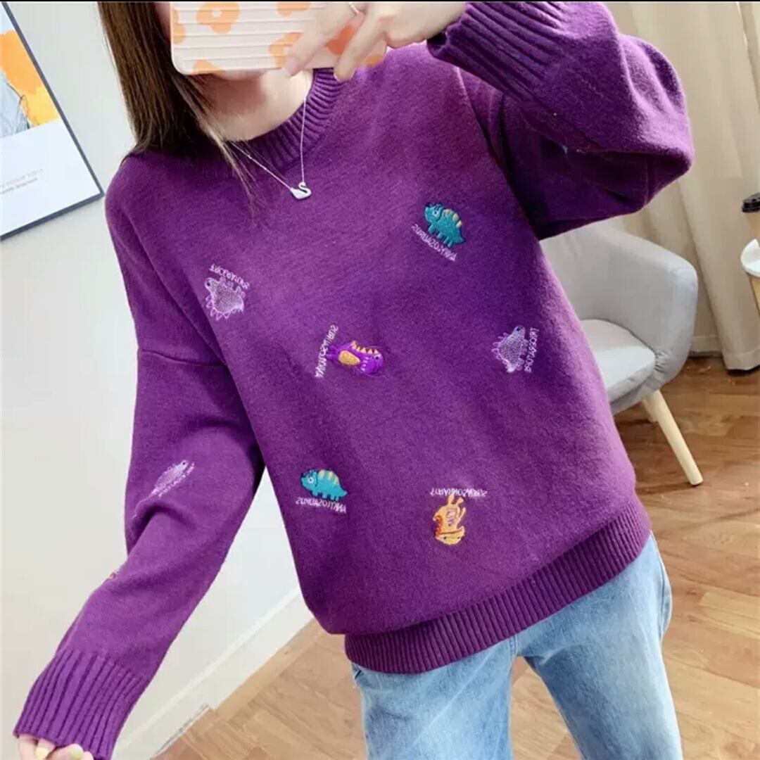 全7色 刺繍 セーター ニット 柄 デザイン 大人 カジュアル 可愛い お出かけ お買い物 デート 女子会 秋冬 春 通学 学生 通勤 韓国ファッション
