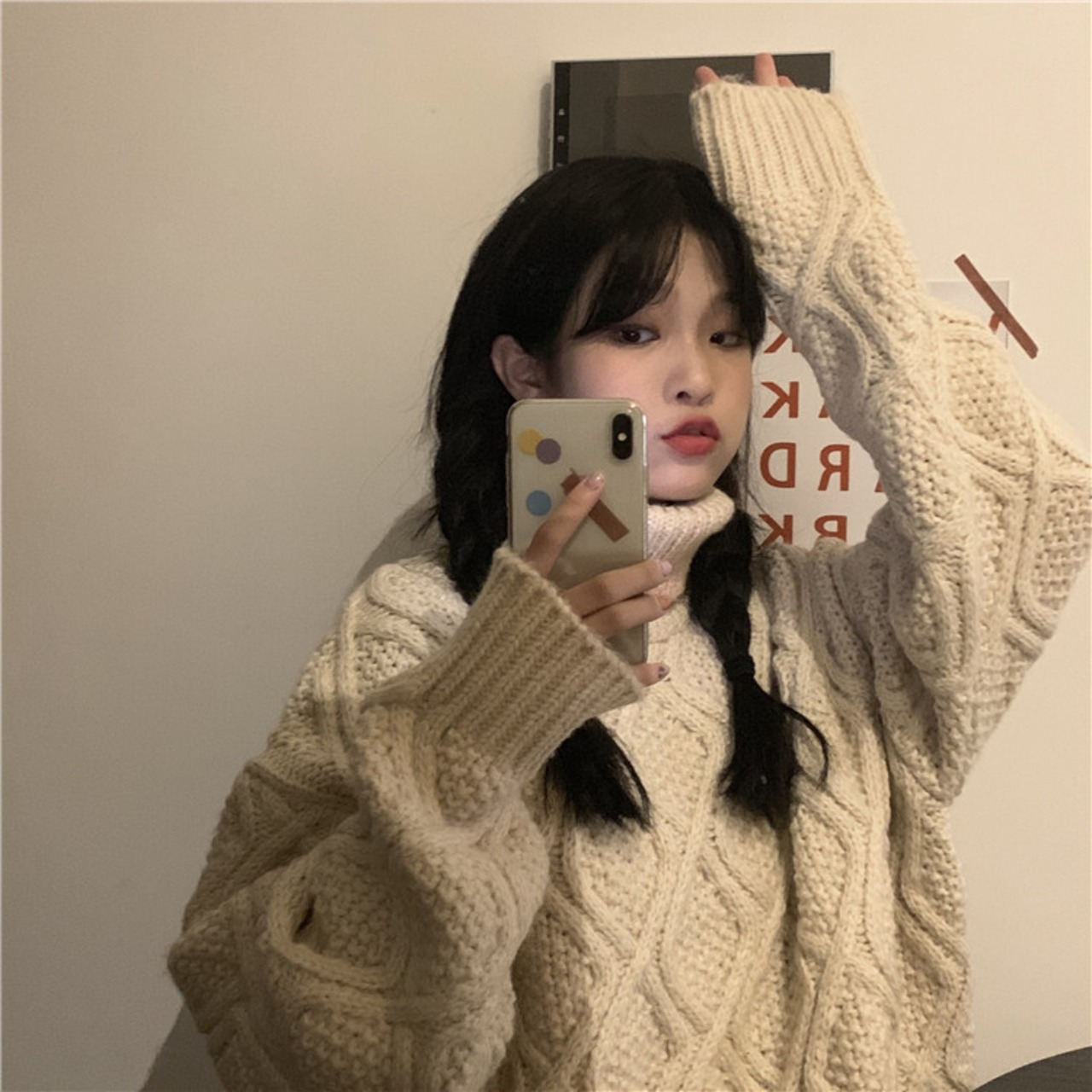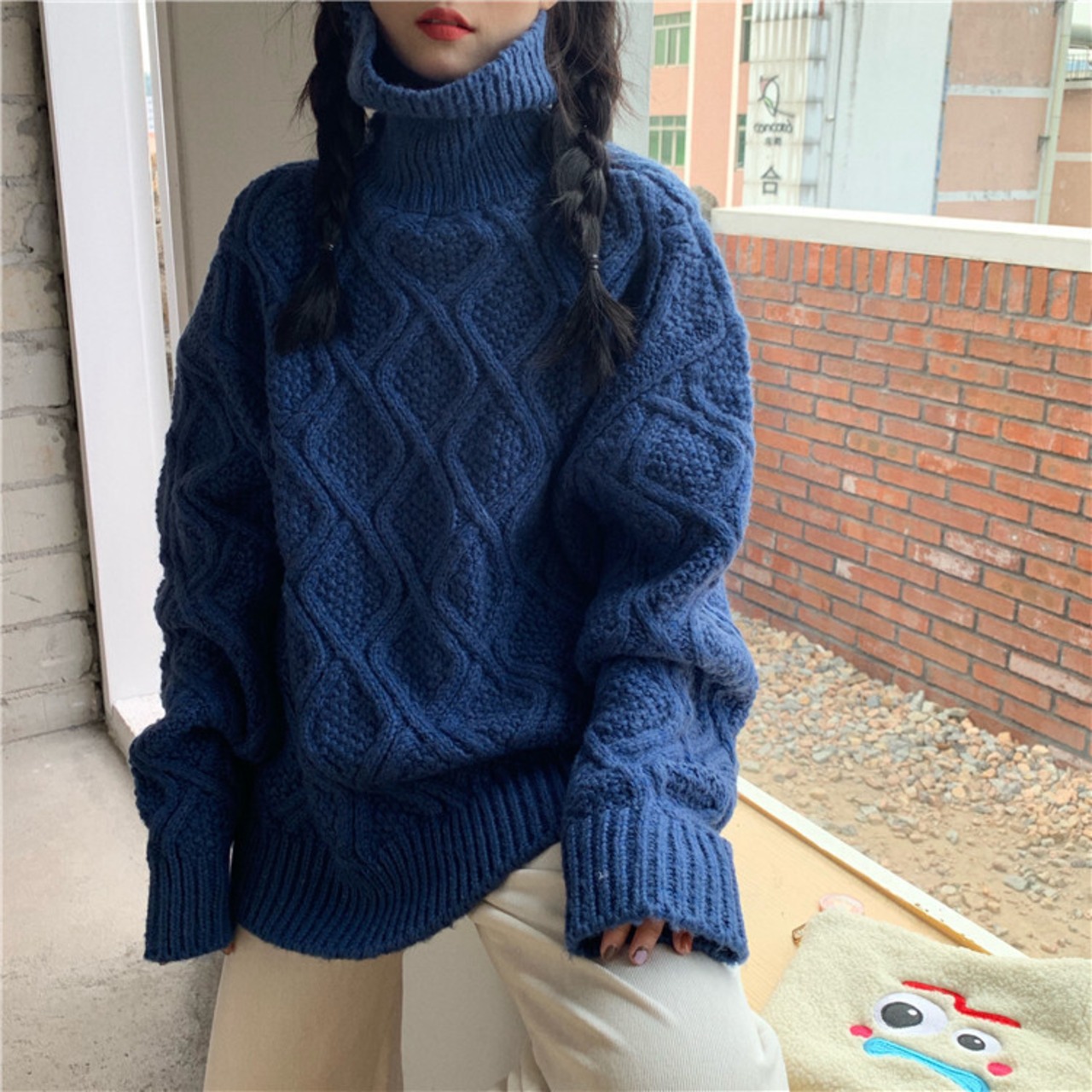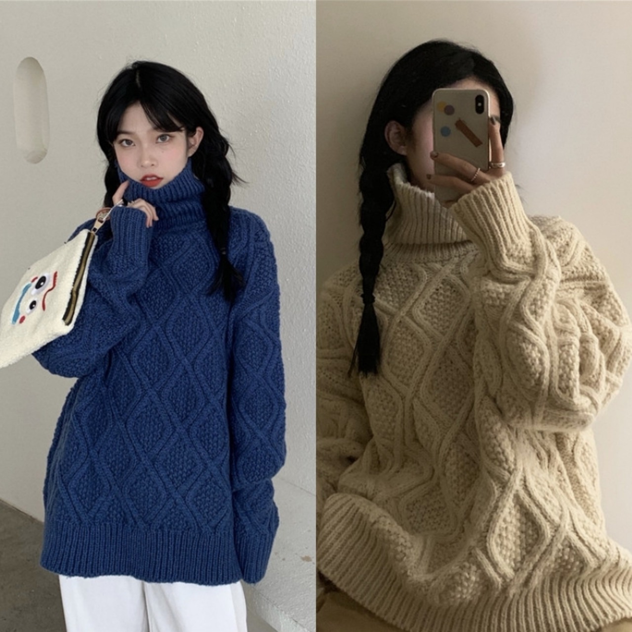 ケーブル編みのタートルネックニットです。