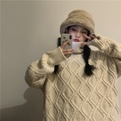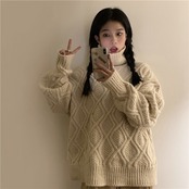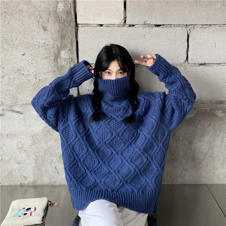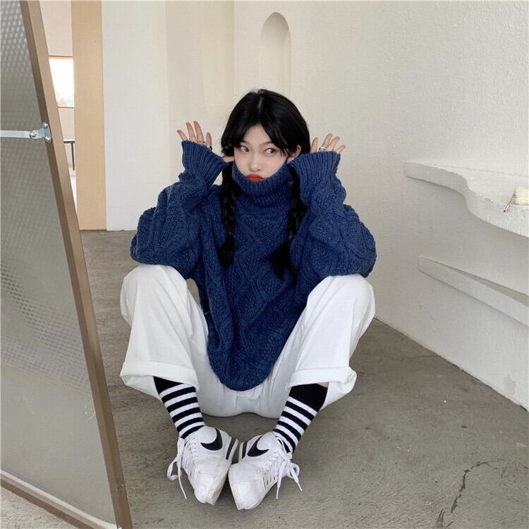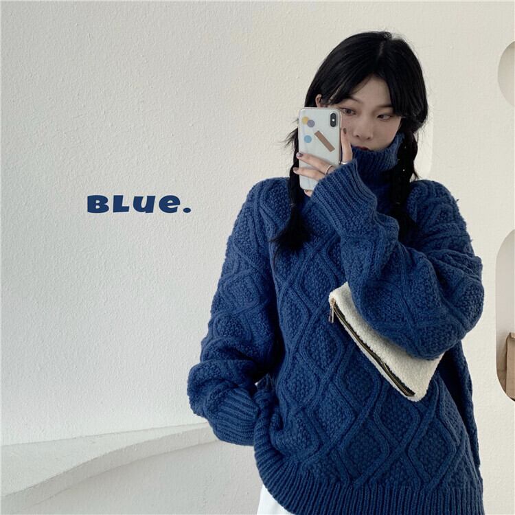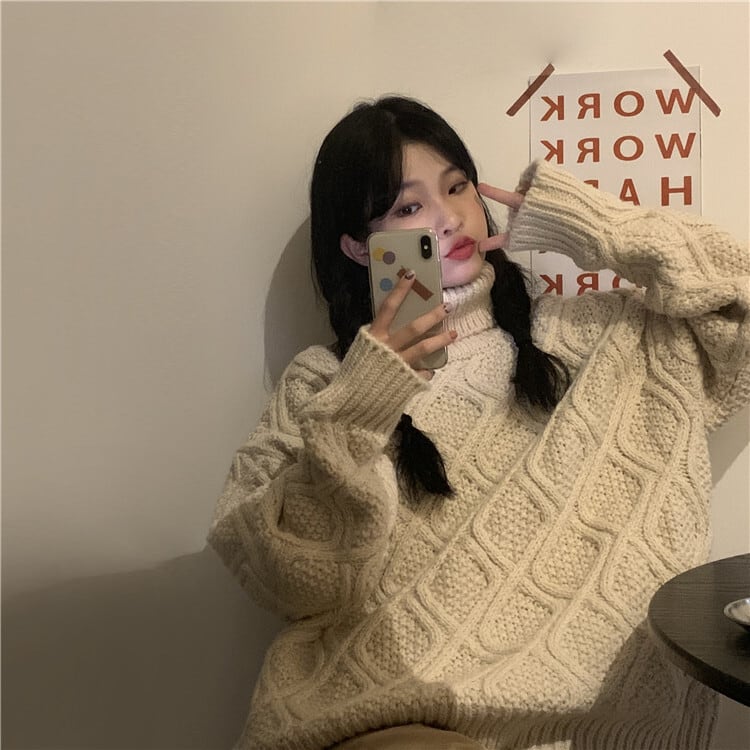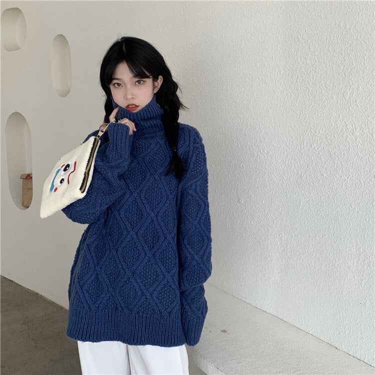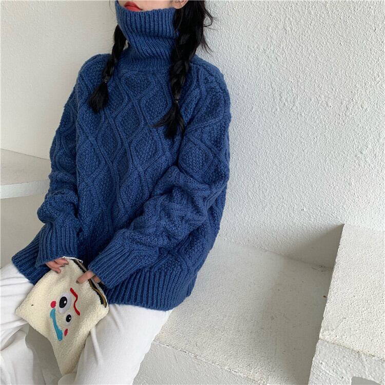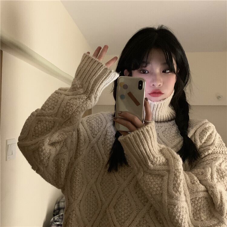 全2色 ニット ケーブル編み タートルネック 長袖 セーター ゆったり 体型カバー 秋冬 こなれ感 お出かけ カジュアル 大人可愛い ざっくり