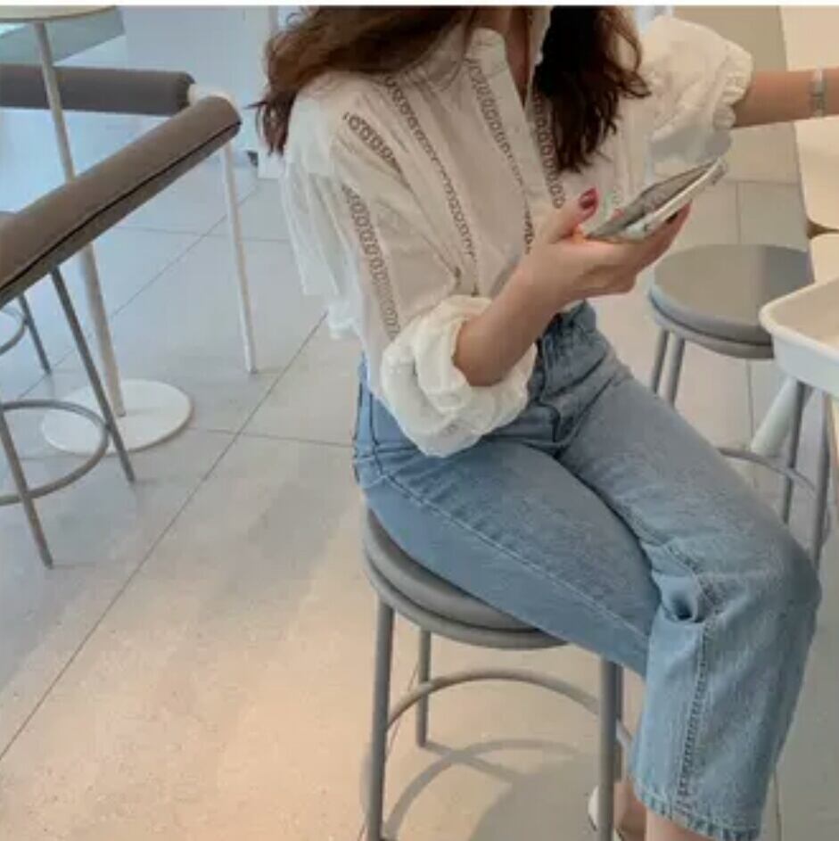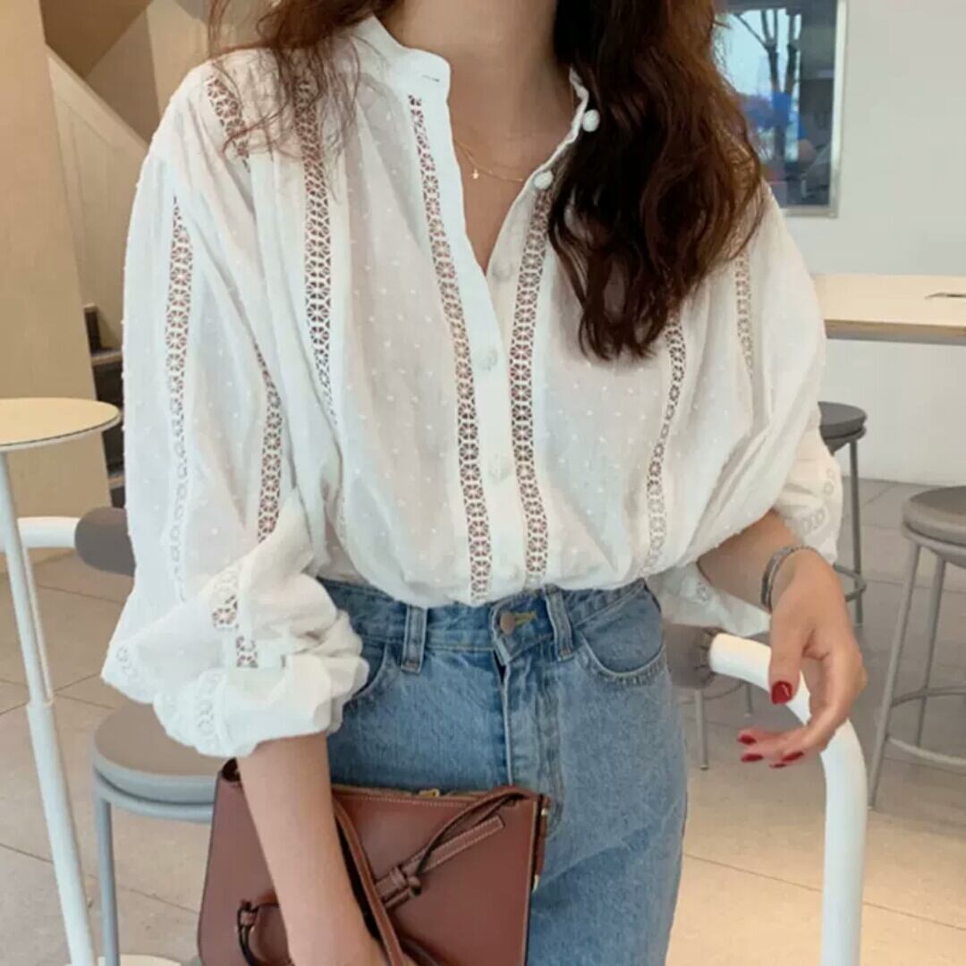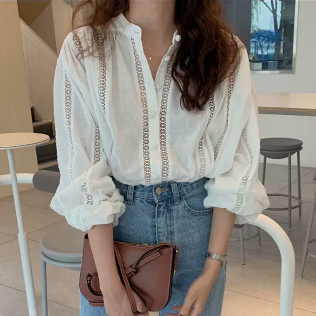 ラウンドネック ボリューム スリーブ ブラウス シャツ トップス 大人 カジュアル シンプル キレイめ お出かけ お買い物 デート 女子会 秋冬 春 通学 学生 通勤 韓国ファッション