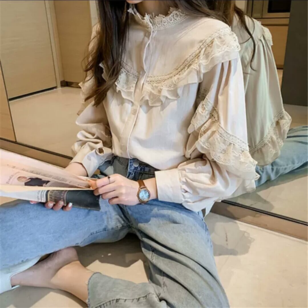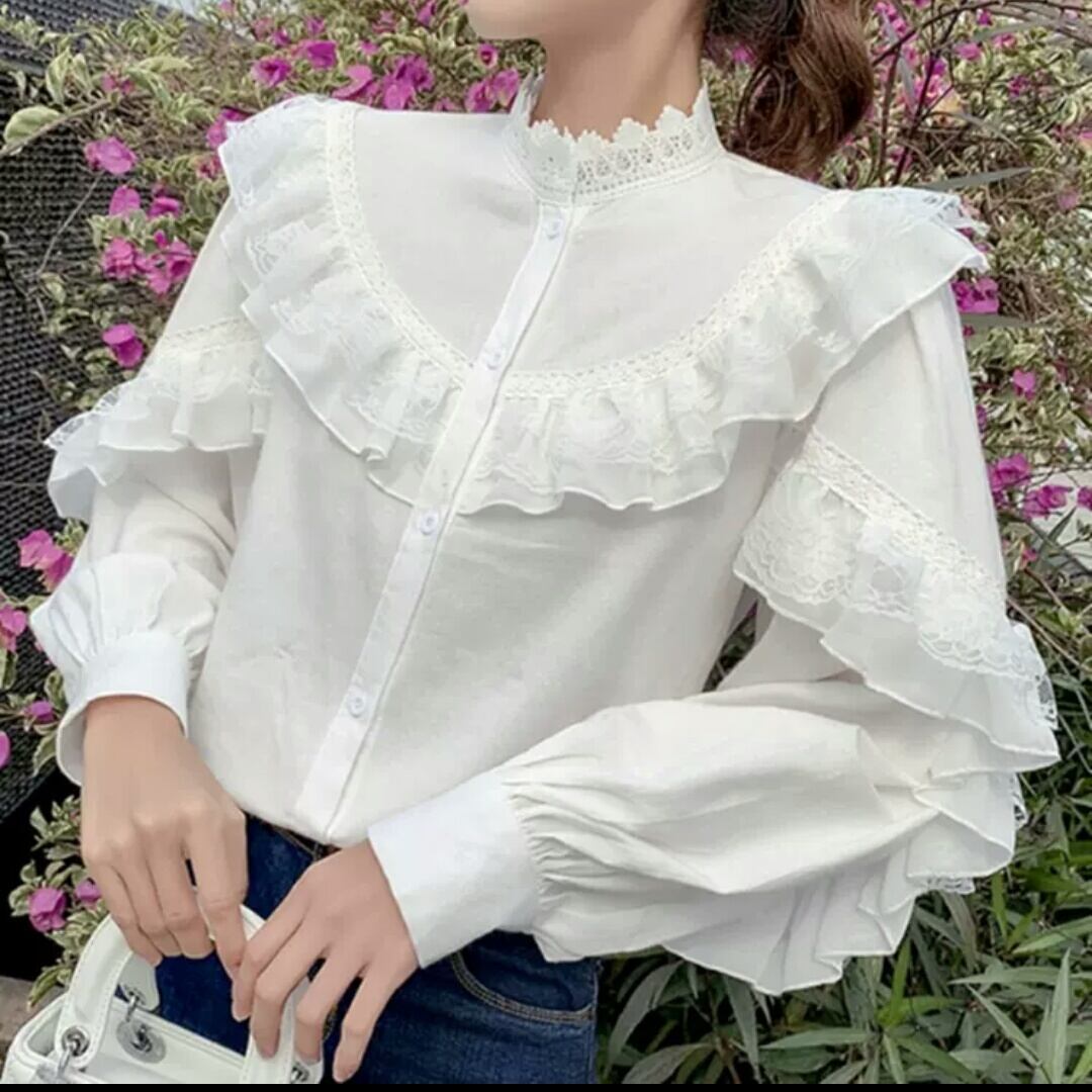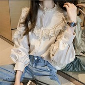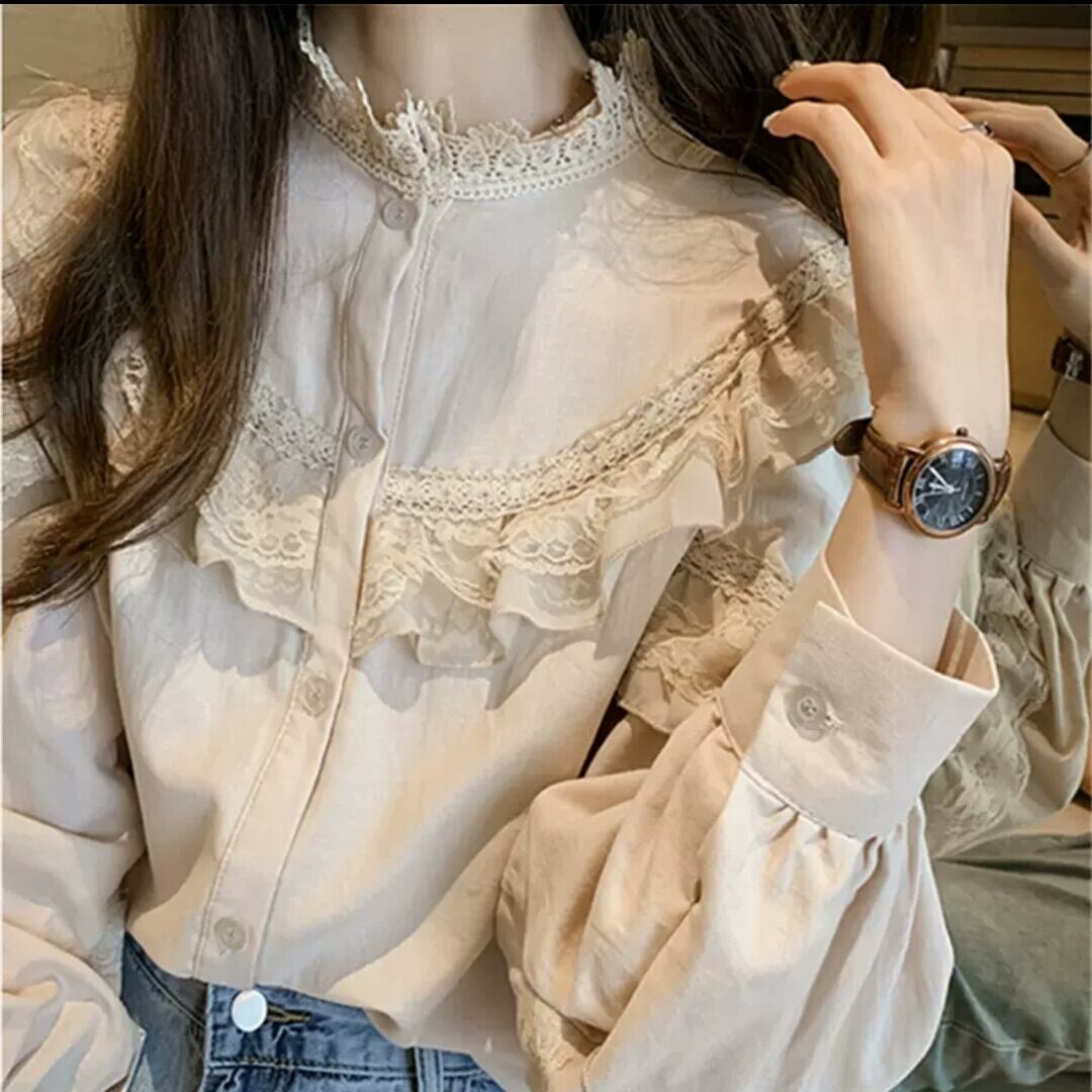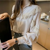 全2色 ラウンドネック レース ブラウス ジャケット 大人 カジュアル キレイめ 可愛い お出かけ お買い物 デート 女子会 秋冬 春 通学 学生 通勤 韓国ファッション