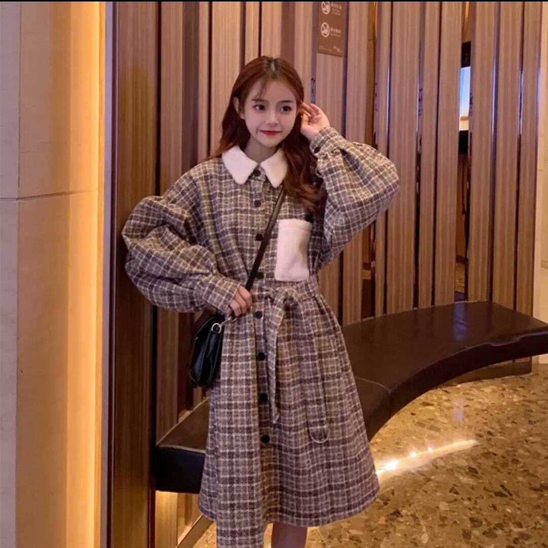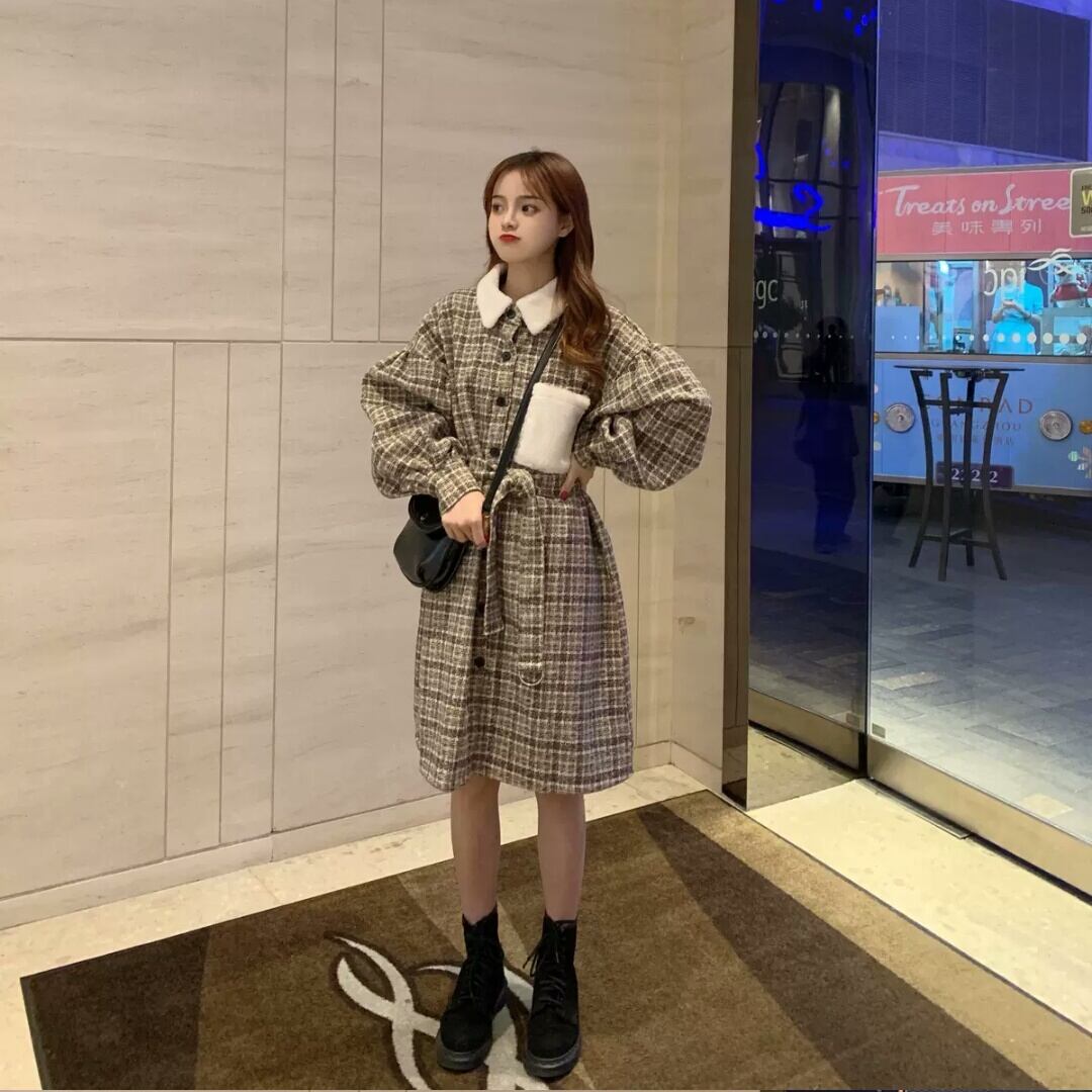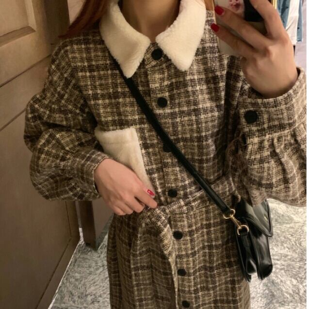 チェック柄 ボア ウールコート ロング丈 襟つき 大人 キレイめ 可愛い カジュアル お出かけ お買い物 デート 女子会 秋冬 春 通学 学生 通勤 韓国ファッション