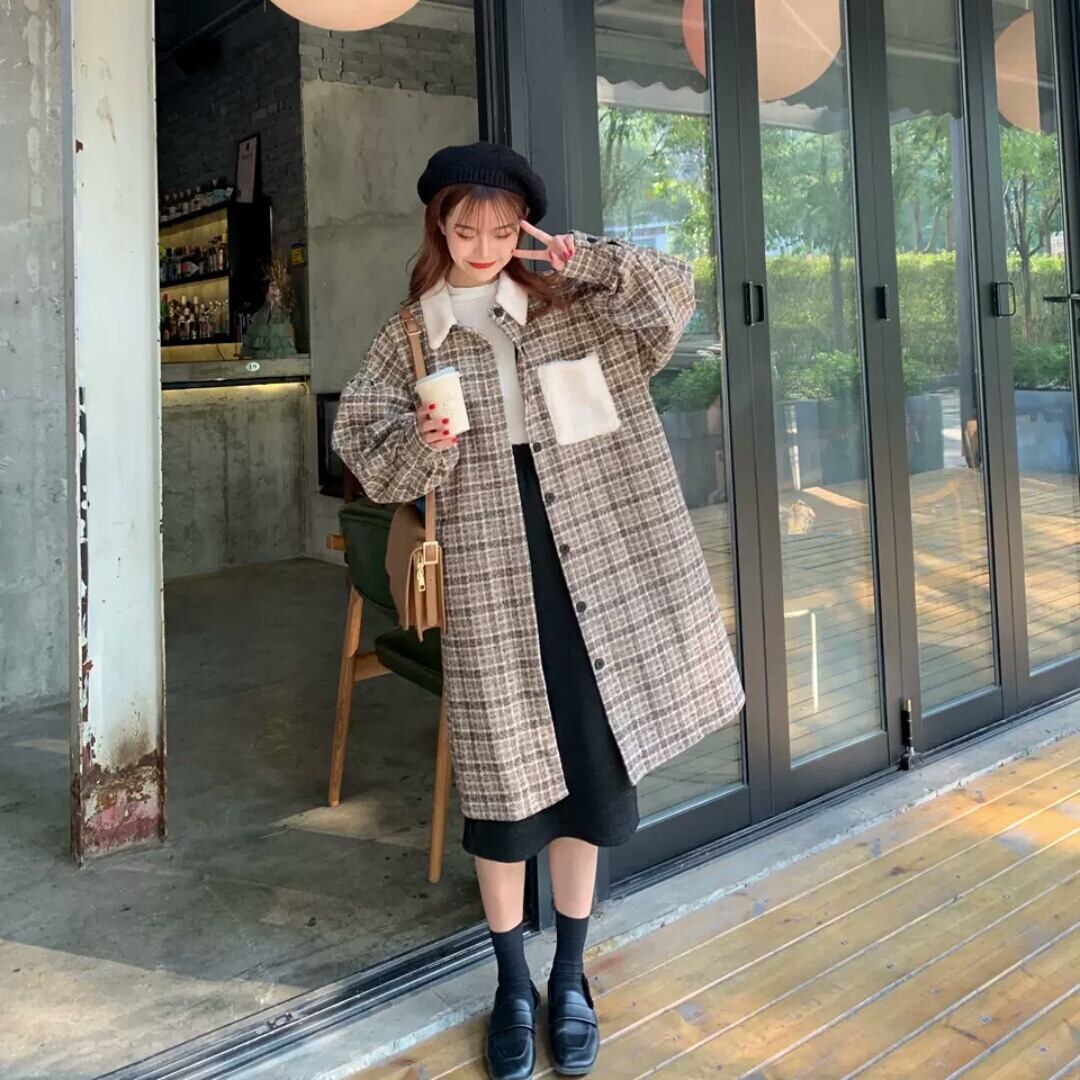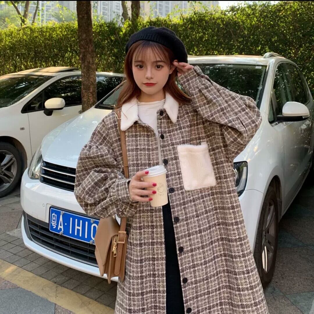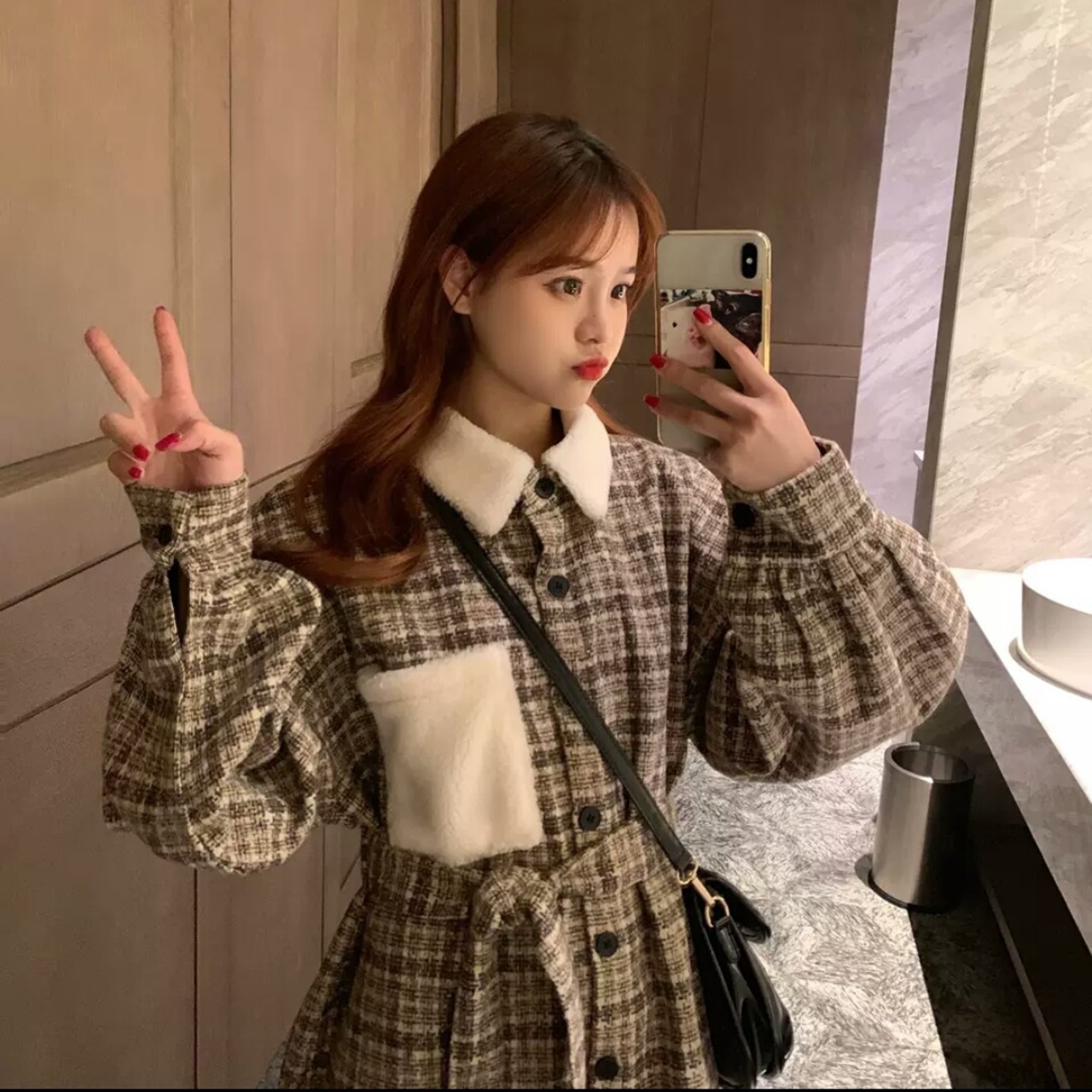チェック柄 ボア ウールコート ロング丈 襟つき 大人 キレイめ 可愛い カジュアル お出かけ お買い物 デート 女子会 秋冬 春 通学 学生 通勤 韓国ファッション