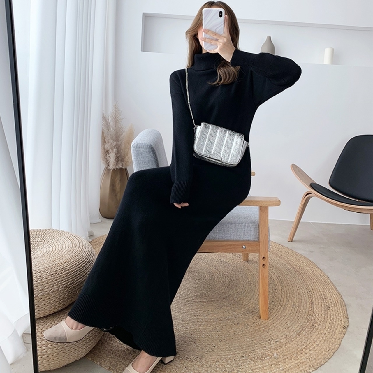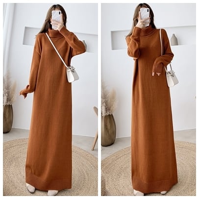超ロングのニットワンピースならIラインを強調してくれます。