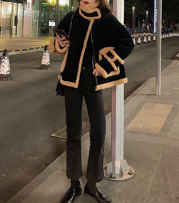 アウター ムートンジャケット コート ガーリー 大人可愛い ボア もこもこ バイカラー 上品 大人 あったか カジュアル 秋 春 冬 防寒