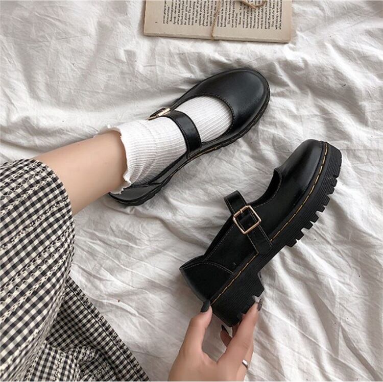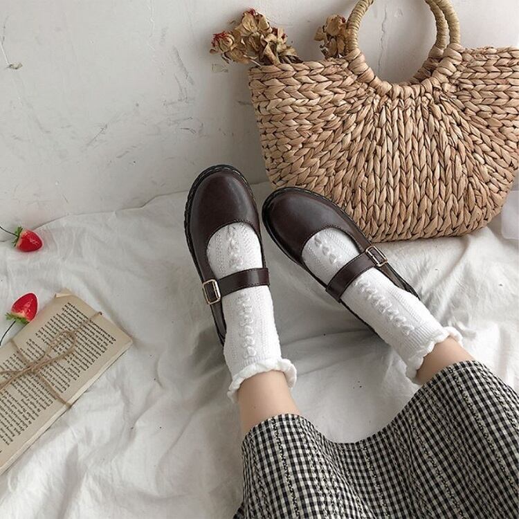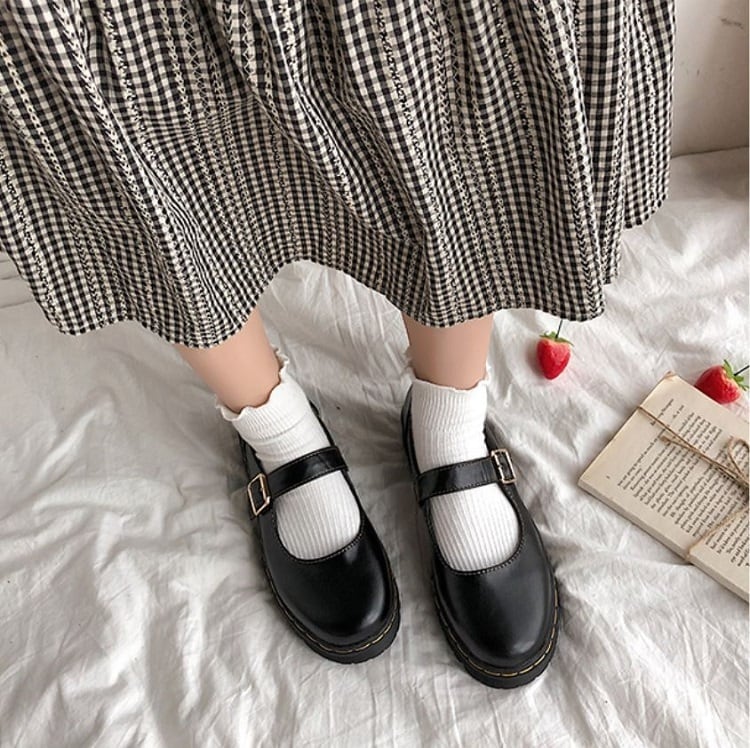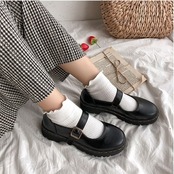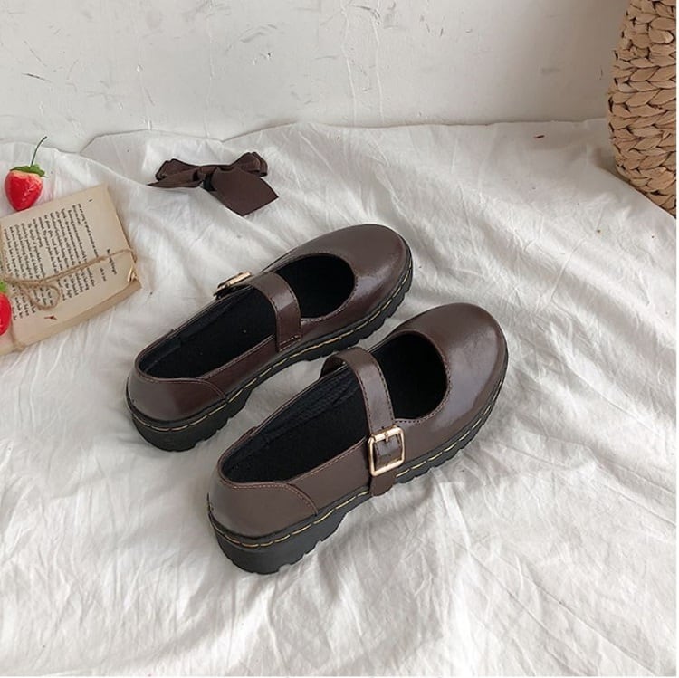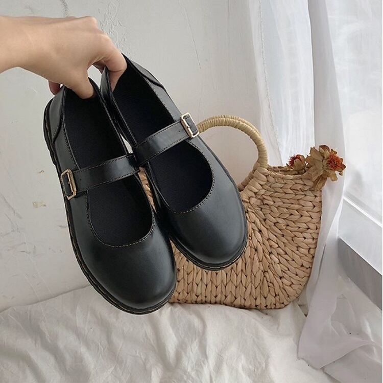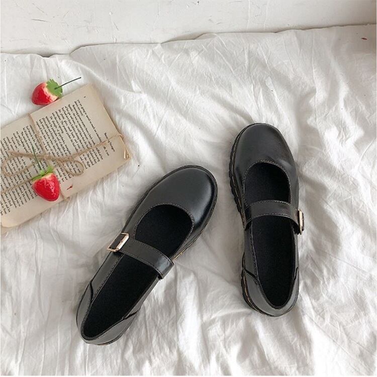 丸いつま先が可愛らしいストラップシューズ。