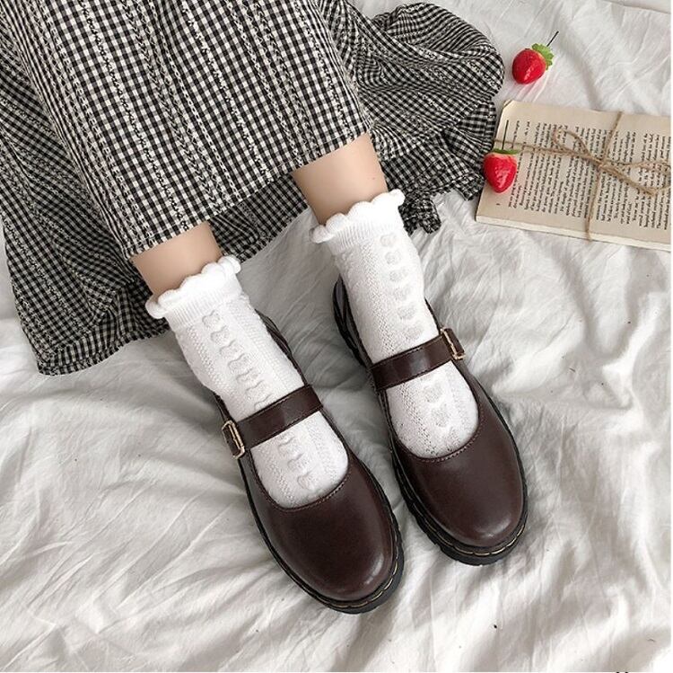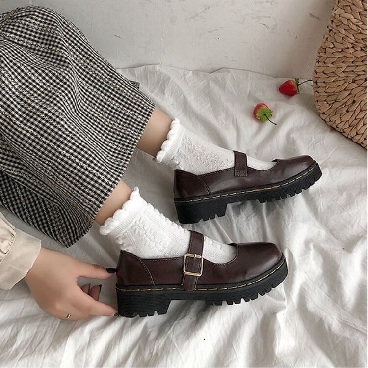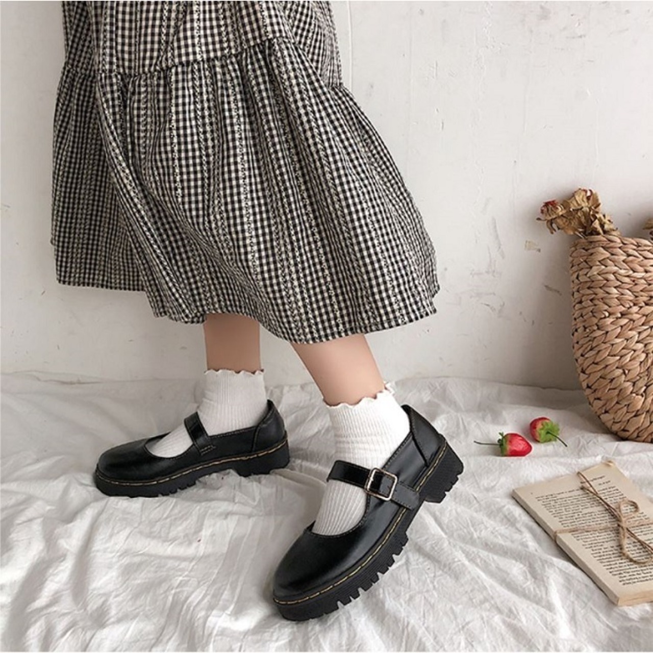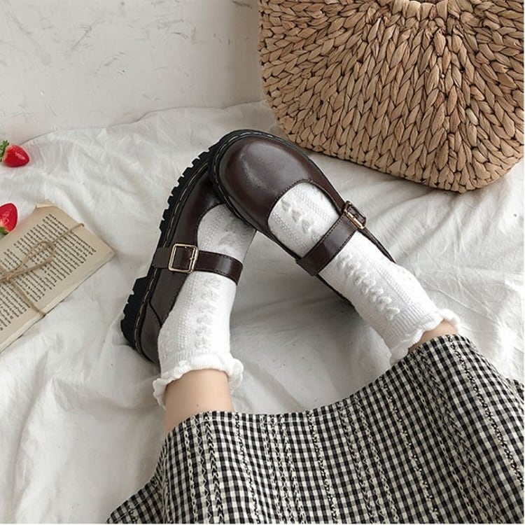 丸いつま先が可愛らしいストラップシューズ。