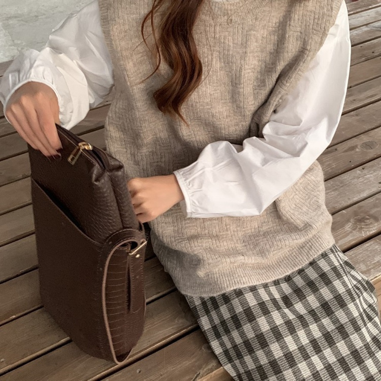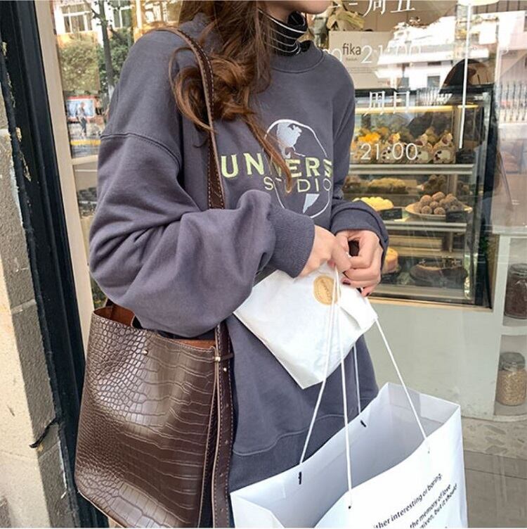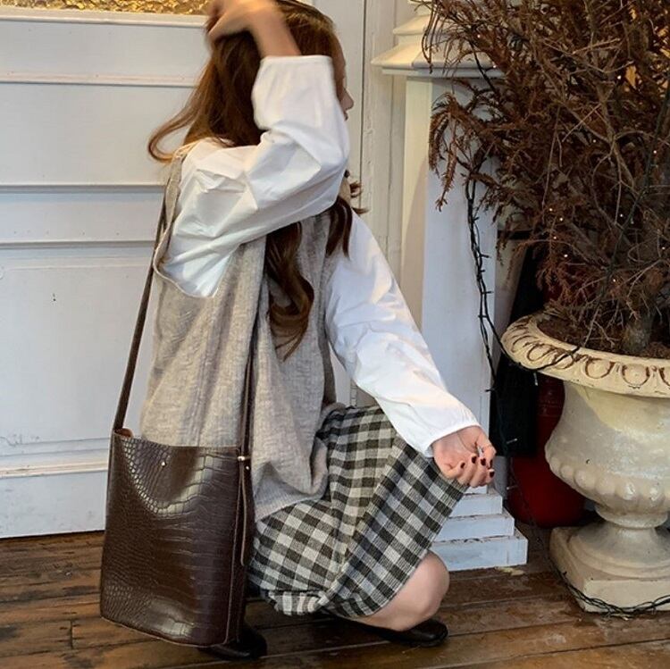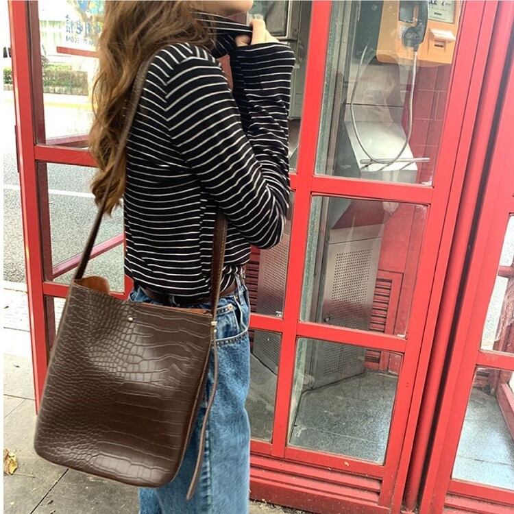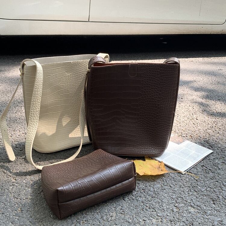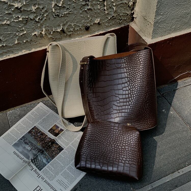 全3色 ショルダーバック スクエアバック PUレザー クロコダイル バケツバック カジュアル お出かけ デート ホワイト ブラック ブラウン