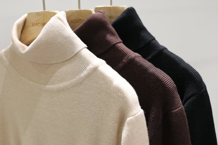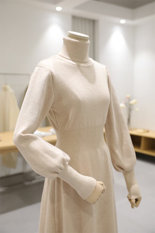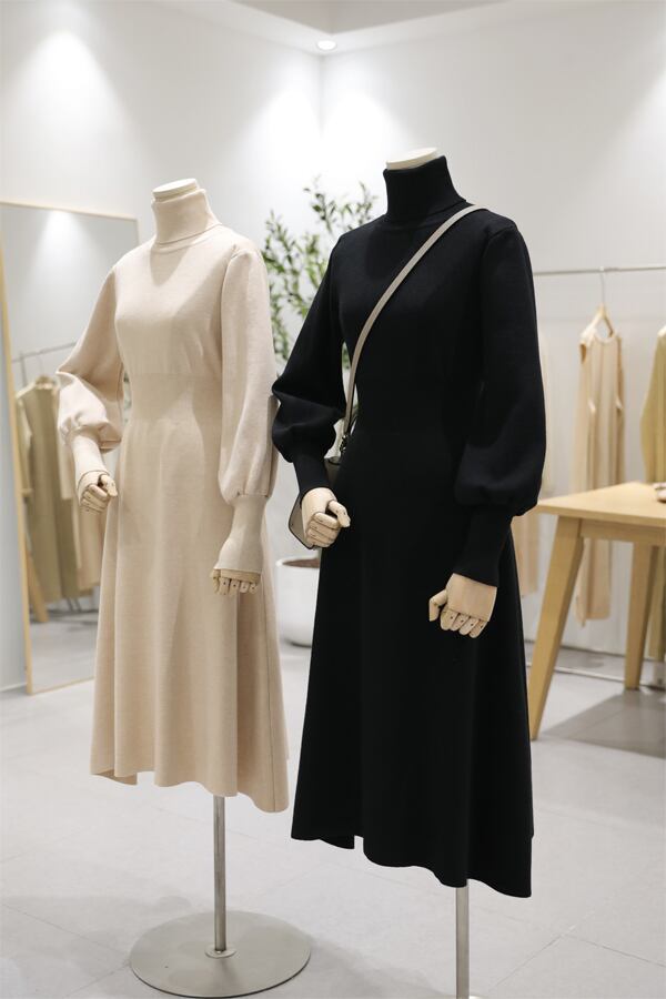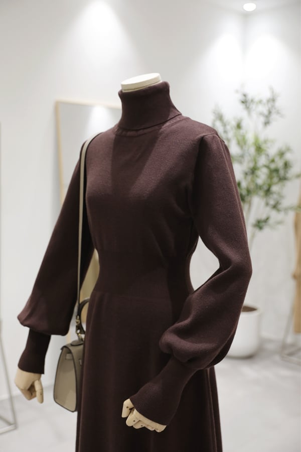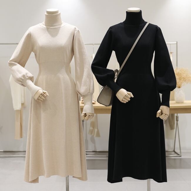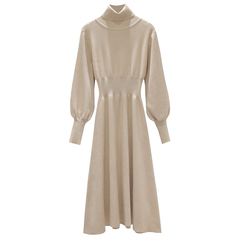 全3色 ワンピース ニット セーター 上品 ハイネック タートルネック あったか きれいめ カジュアル デート 女子会 ミモレ丈 無地 秋 春 冬