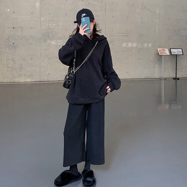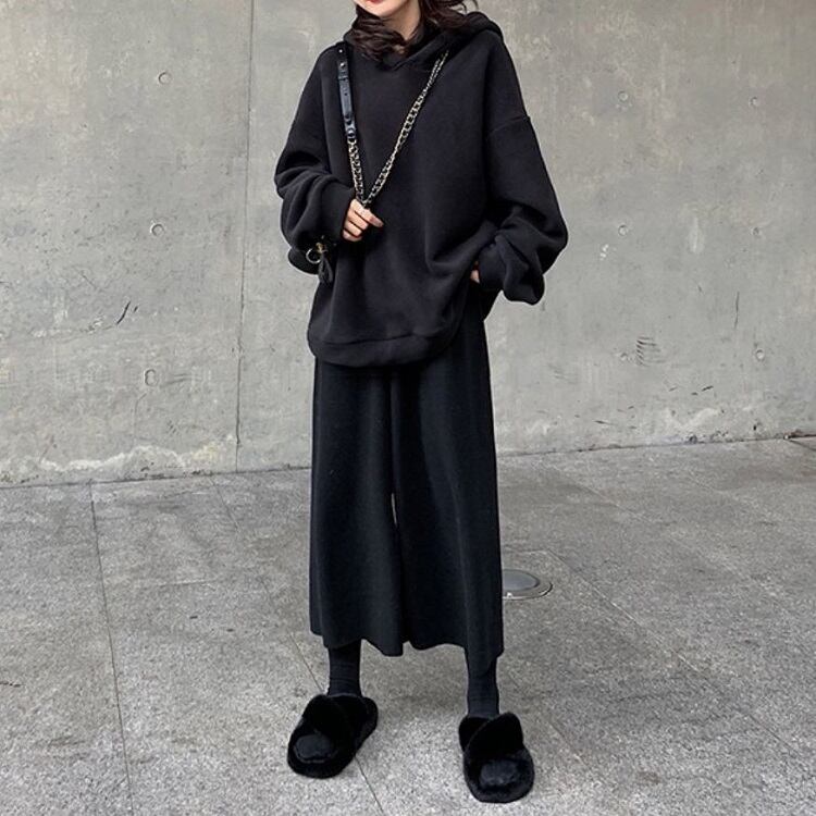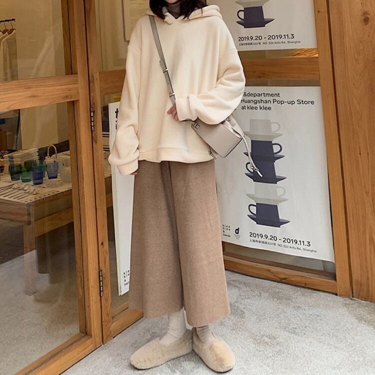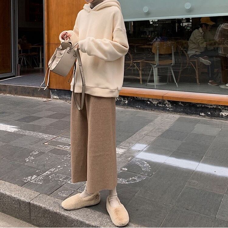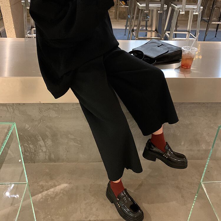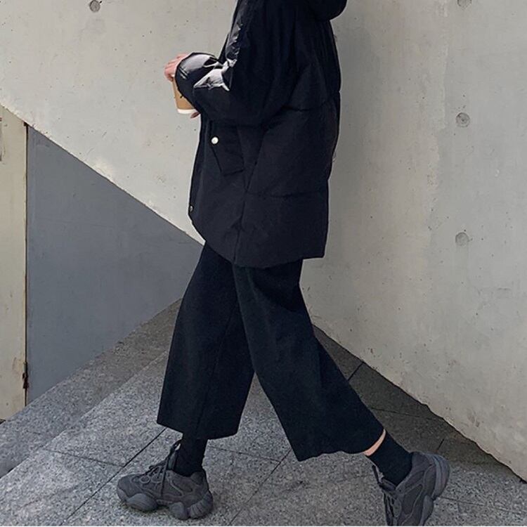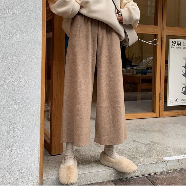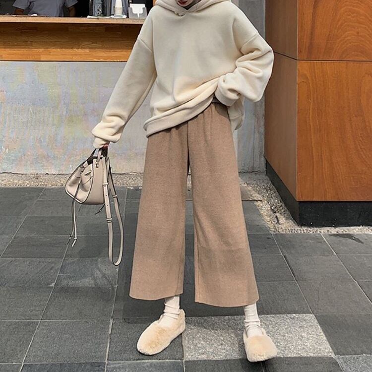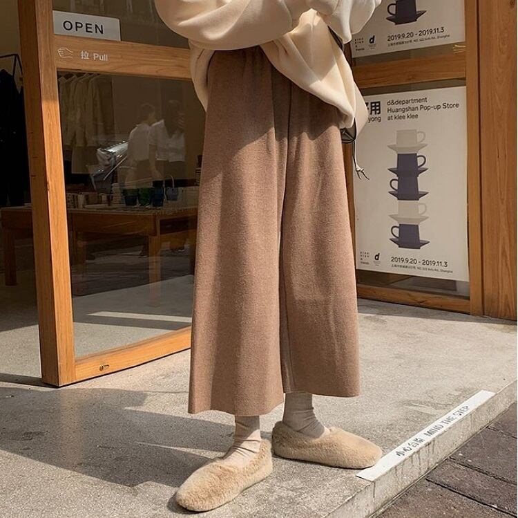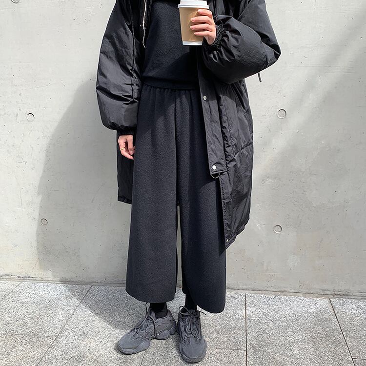 全2色 ワイドパンツ 9分丈 ウエストゴム ハイウエスト ゆったり 体型カバー 楽ちん 無地 カジュアル お出かけ デイリー 普段着 ブラック ブラウン