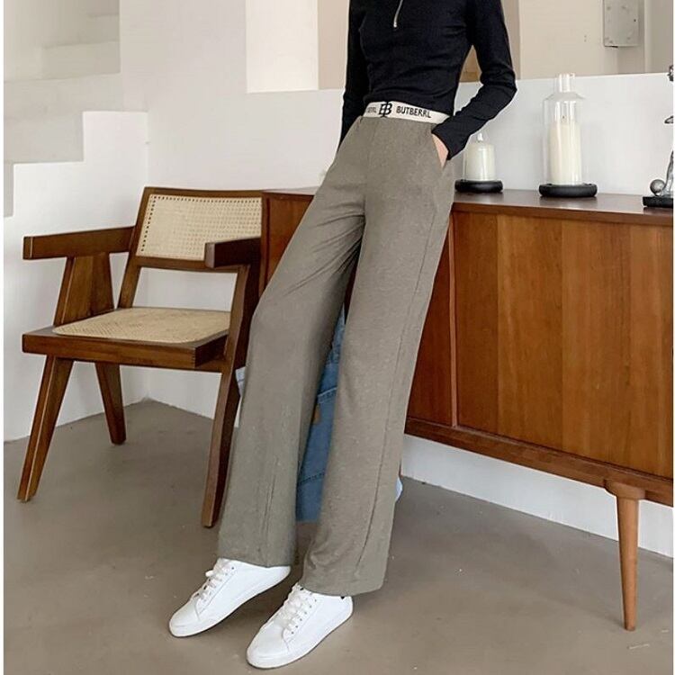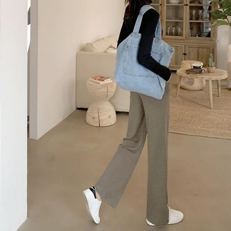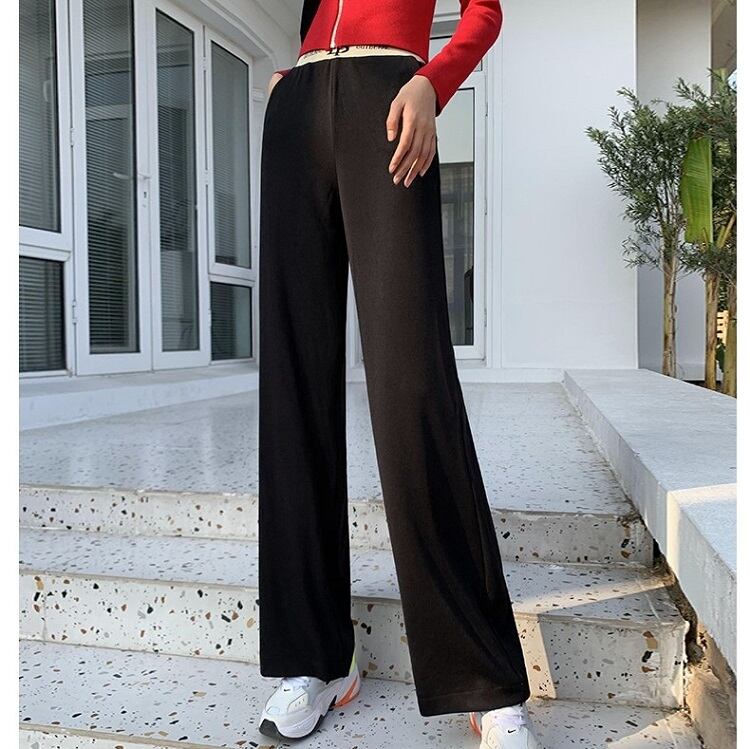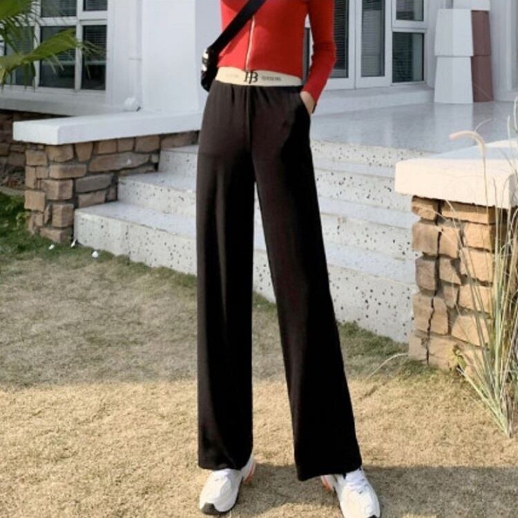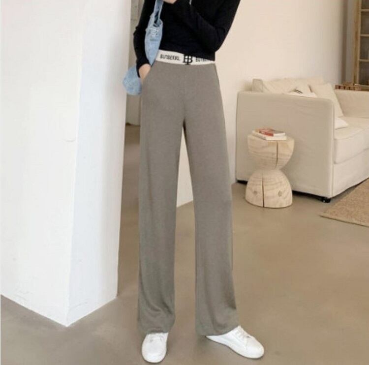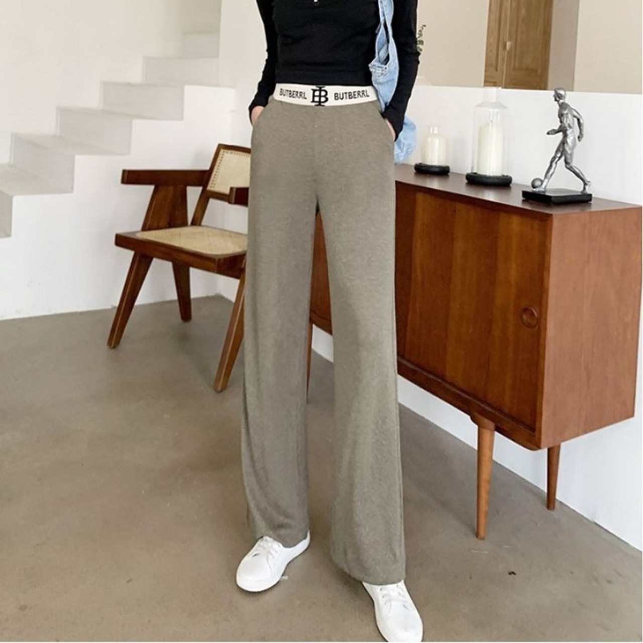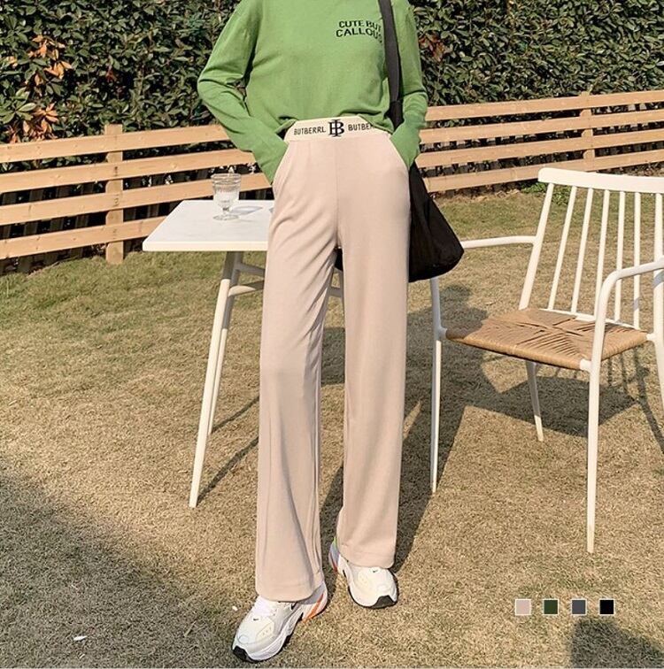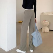 全4色 ワイドレッグパンツ ワイドパンツ ニットパンツ ウエストゴム ハイウエスト ゆったり 体型カバー 楽ちん 無地 カジュアル お出かけ デイリー スポーツ 普段着 アプリコット グレー ブラック アーミーグリーン