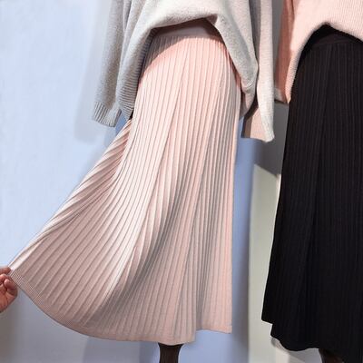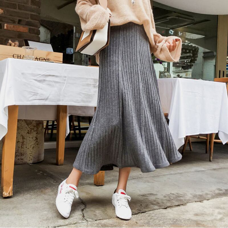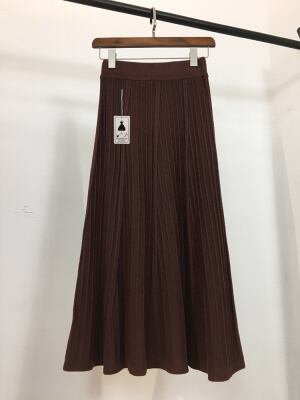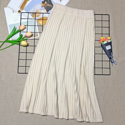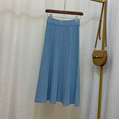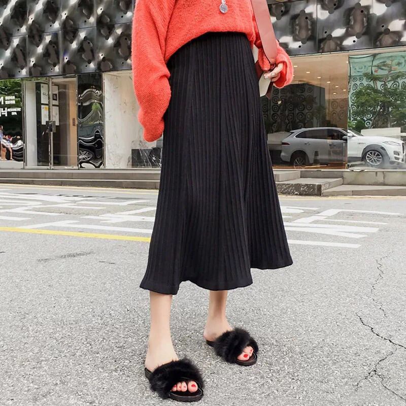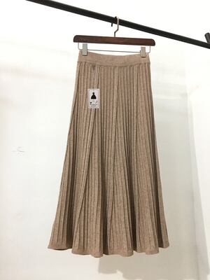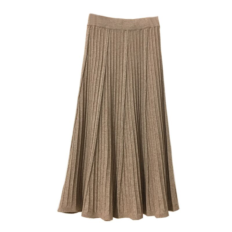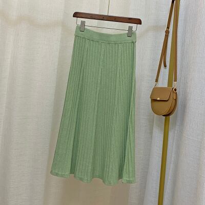 全9色 ボトムス スカート ハイウエスト ニットスカート ウエストゴム Aライン ミモレ丈 プリーツ フレア ロング丈 上品 大人 カジュアル デイリー 無地 秋 春 冬
