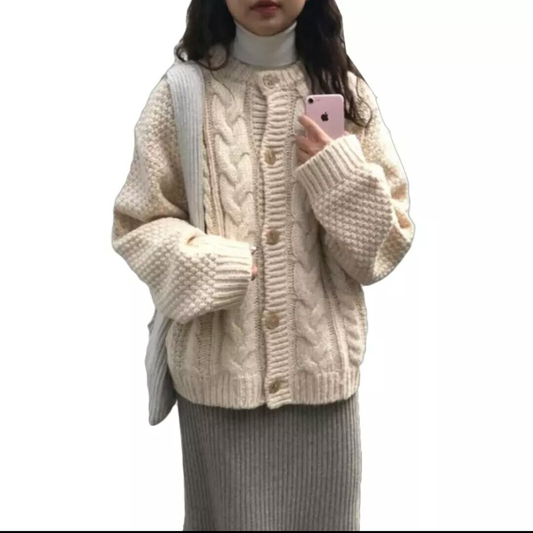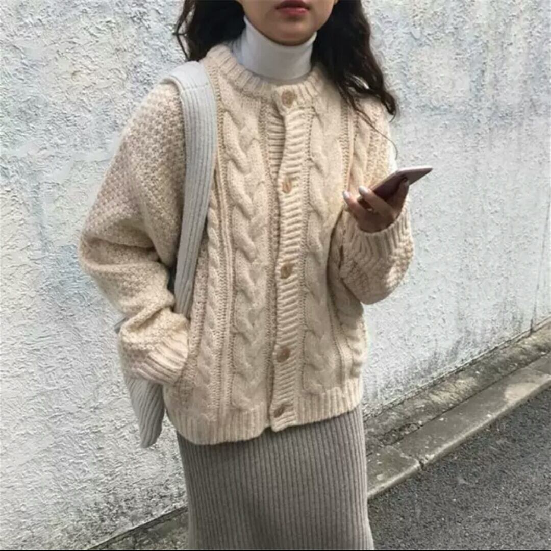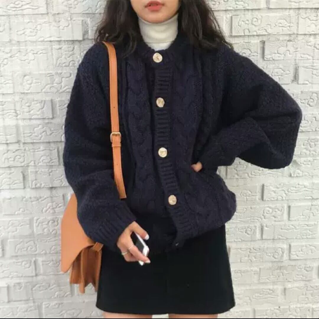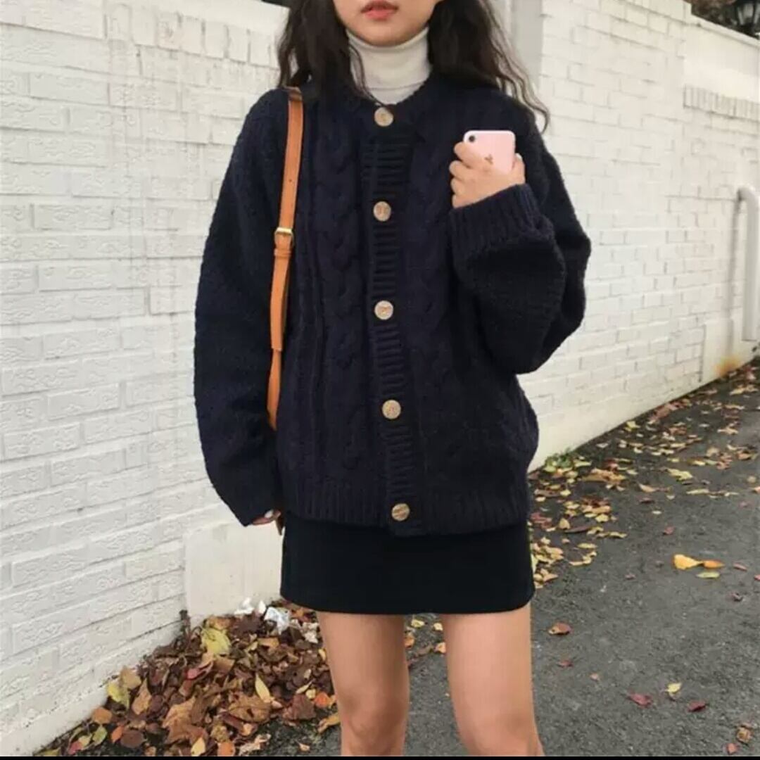 全2色 セーター カーディガン 無地 シンプル 厚手 羽織 大人 カジュアル キレイめ 可愛い お出かけ お買い物 デート 女子会 秋冬 春 通学 学生 通勤 韓国ファッション