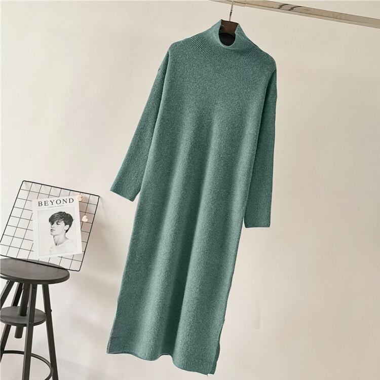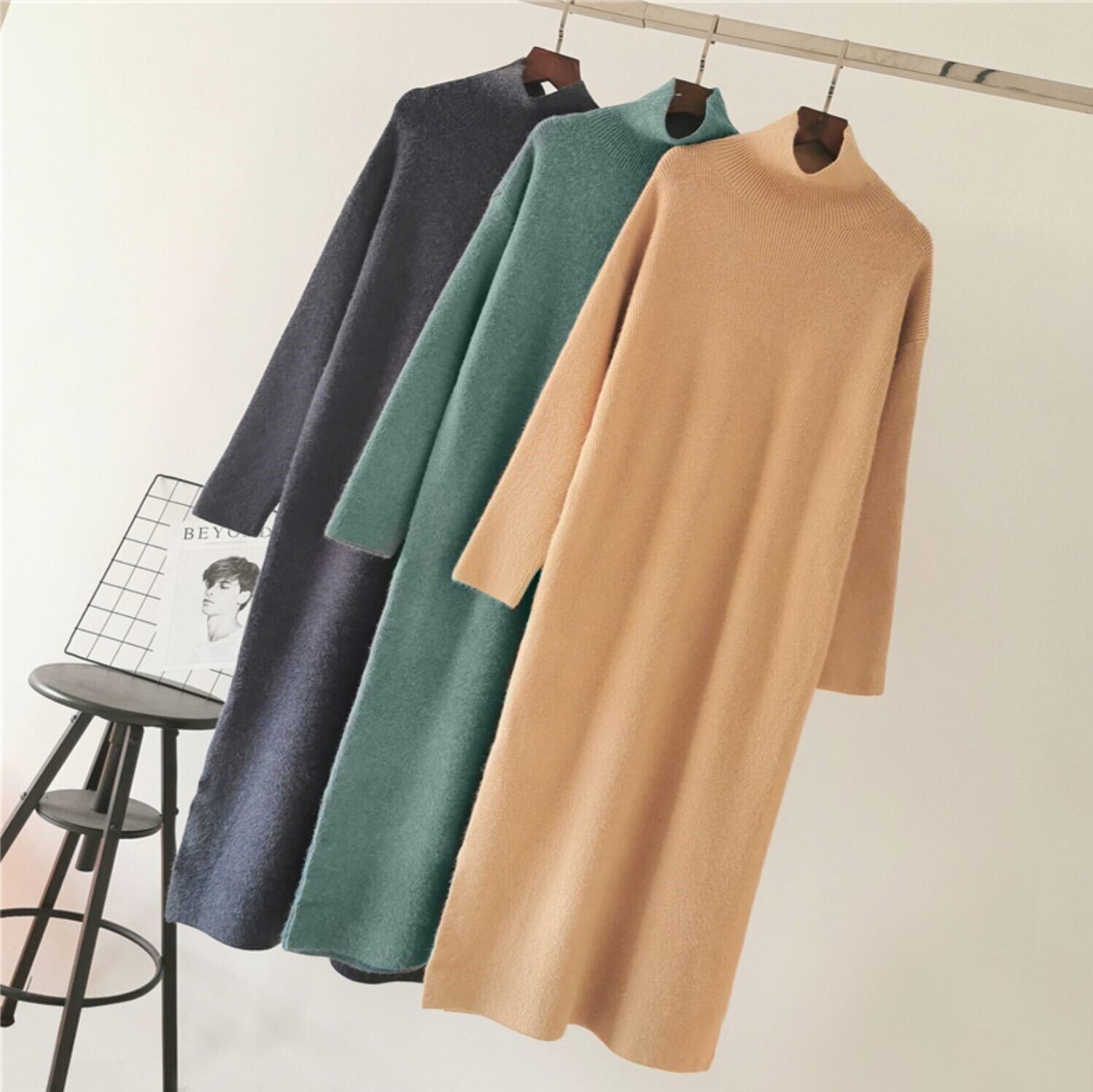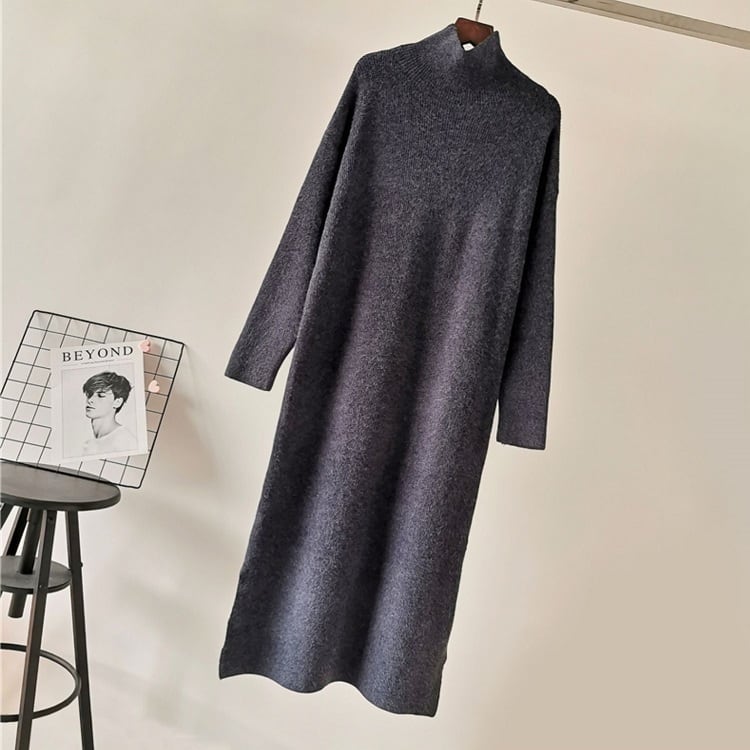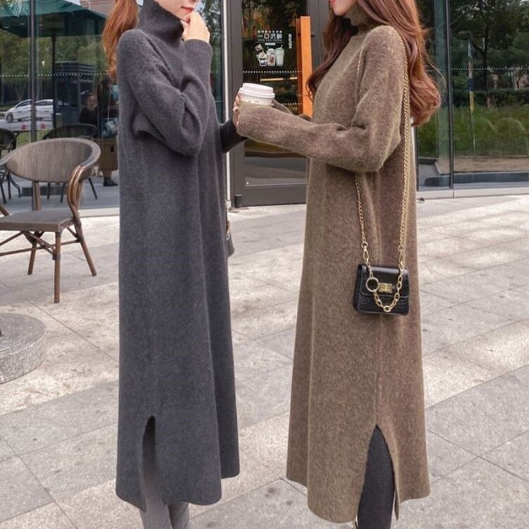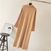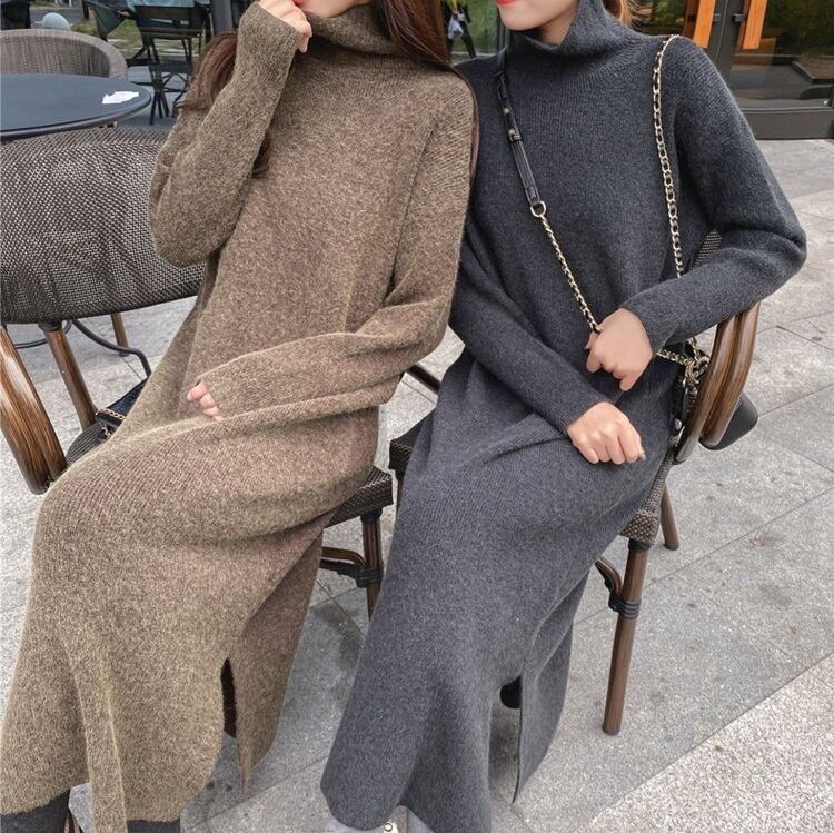 全4色 ニットワンピース ワンピース タートルネック ロング 無地 きれいめ カジュアル お出かけ デート デイリー 普段着 秋冬 グレー ブラウン カーキ グリーン