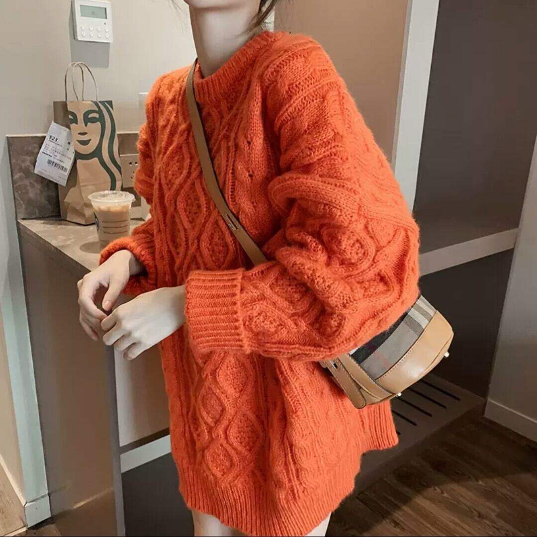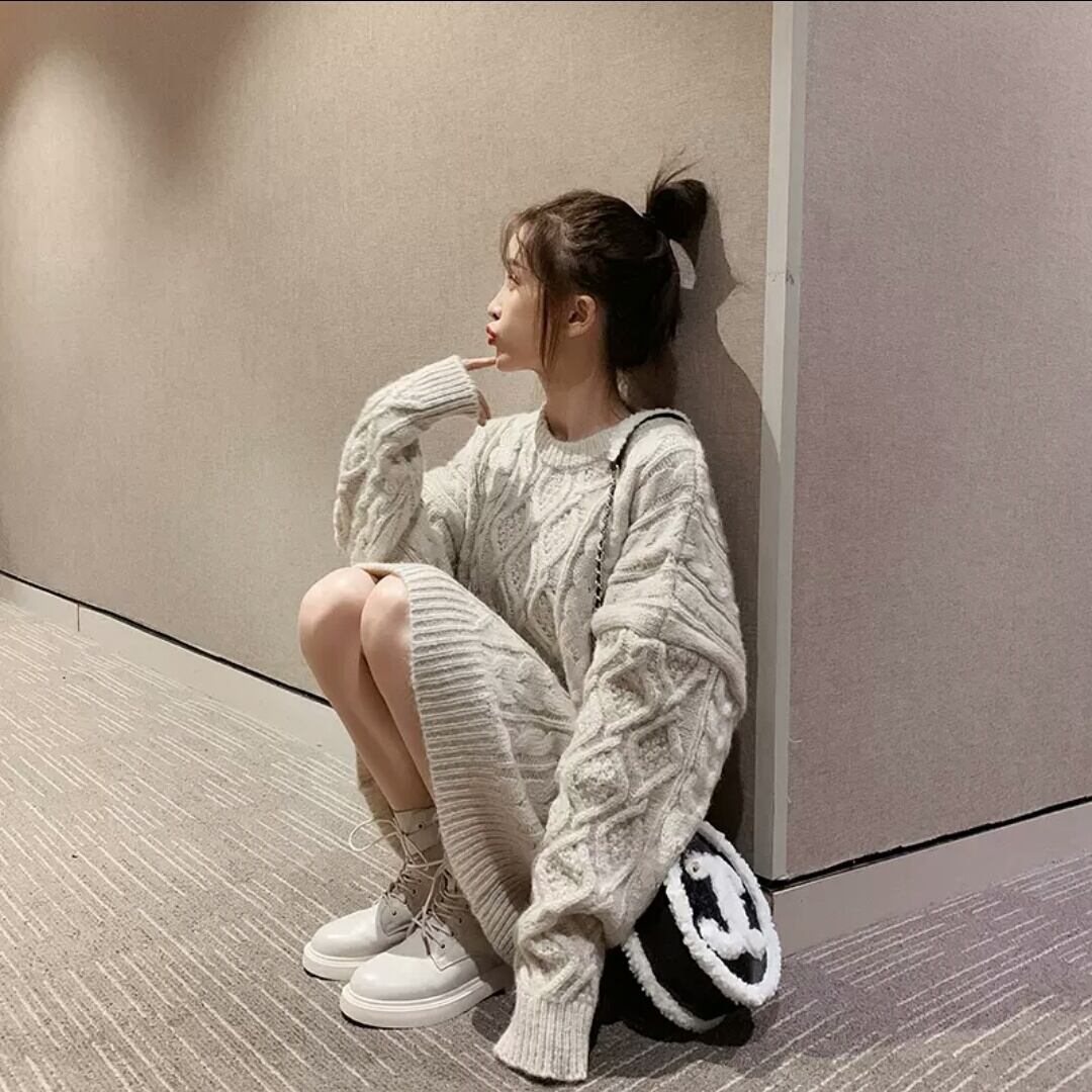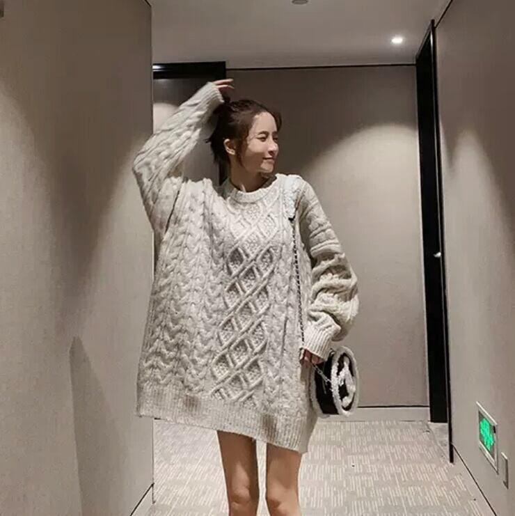 全3色 ツイスト セーター ミドル丈 長め ニット トップス 無地 大人 カジュアル シンプル キレイめ 可愛い オーバーサイズ お出かけ お買い物 デート 女子会 秋冬 春 通学 学生 通勤 韓国ファッション