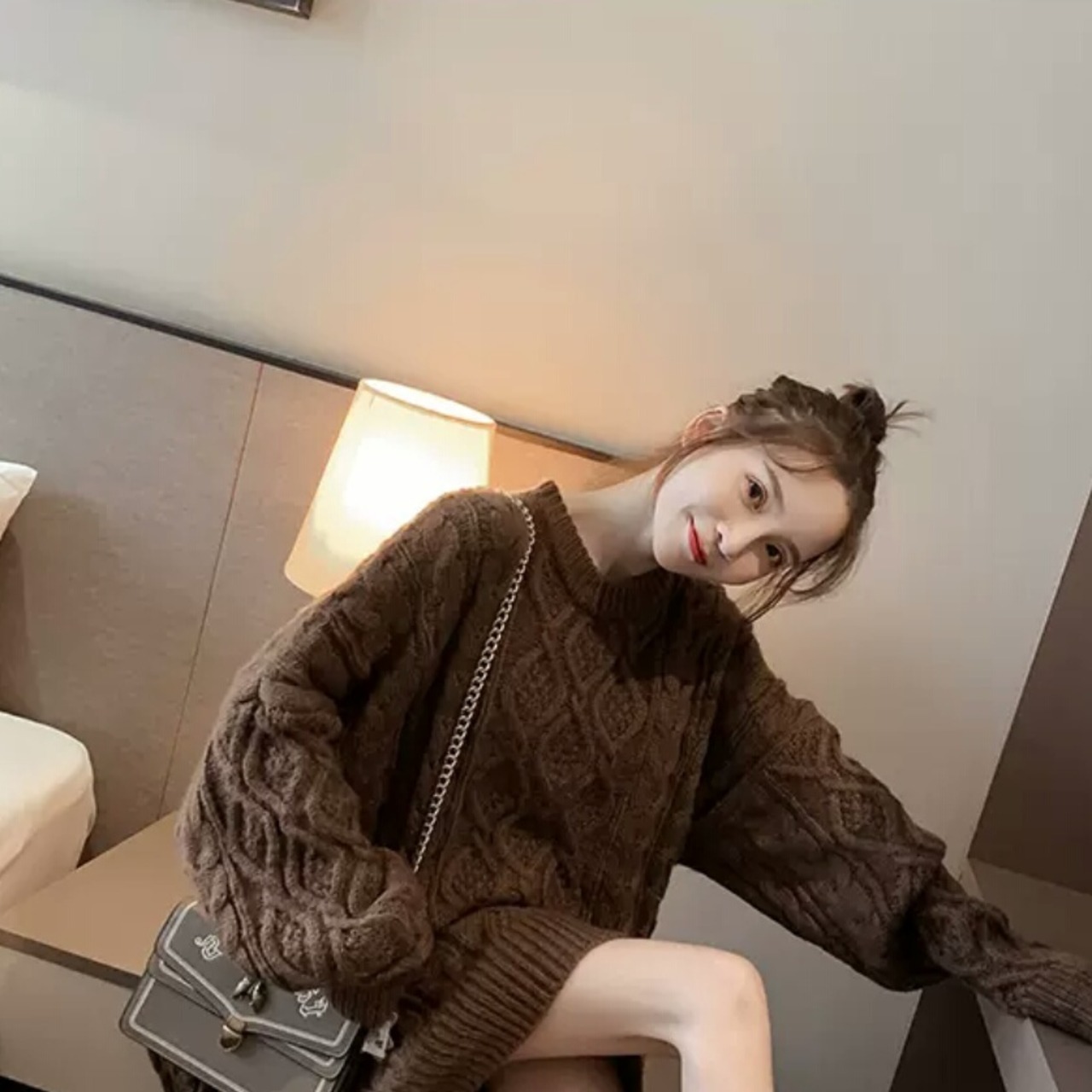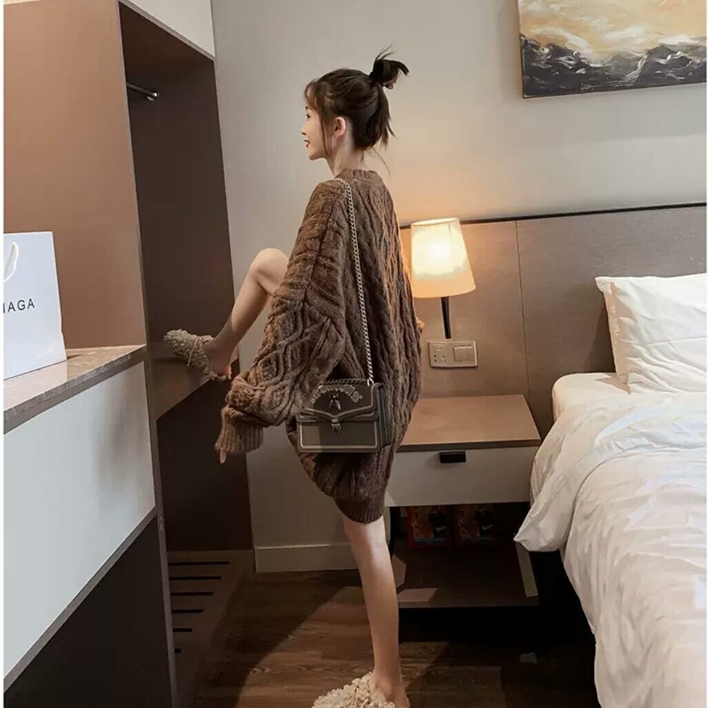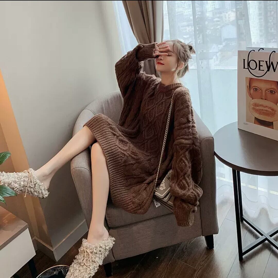 全3色 ツイスト セーター ミドル丈 長め ニット トップス 無地 大人 カジュアル シンプル キレイめ 可愛い オーバーサイズ お出かけ お買い物 デート 女子会 秋冬 春 通学 学生 通勤 韓国ファッション