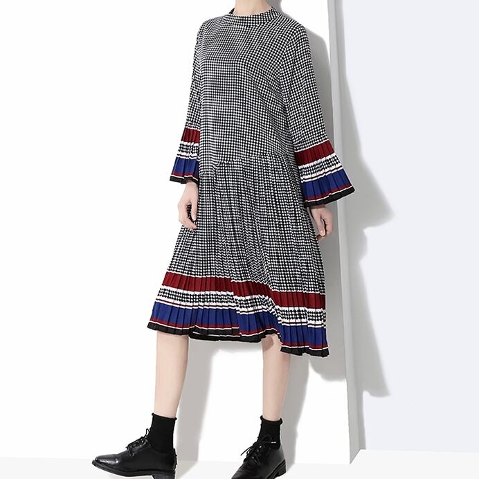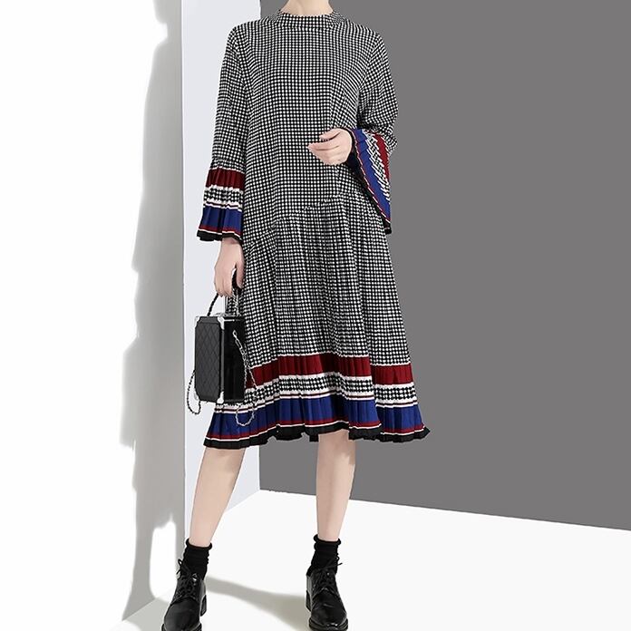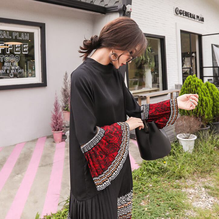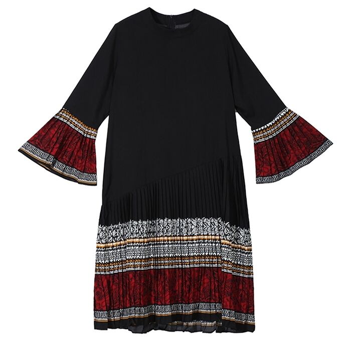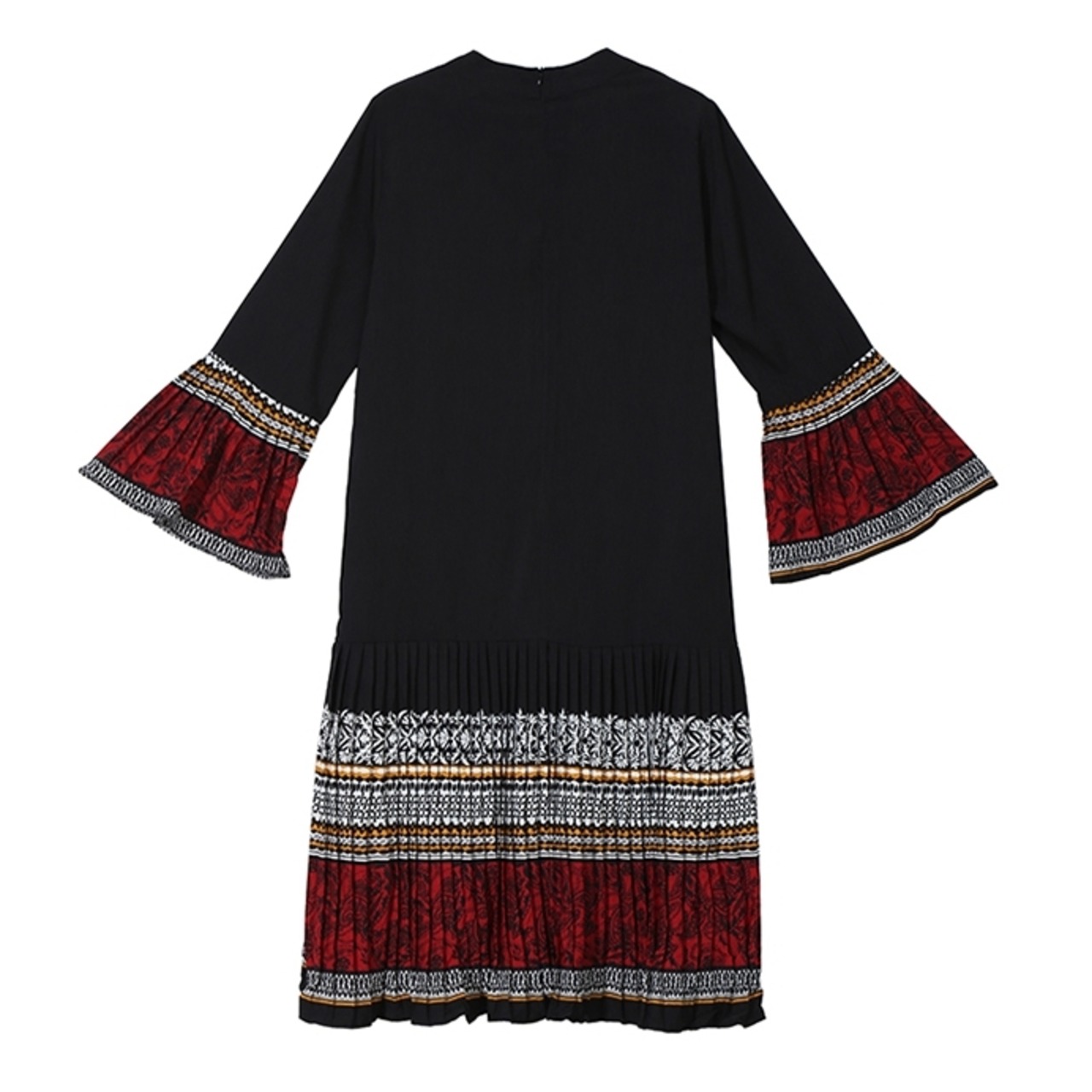 全2色 ペイズリー柄 プリーツ ワンピース フレア袖 ひざ下丈 デイリー ロング ワンピ 春夏