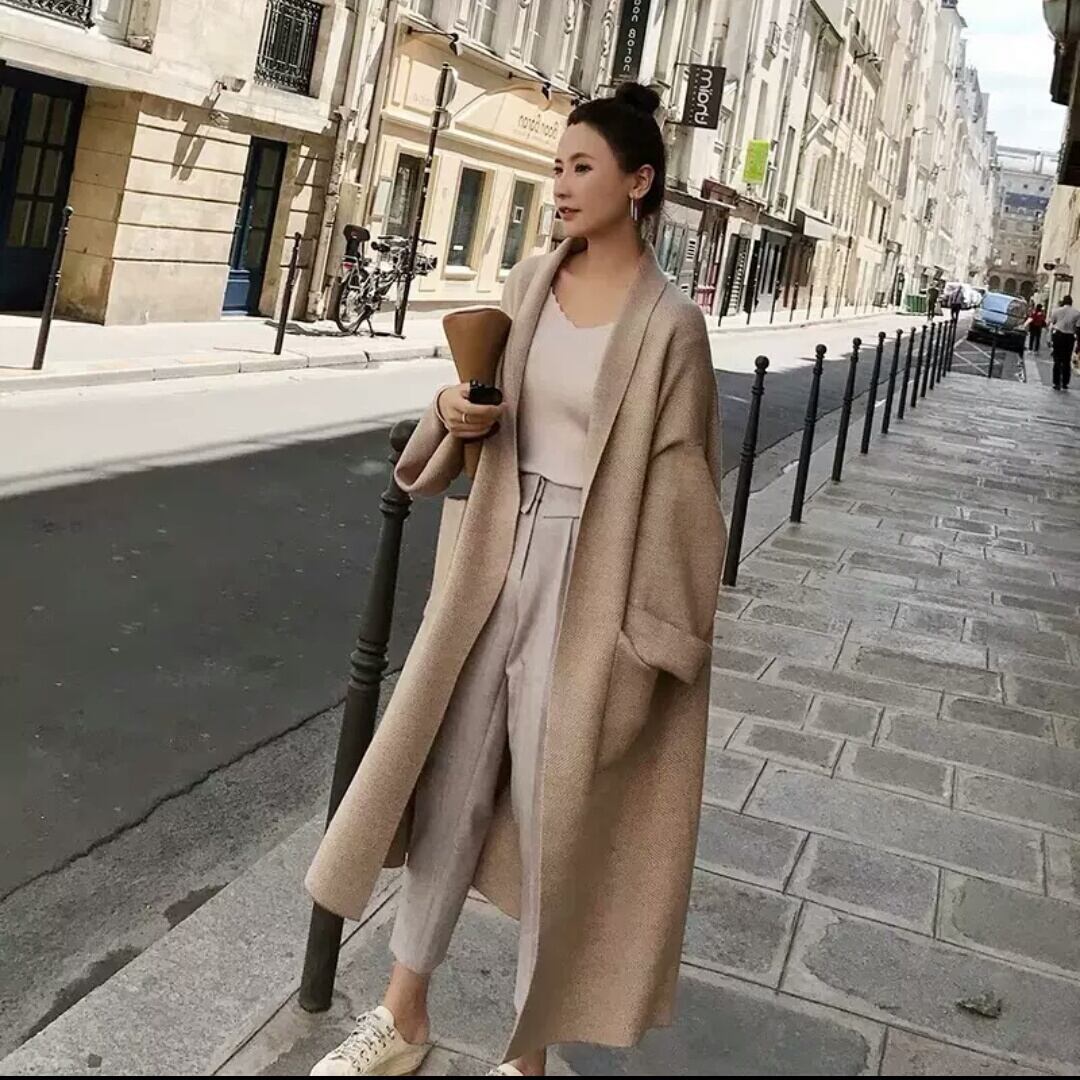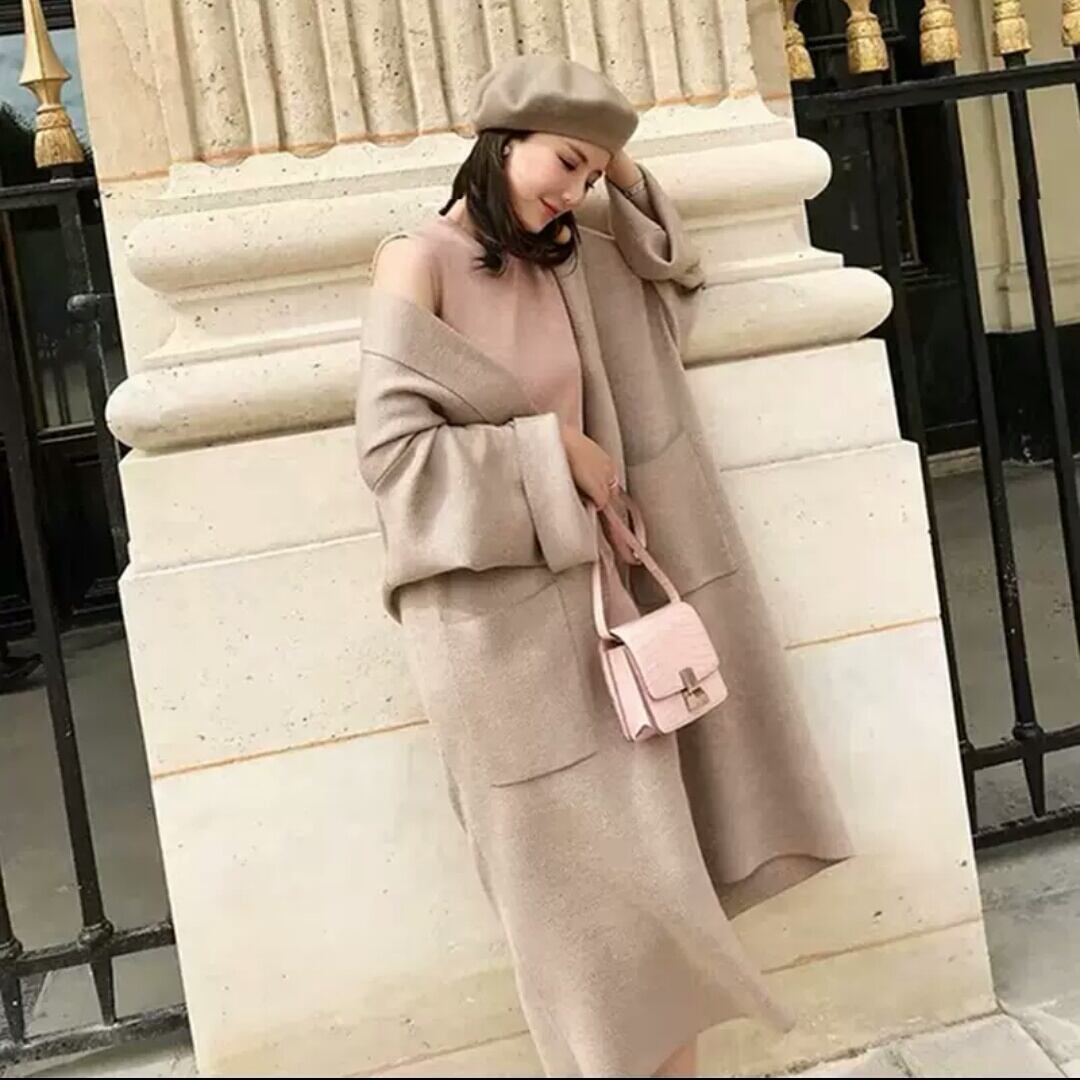 無地 ロング丈 ニット カーディガン ジャケット ポケット トップス 羽織 アウター 大人 カジュアル キレイめ 上品 シンプル お出かけ お買い物 デート 女子会 秋冬 春 通学 学生 通勤 韓国ファッション