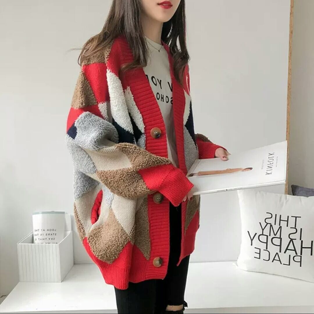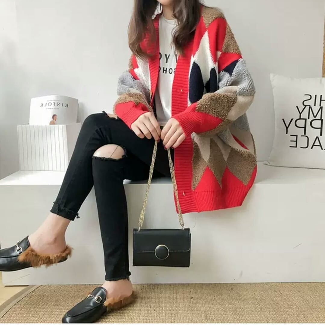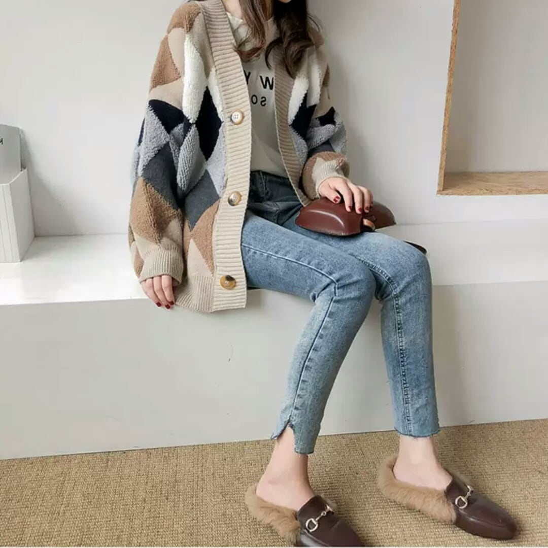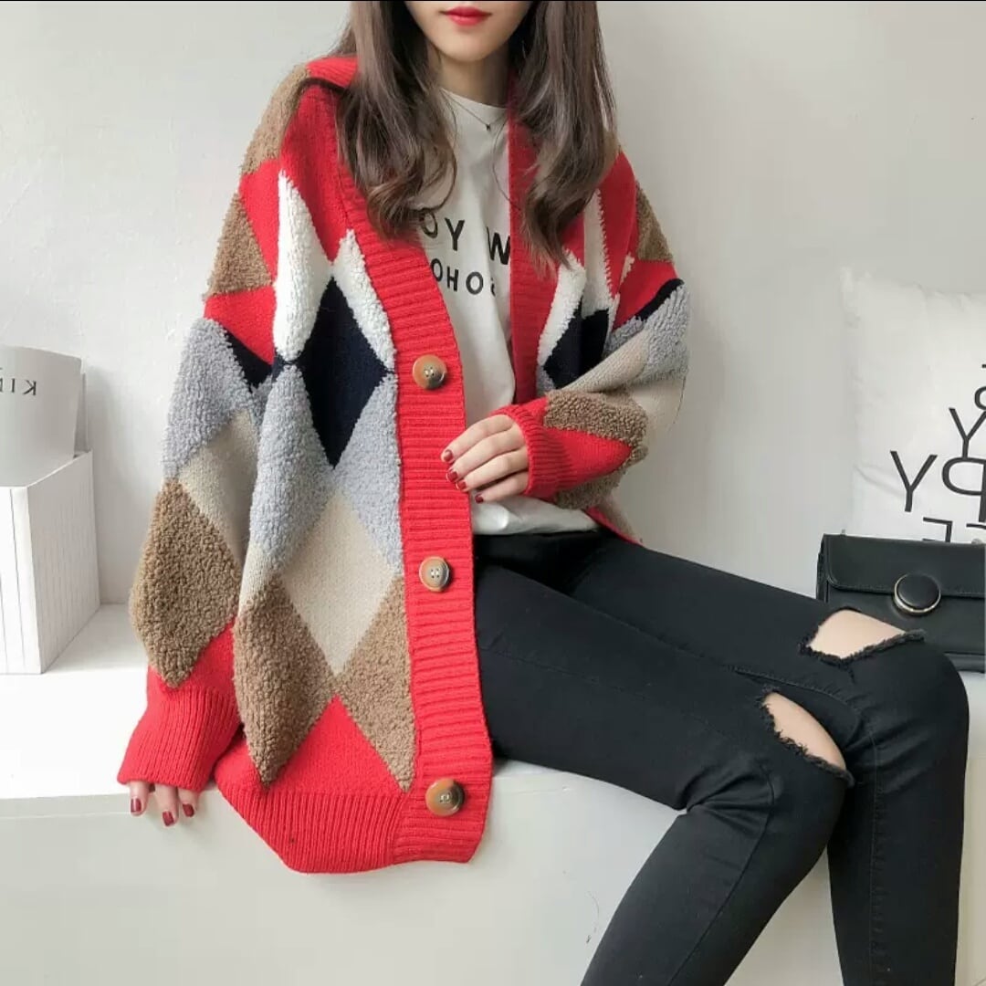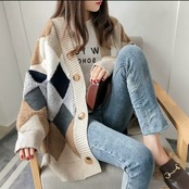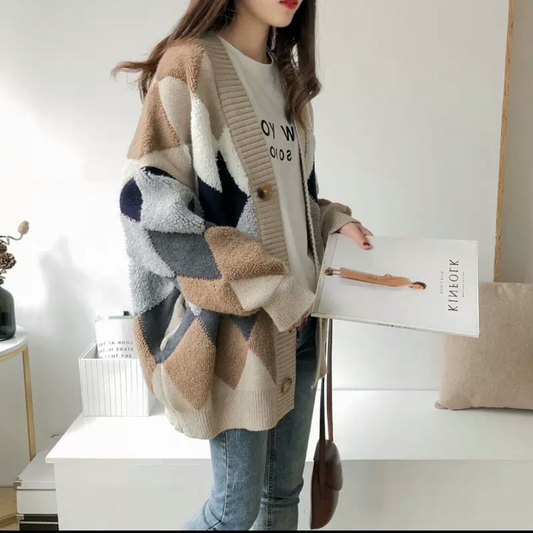 全3色 ダイヤモンド柄 ニット カーディガン セーター トップス 羽織 大人 カジュアル キレイめ 可愛い お出かけ お買い物 デート 女子会 秋冬 春 通学 学生 通勤 韓国ファッション