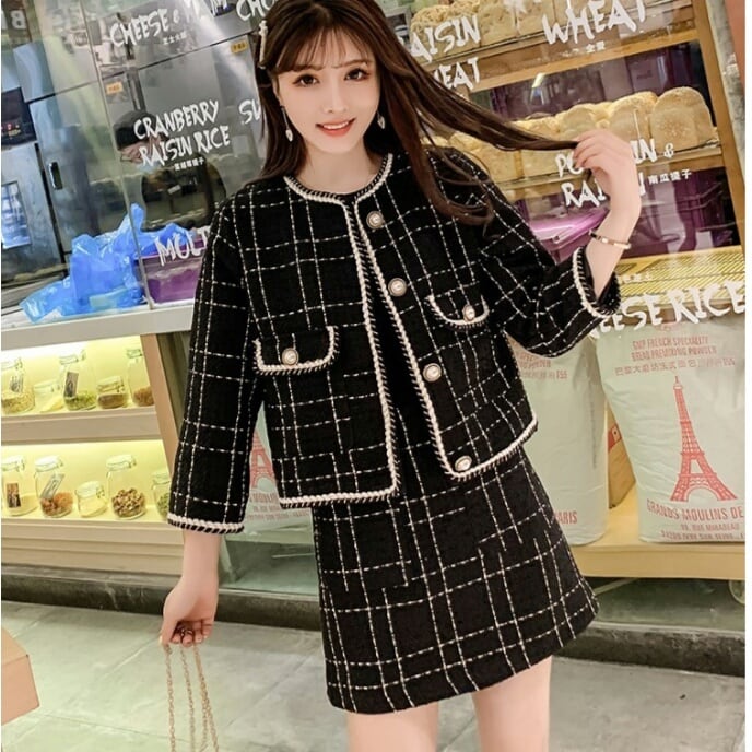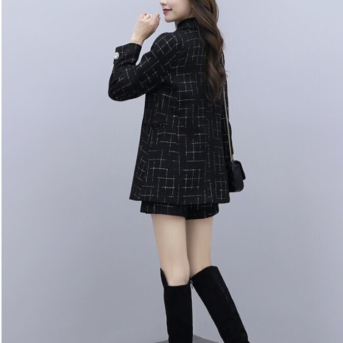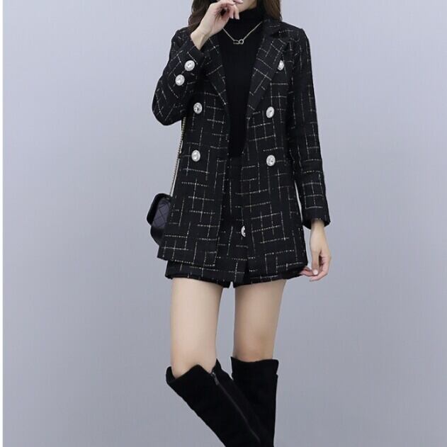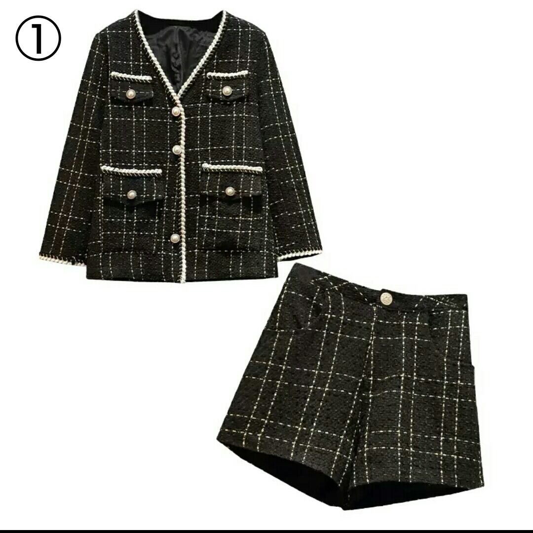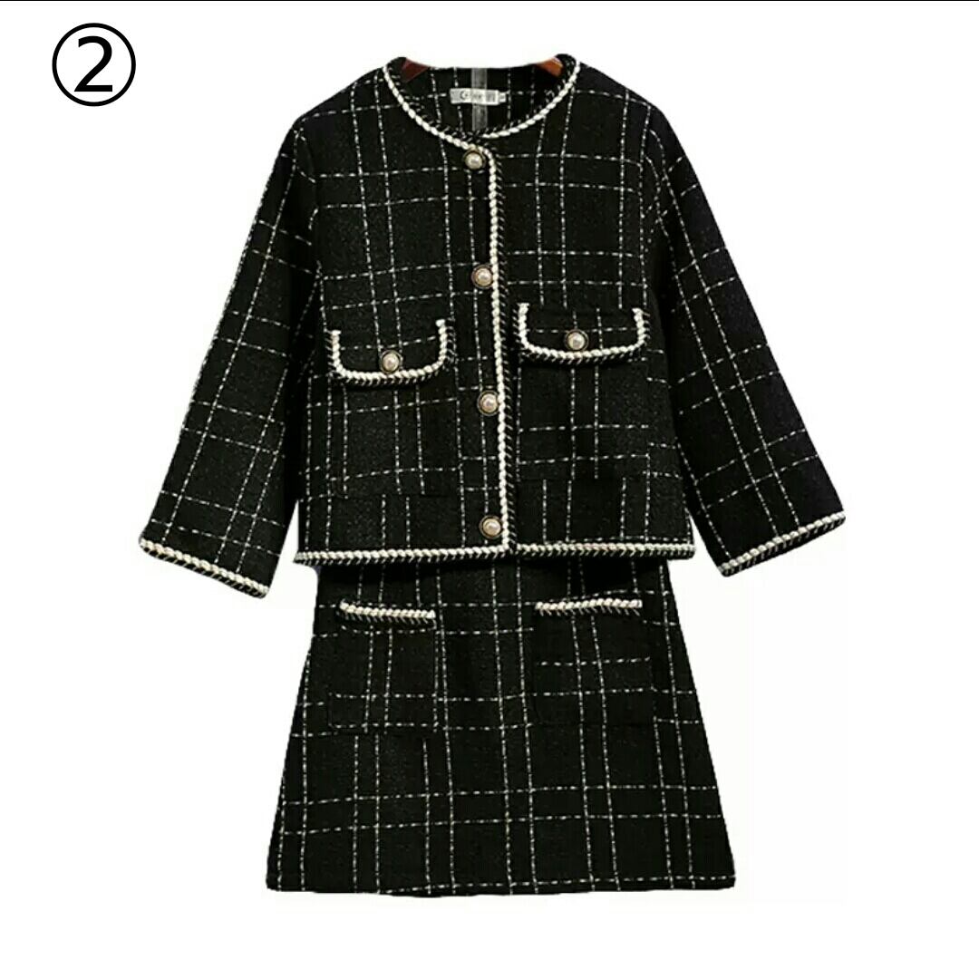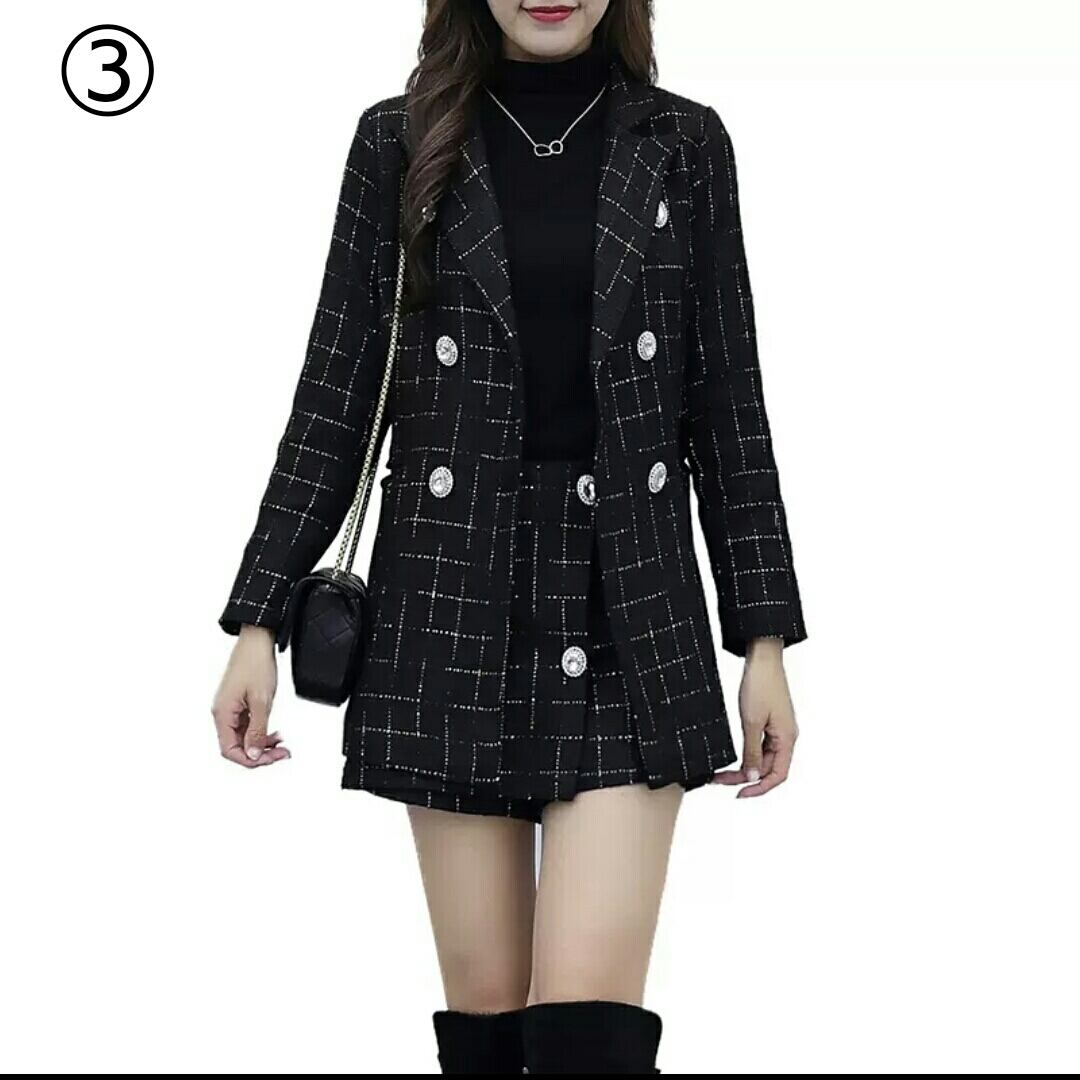 全3種 セットアップ ジャケット ボトムス 格子 大きいサイズ 黒 大人 キレイめ 可愛い 上品 お出かけ お買い物 デート 女子会 秋冬 春 通学 学生 通勤 韓国ファッション