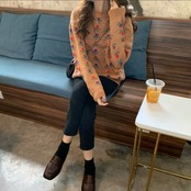 小花柄が可愛いラウンドネックセーター♪