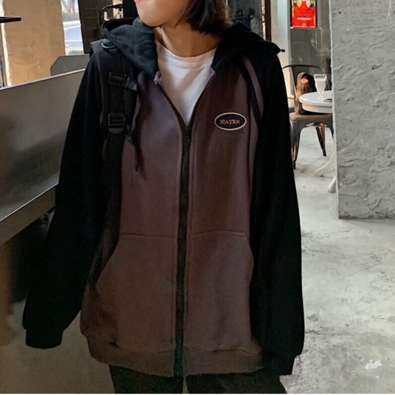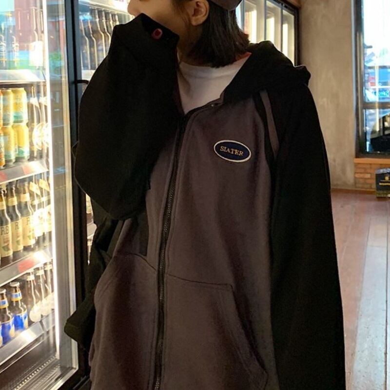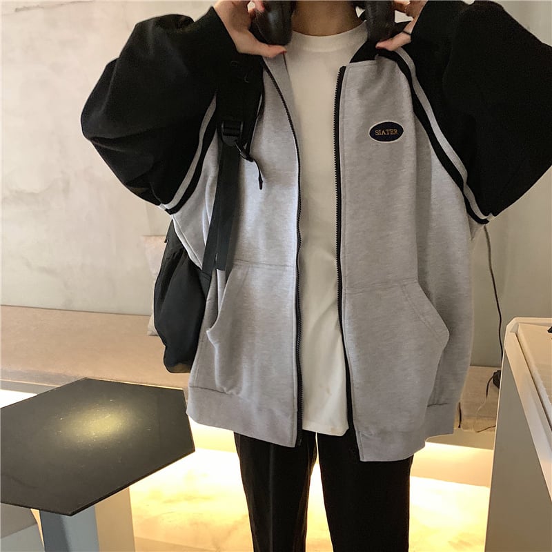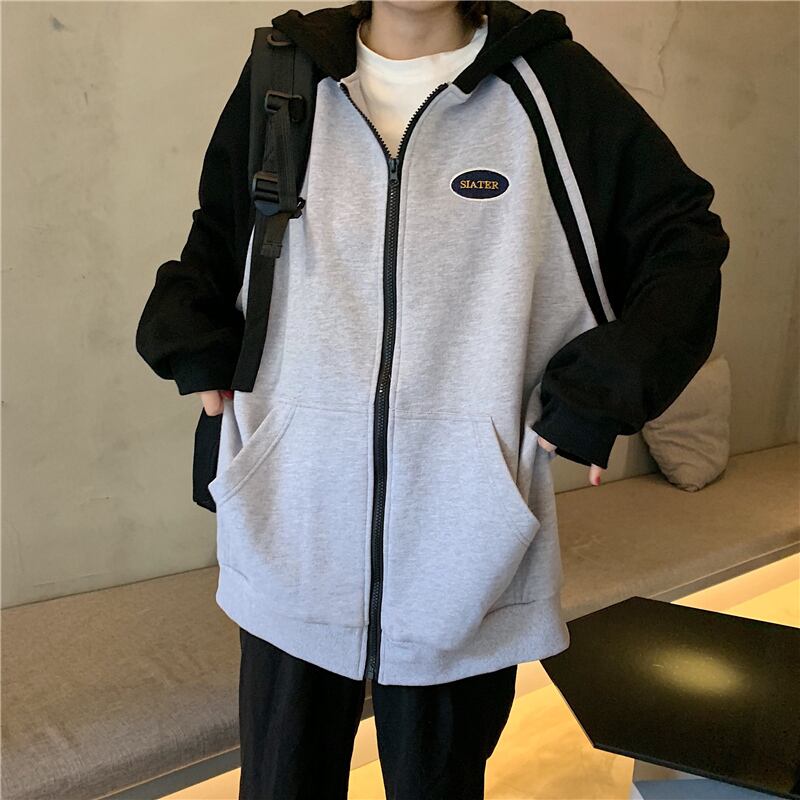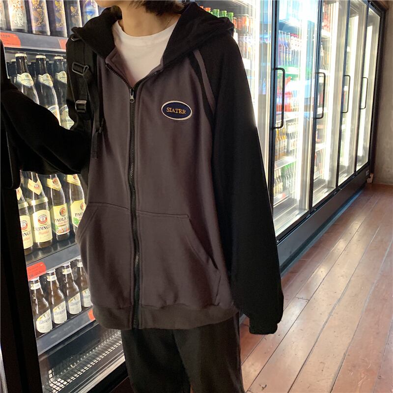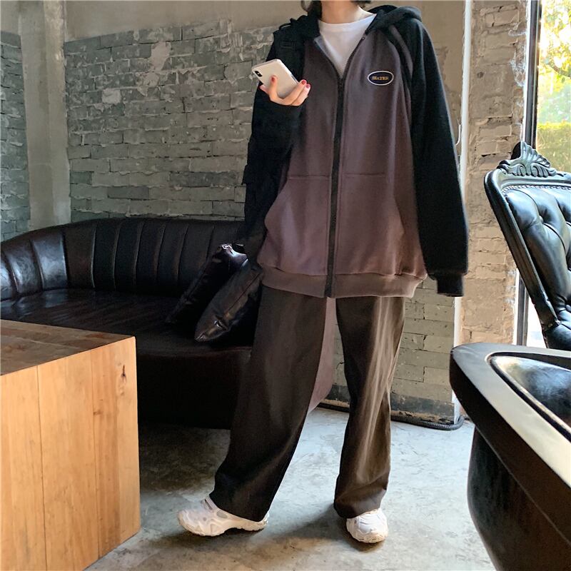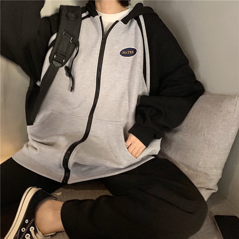 全2色 ジップパーカー ファスナー ラグランスリーブ フード付き スウェット ゆったり カジュアル お出かけ デート レジャー デイリー 秋冬 春