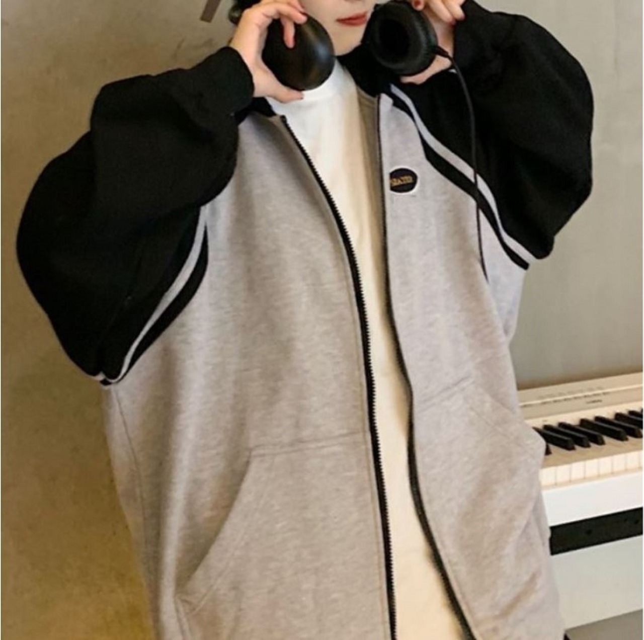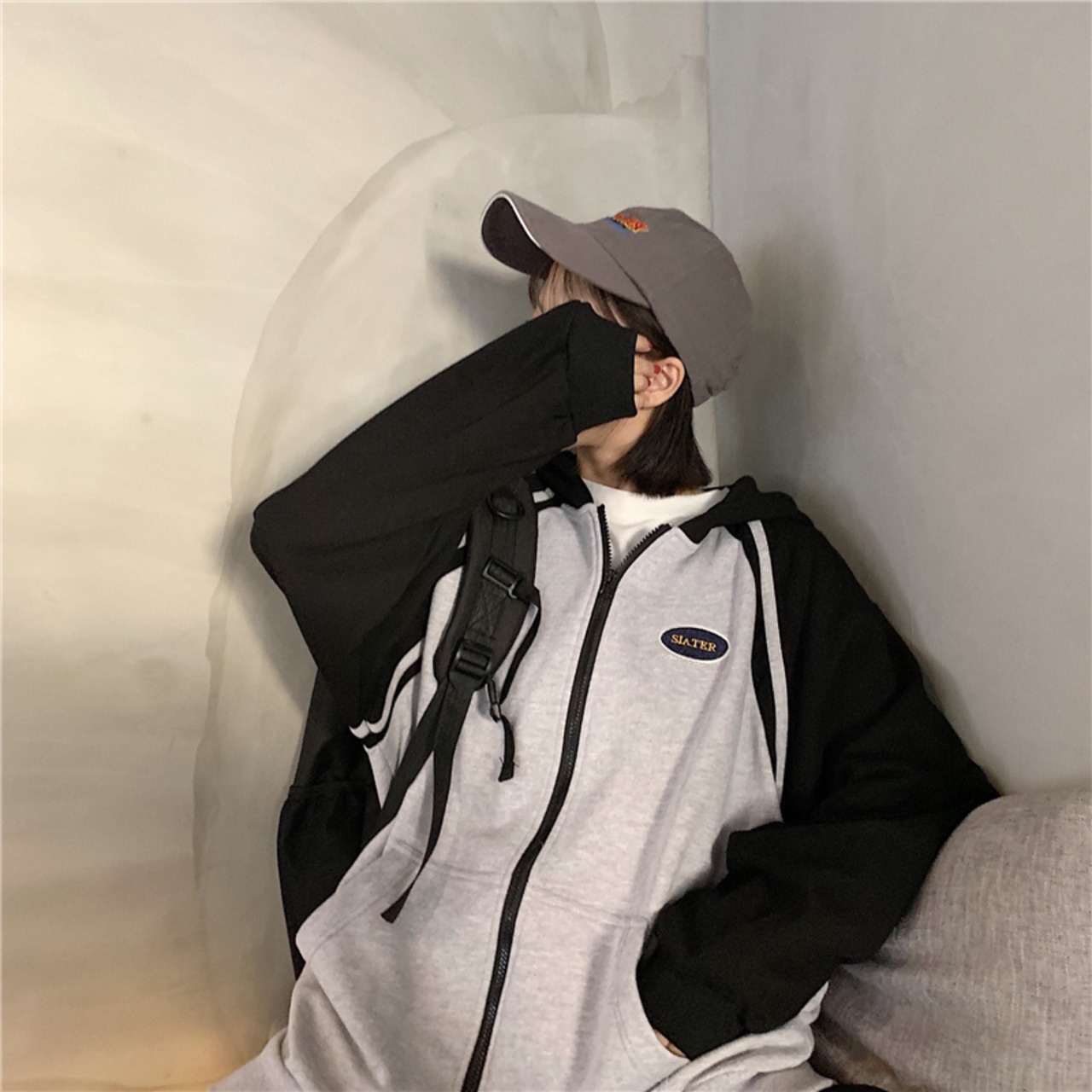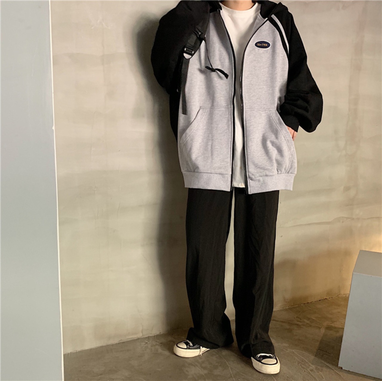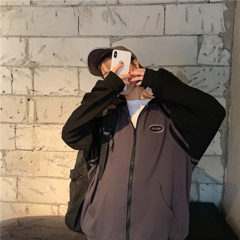 全2色 ジップパーカー ファスナー ラグランスリーブ フード付き スウェット ゆったり カジュアル お出かけ デート レジャー デイリー 秋冬 春