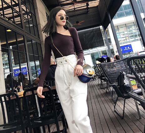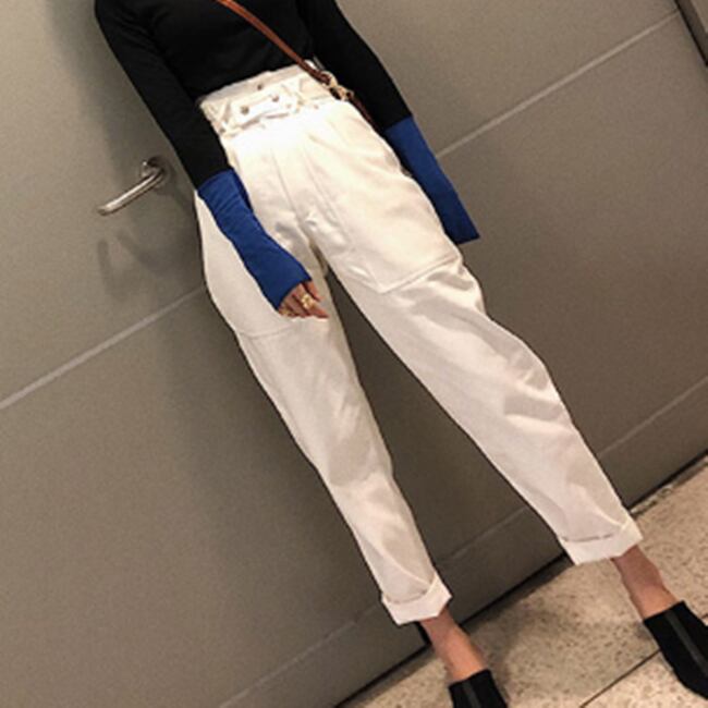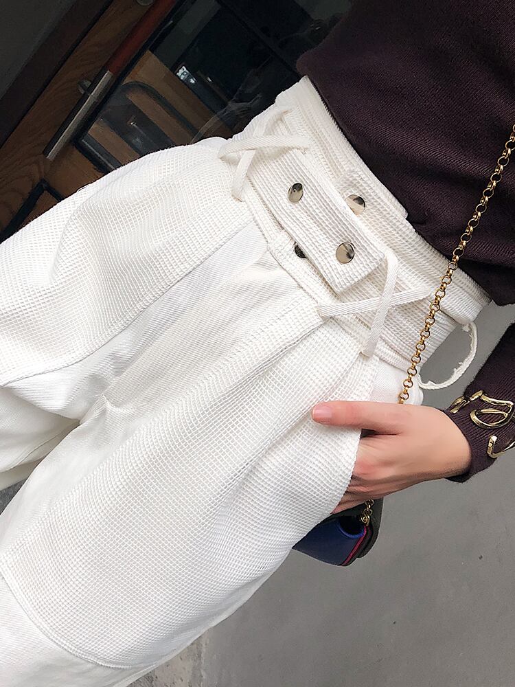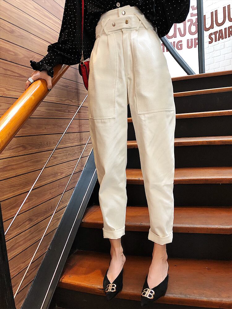 ボトムス パンツ ハイウエスト サルエルパンツ ベルト 上品 韓国ファッション きれいめ アンクル丈 ゆったりめ 大人 デート カジュアル きれいめ 秋 冬 春