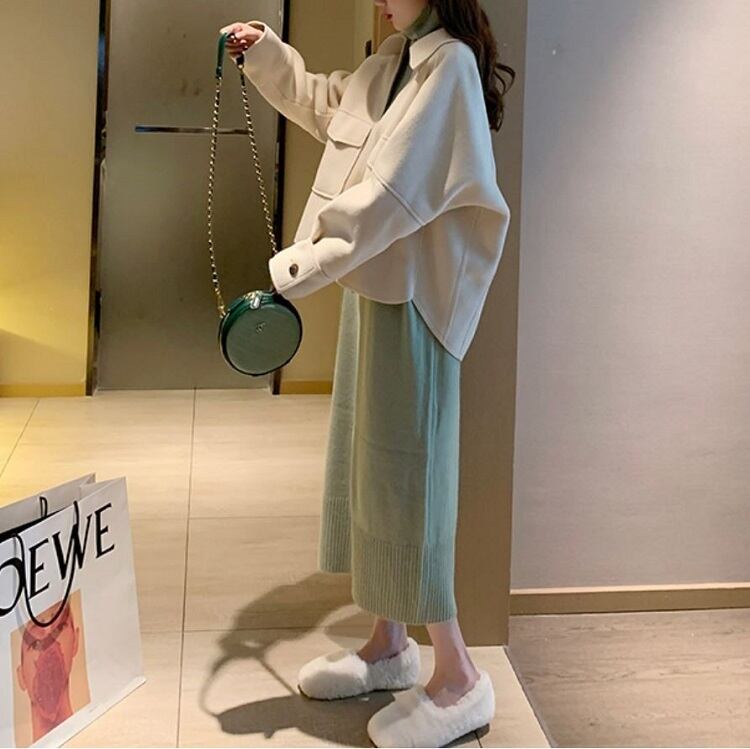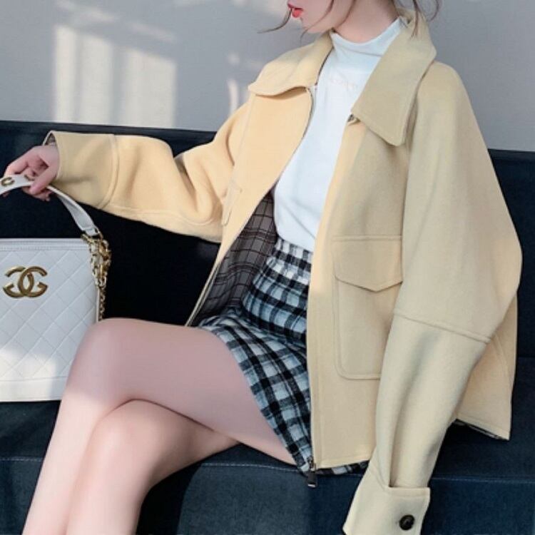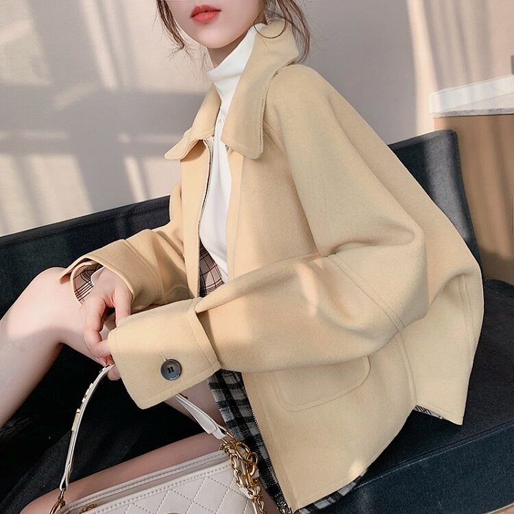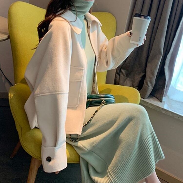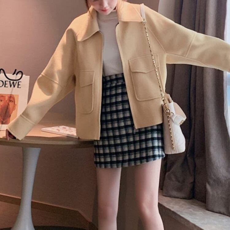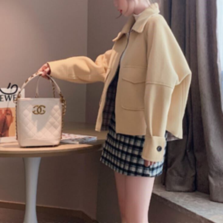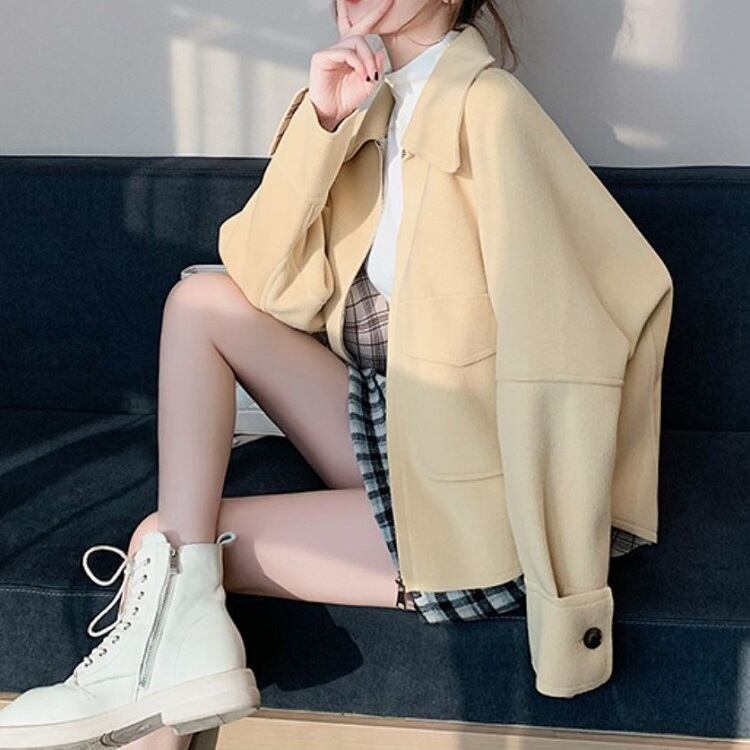 全2色 ステンカラージャケット ショートジャケット ドロップショルダー ファスナー きれいめ カジュアル お出かけ デート オフィス 秋冬