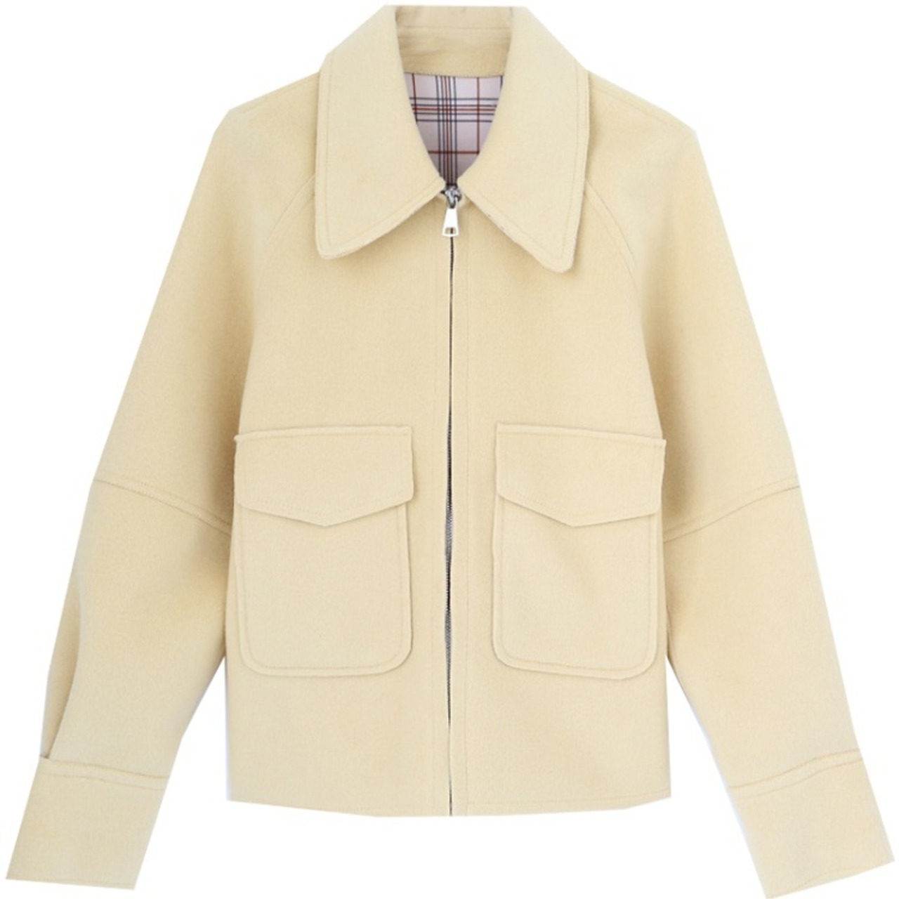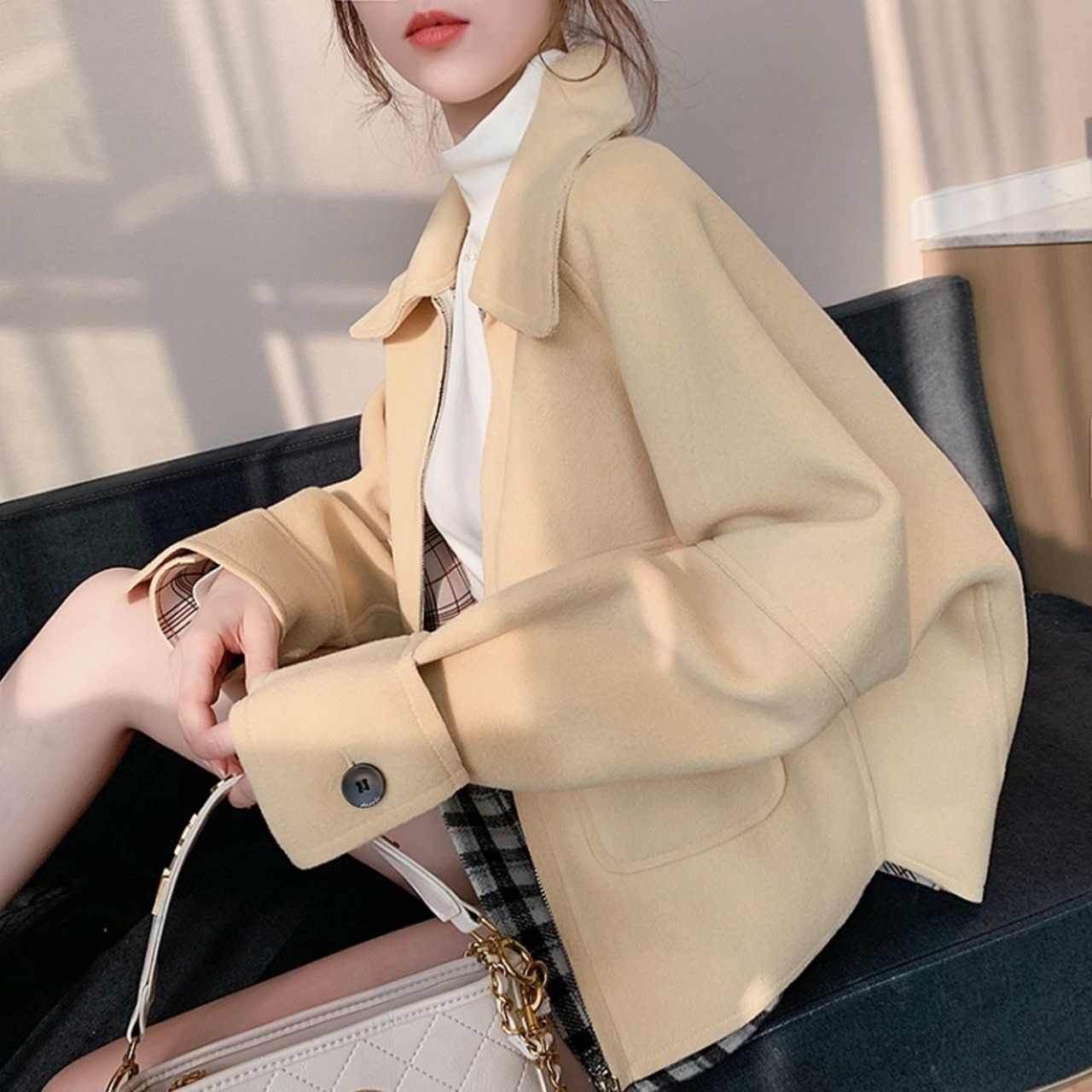 ゆったりシルエットながらきちんと感のあるステンカラーのショートジャケット。