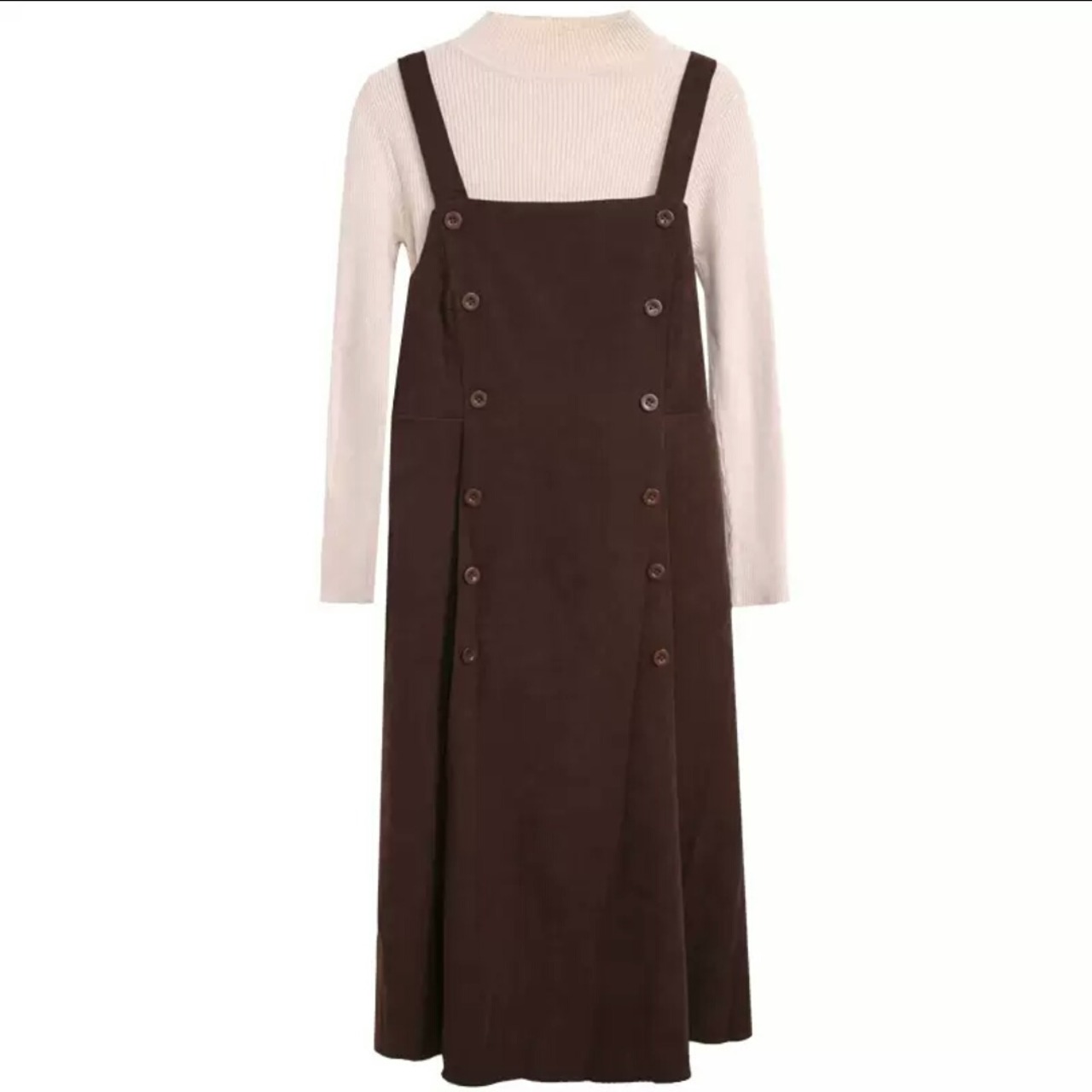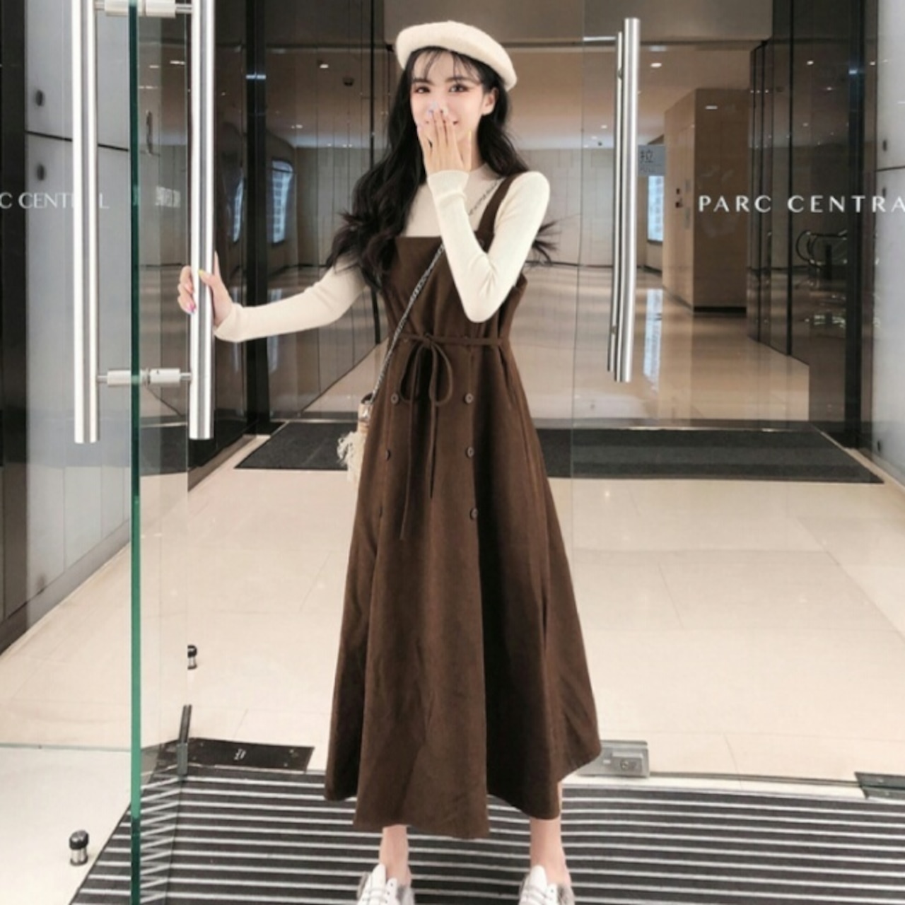 セットアップ ストラップ ワンピース ロング丈 ツーピース インナー 長袖 大人カジュアル 可愛い キレイめ お出かけ お買い物 デート 女子会 秋冬 春 通学 学生 通勤 韓国ファッション