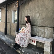 花柄が上品で可愛い印象のミモレ丈ワンピースです。