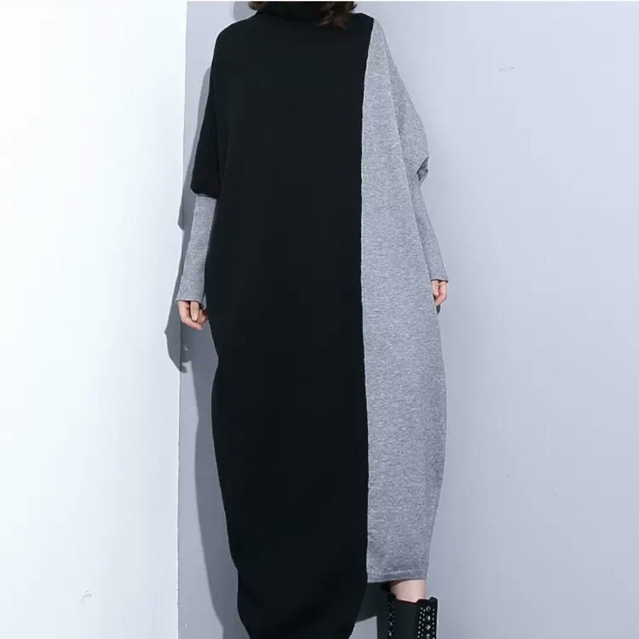 全2色 ゆったり オーバーサイズ ツートーン ワンピース ロング丈 大人 カジュアル 個性的 お出かけ お買い物 デート 女子会 秋冬 春 通学 学生 通勤 韓国ファッション