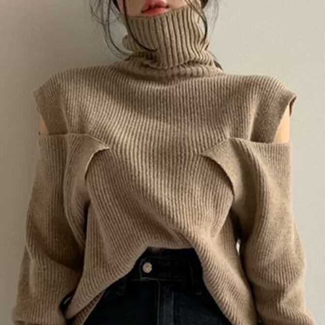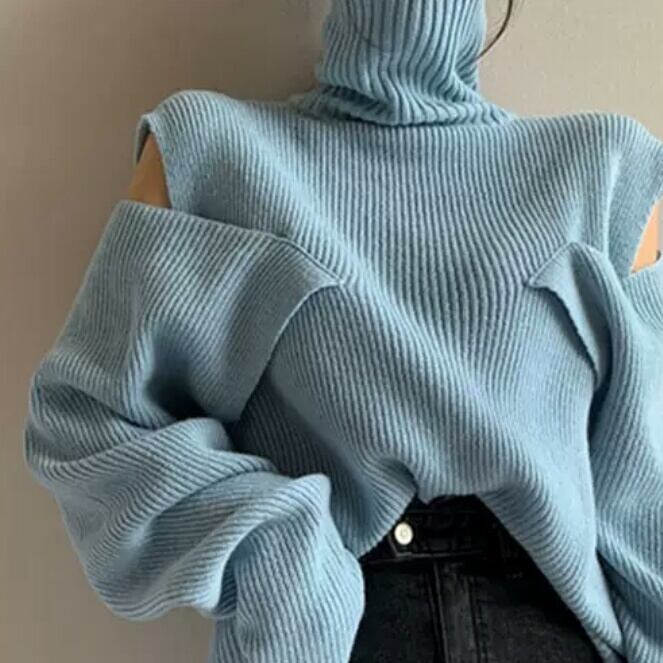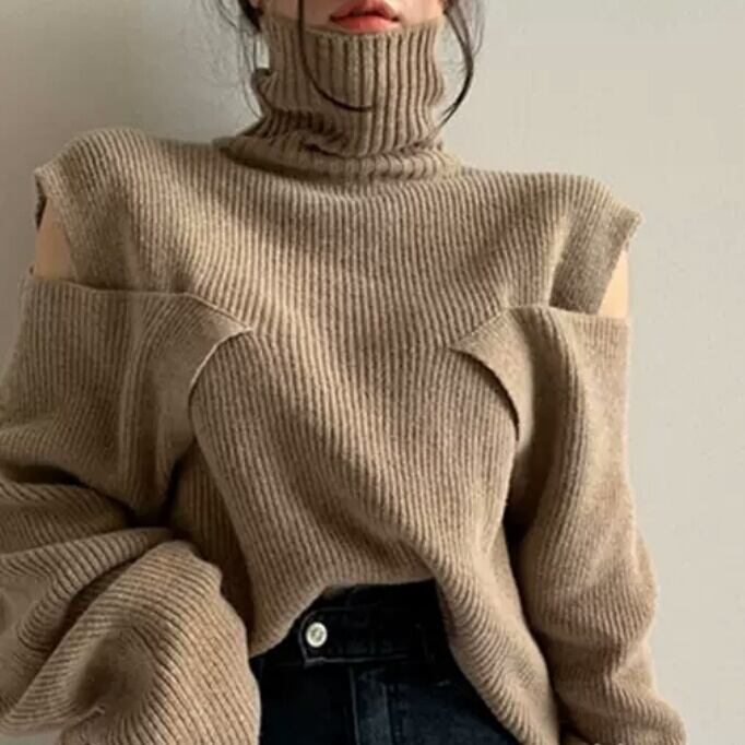 全2色 オープンショルダー セーター ニット トップス 無地 シンプル 可愛い カジュアル キレイめ 大人 お出かけ お買い物 デート 女子会 秋冬 春 通学 学生 通勤 韓国ファッション