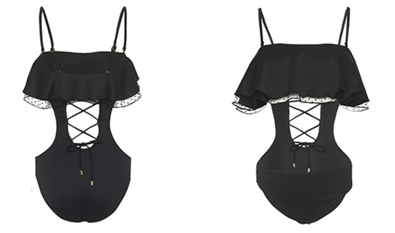 バックのレースアップがセクシーで大人可愛い水着です。