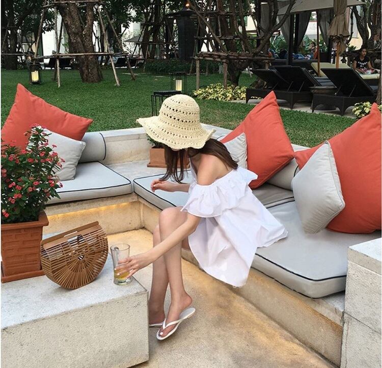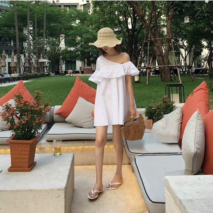 ミニワンピース オフショルダー ワンショルダー フレアスカート フリル 半袖 無地 ゆったり かわいい カジュアル リゾート ビーチ 春夏